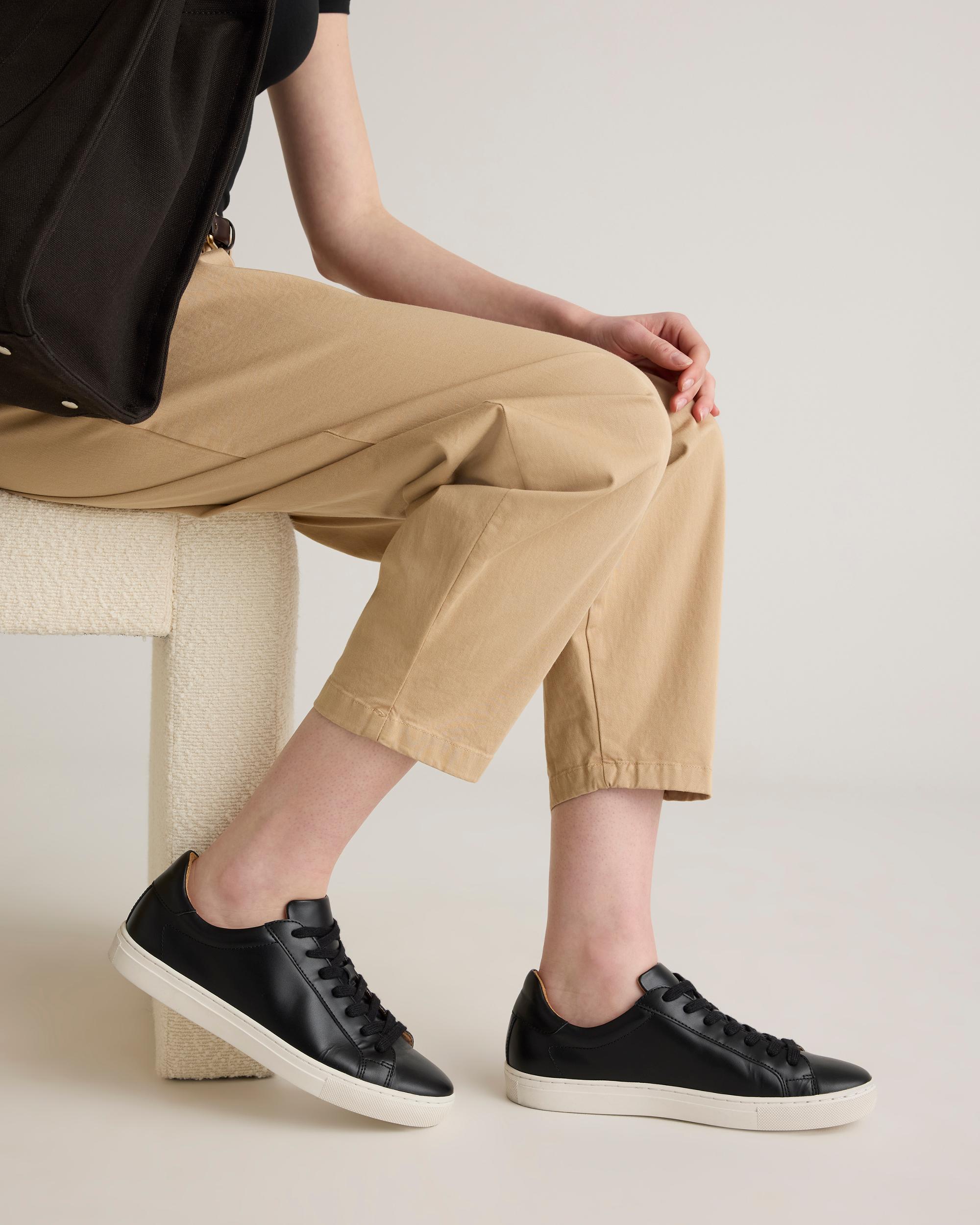 Iconic everyday style incoming… Crafted with full-grain calfskin leather and a soft cotton lining, our 100% Leather Everyday Sneaker is the best low-top in town. Featuring a super plush and comfortable insole for all-day comfort and a versatile low-top silhouette that can be dressed up or down. It’s the classic sneaker you’ll want to wear anywhere and everywhere. | Quince | Women's Everyday Sneaker in Black, Size 9.5, Leather