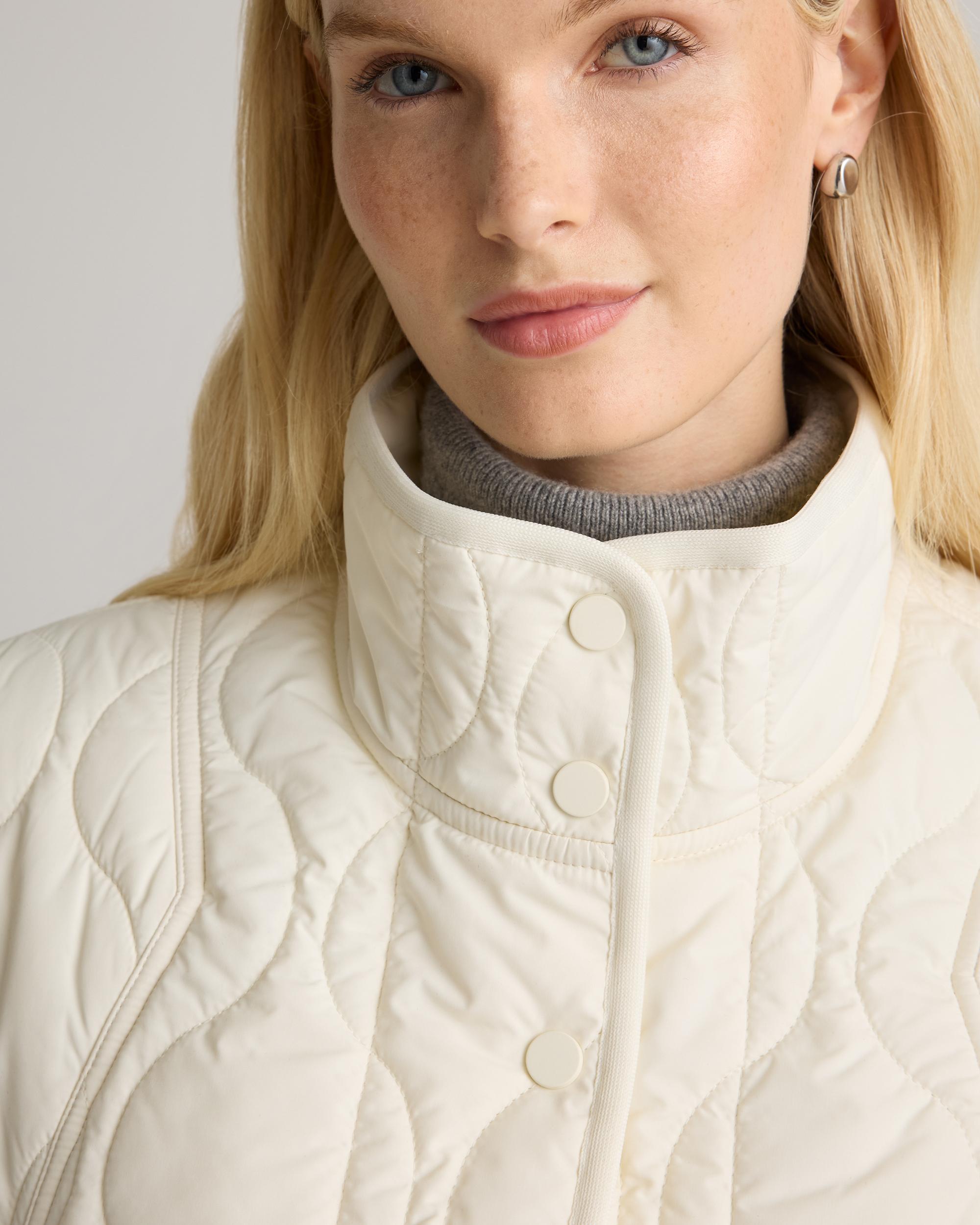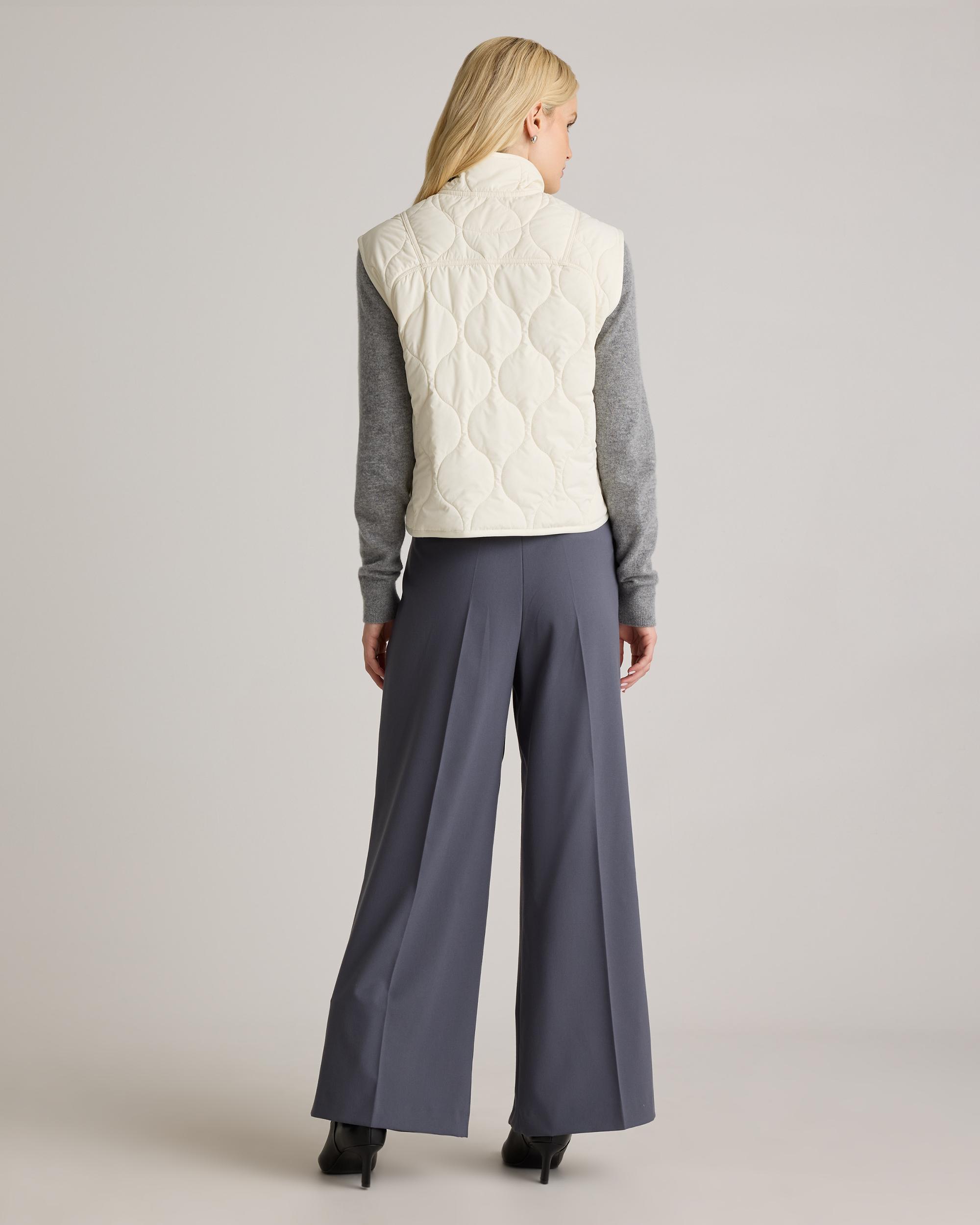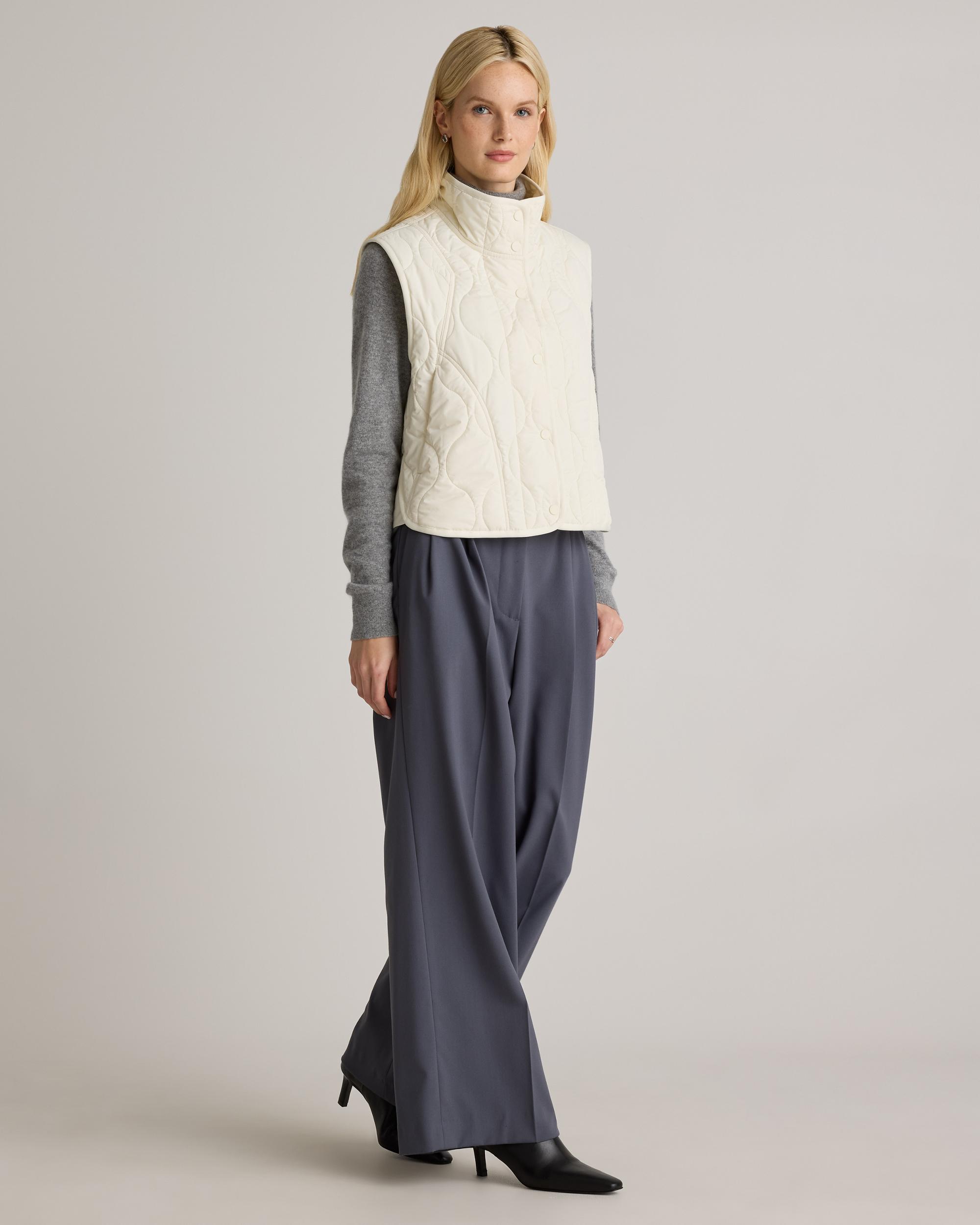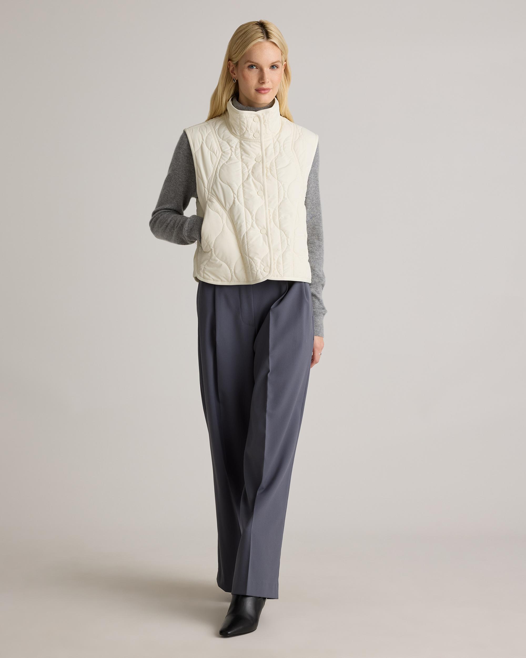 Stay warm, look cool with our Featherless Quilted Puffer Vest. This windproof vest boasts a sleek, quilted design while the Comfortemp® recycled insulation mimics the warmth of down, without the bulk. Whether you're layering up for outdoor adventures or adding a cozy touch to your everyday outfit, our puffer vest has got you covered. The best part? This vest is made of 100% recycled materials that both keep you warm and also keep plastic bottles out of oceans and landfills. | Quince | Women's Featherless Quilted Puffer Vest in Silken White, Size XS, Recycled Polyester