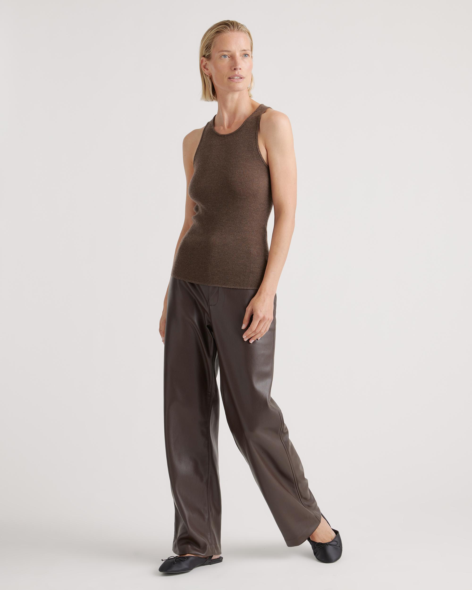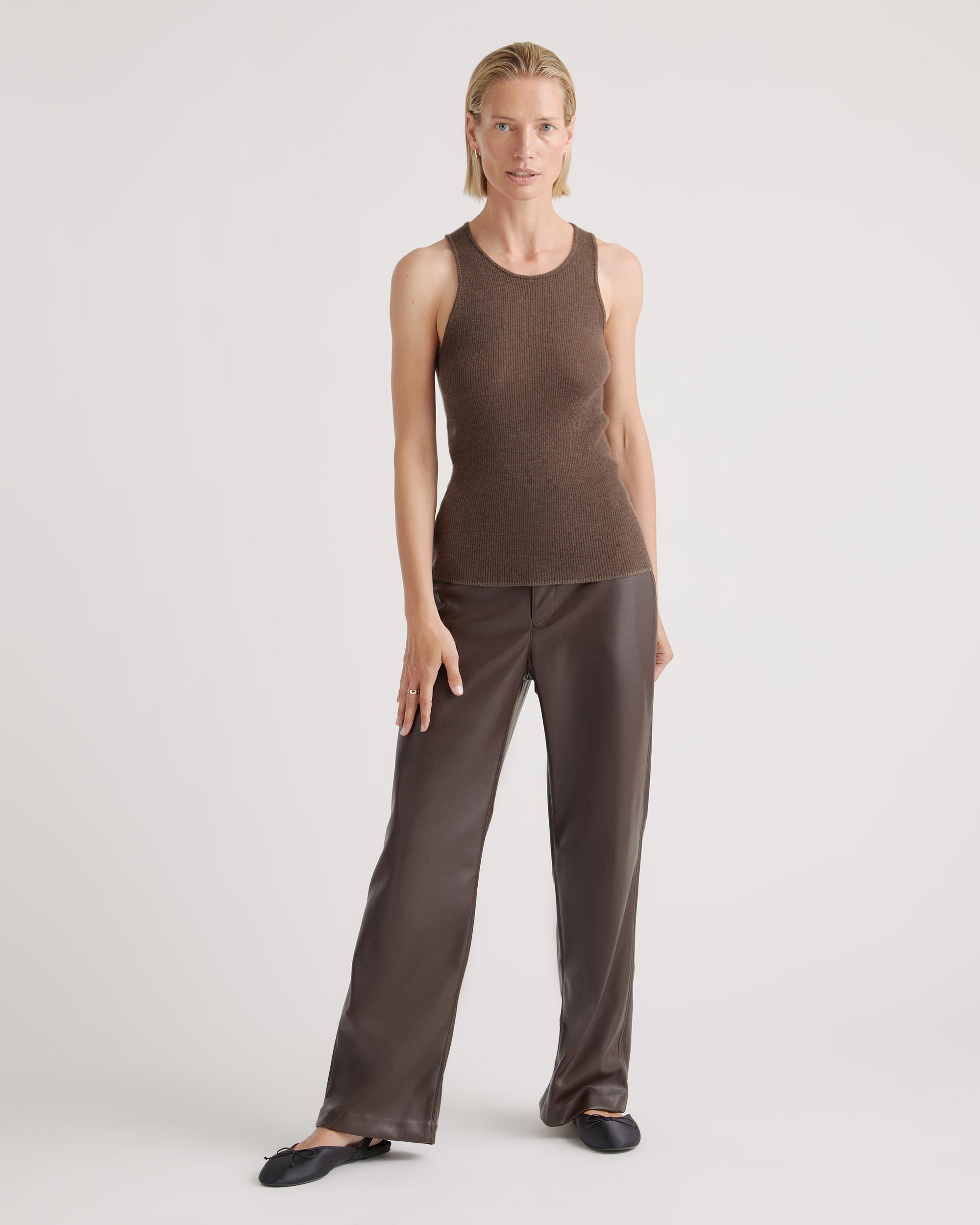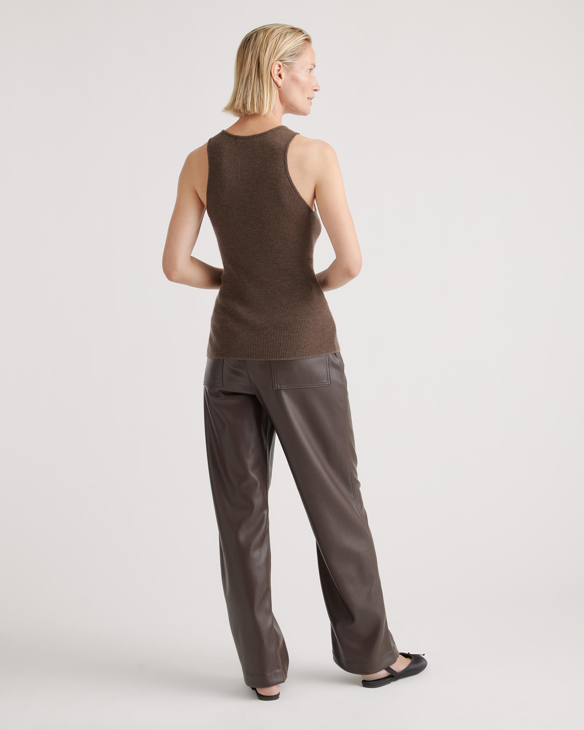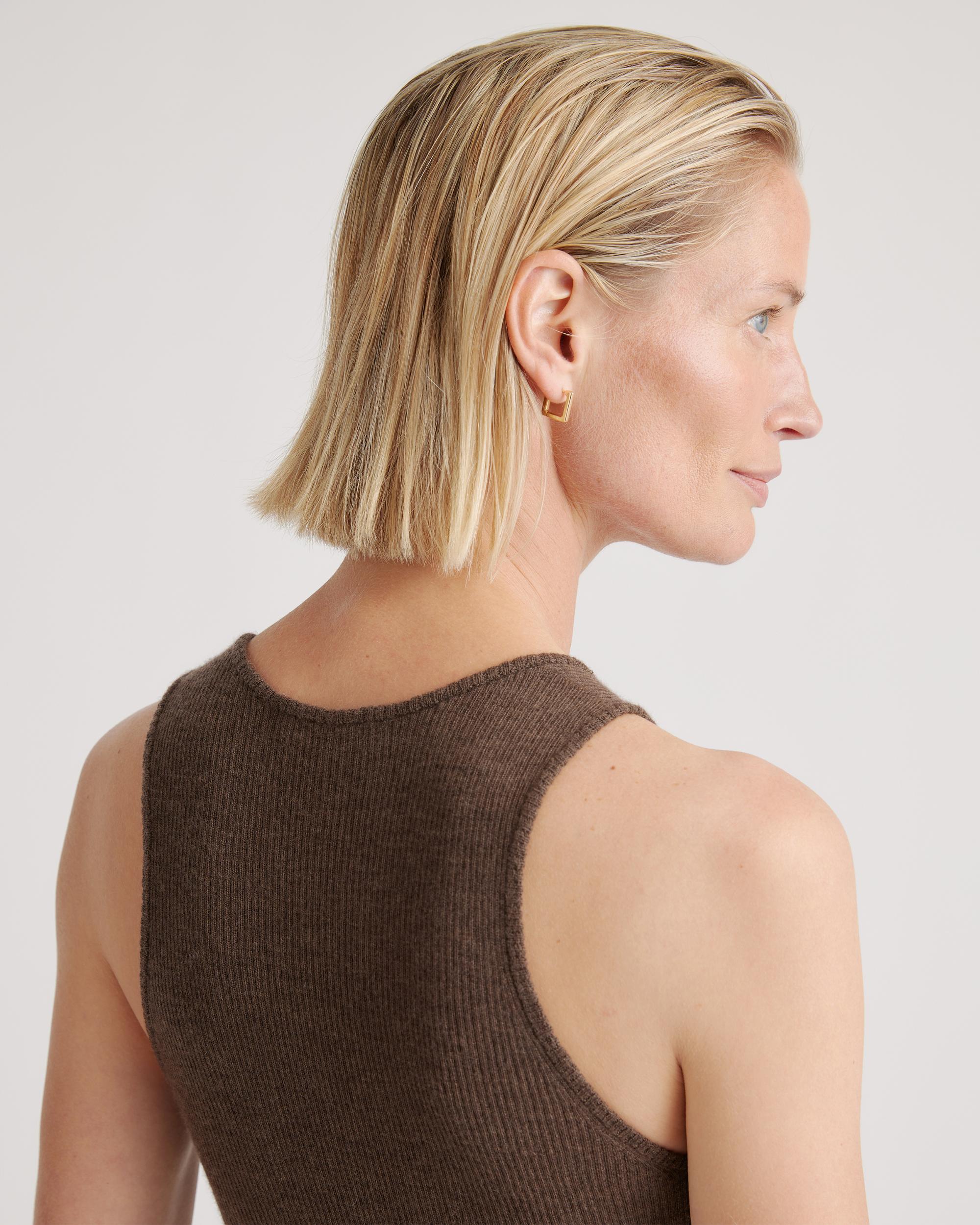 Try on a new level of luxury with our Featherweight Cashmere Ribbed Tank. Crafted to feel light as air without sacrificing warmth, our new fine-gauge featherweight cashmere styles are knit using a longer fiber length, making them more resistant to pilling and luxuriously soft. The delicate ribbed texture and seamless construction elevate this classic silhouette making it a unique wardrobe must-have. | Quince | Women's Featherweight Cashmere Ribbed Tank Top in Brown, Size XS