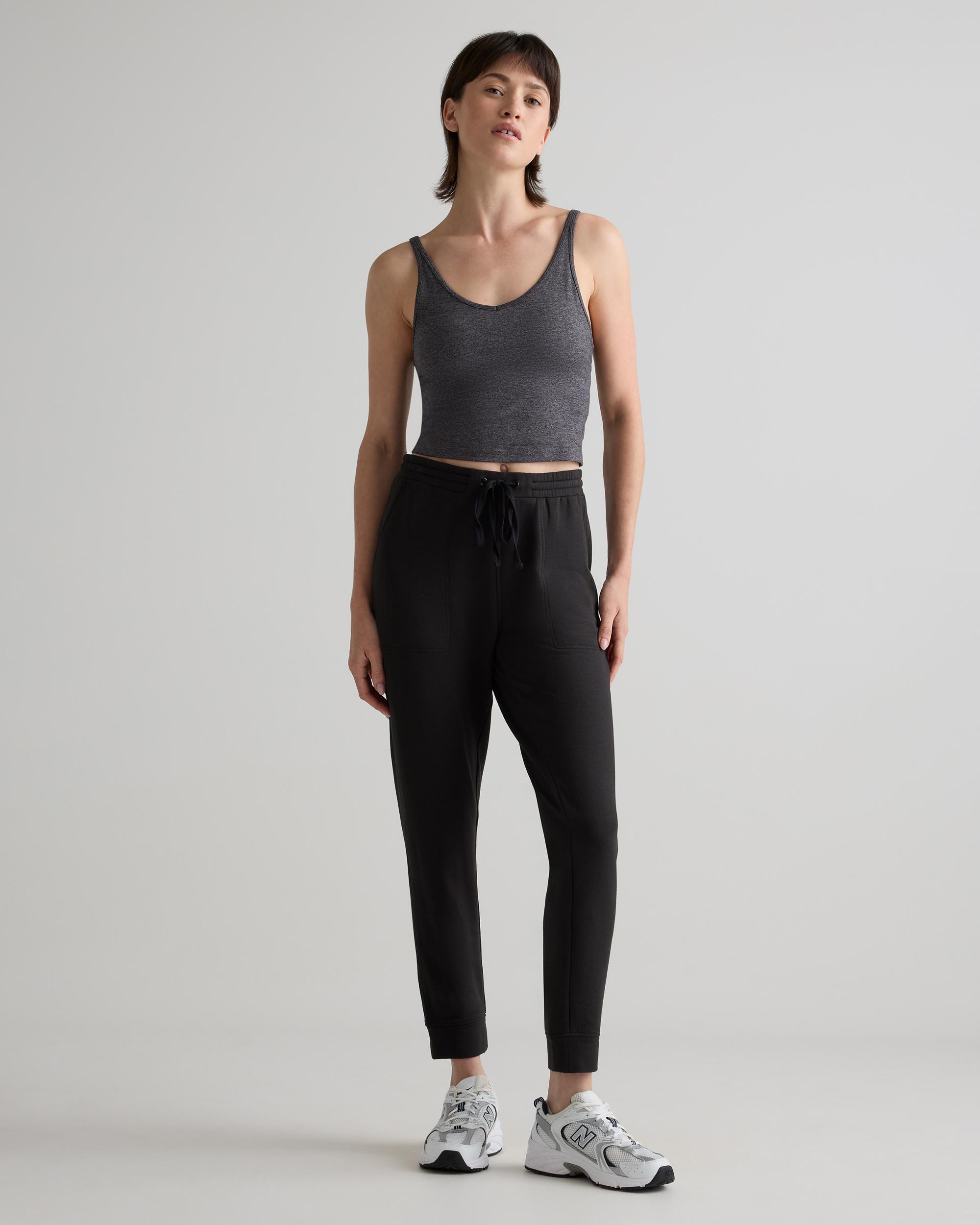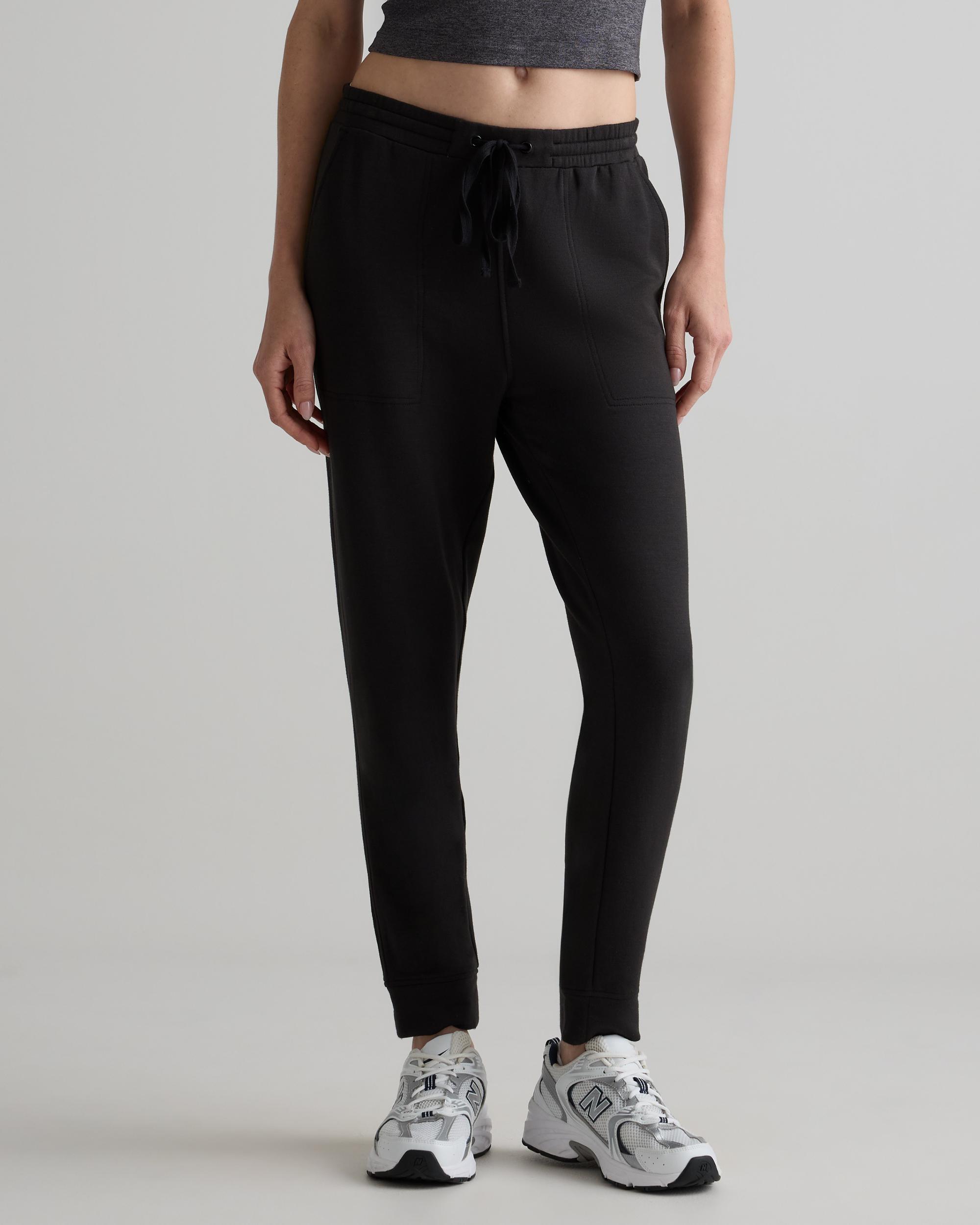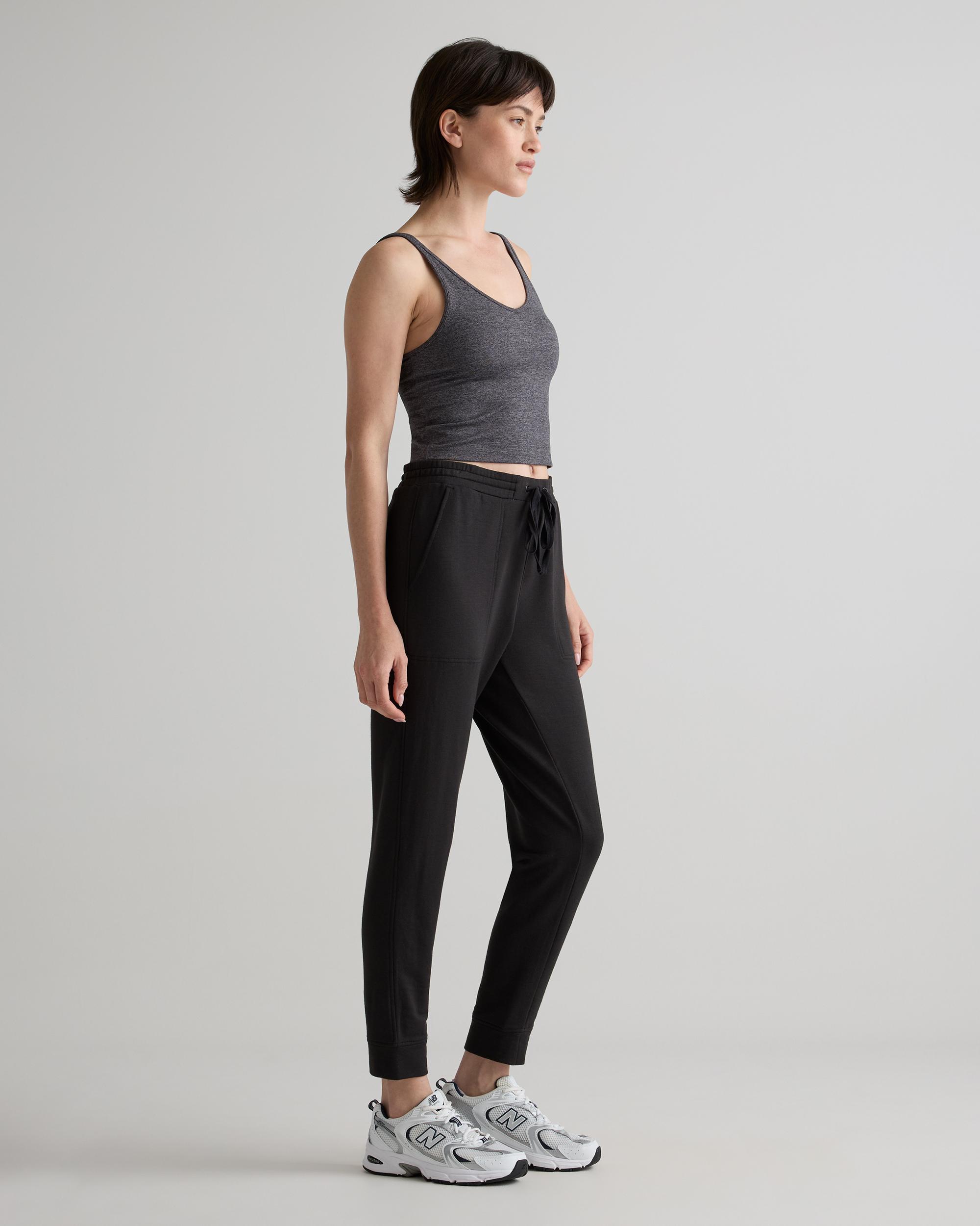 Say hello to the softest fleece sweatpants ever. These sweats are extra comfy and perfect for working from home, cozying up, or stepping out with a casual vibe. Front pockets, drawstring waistband, and stretch fabric for just the right fit and feel. Plus, we included our GRS-certified poly yarn in this blend, which diverts plastics from ocean and landfill. So you can look good and feel good in this piece. | Quince | Women's Fleece Sweatpants in Black, Supersoft Fleece Lounge Pants, Size Small, Lenzing Modal