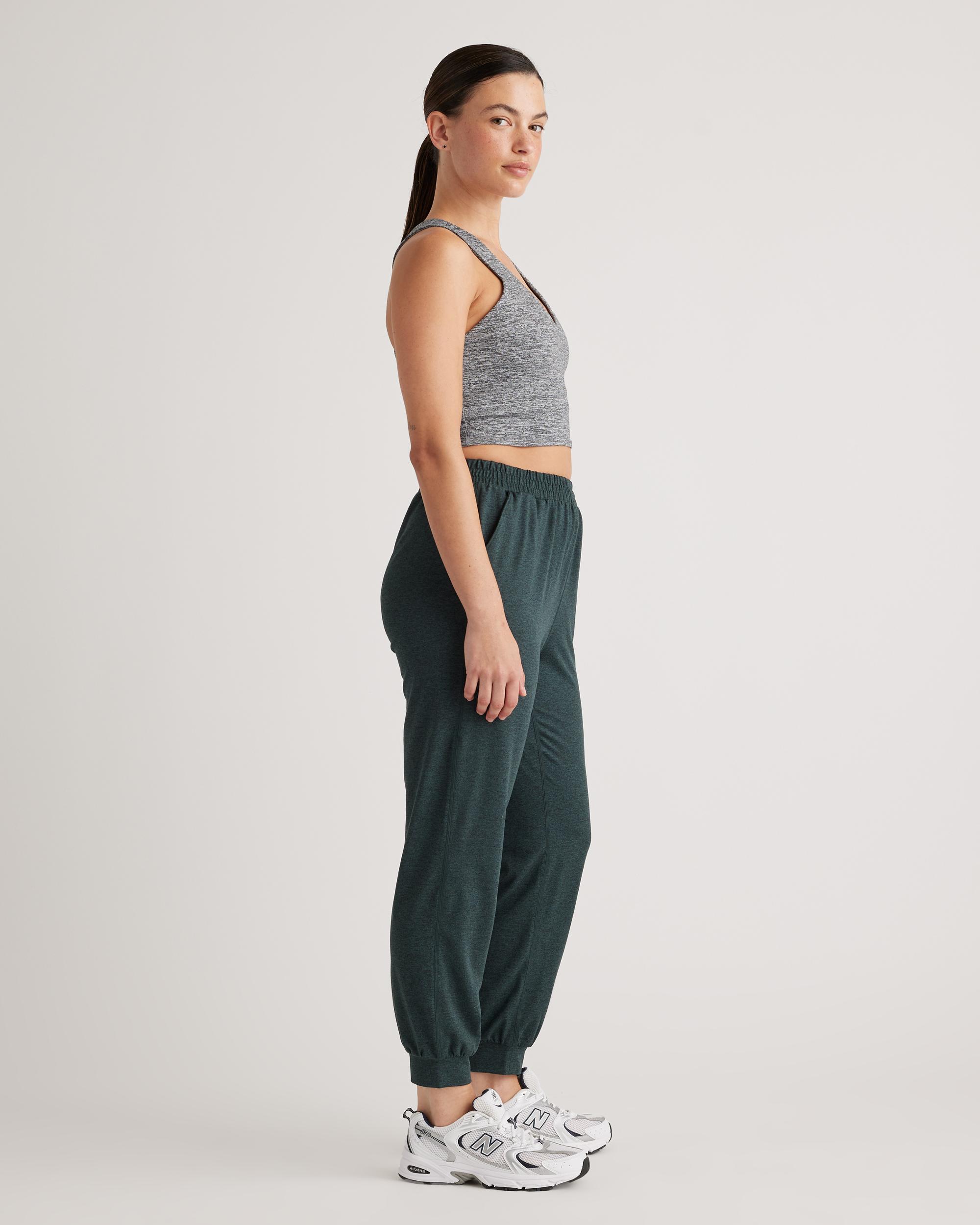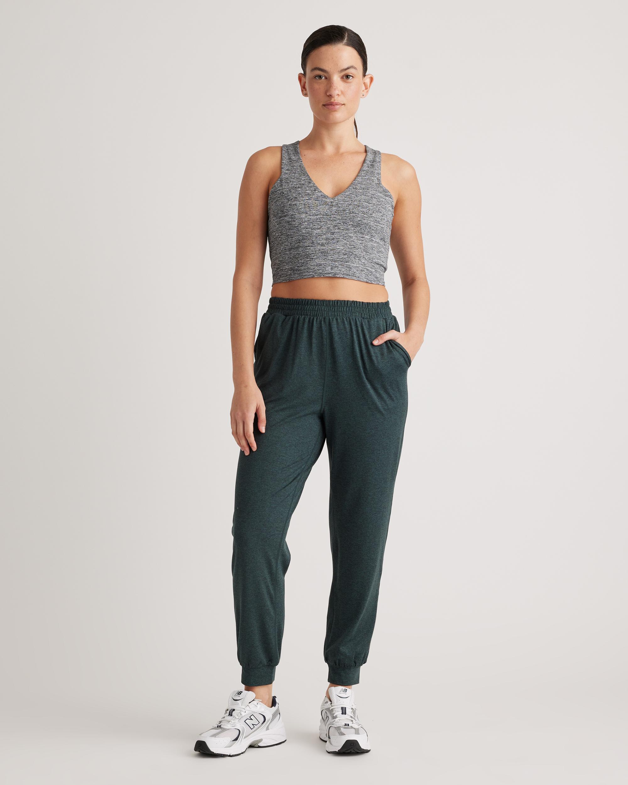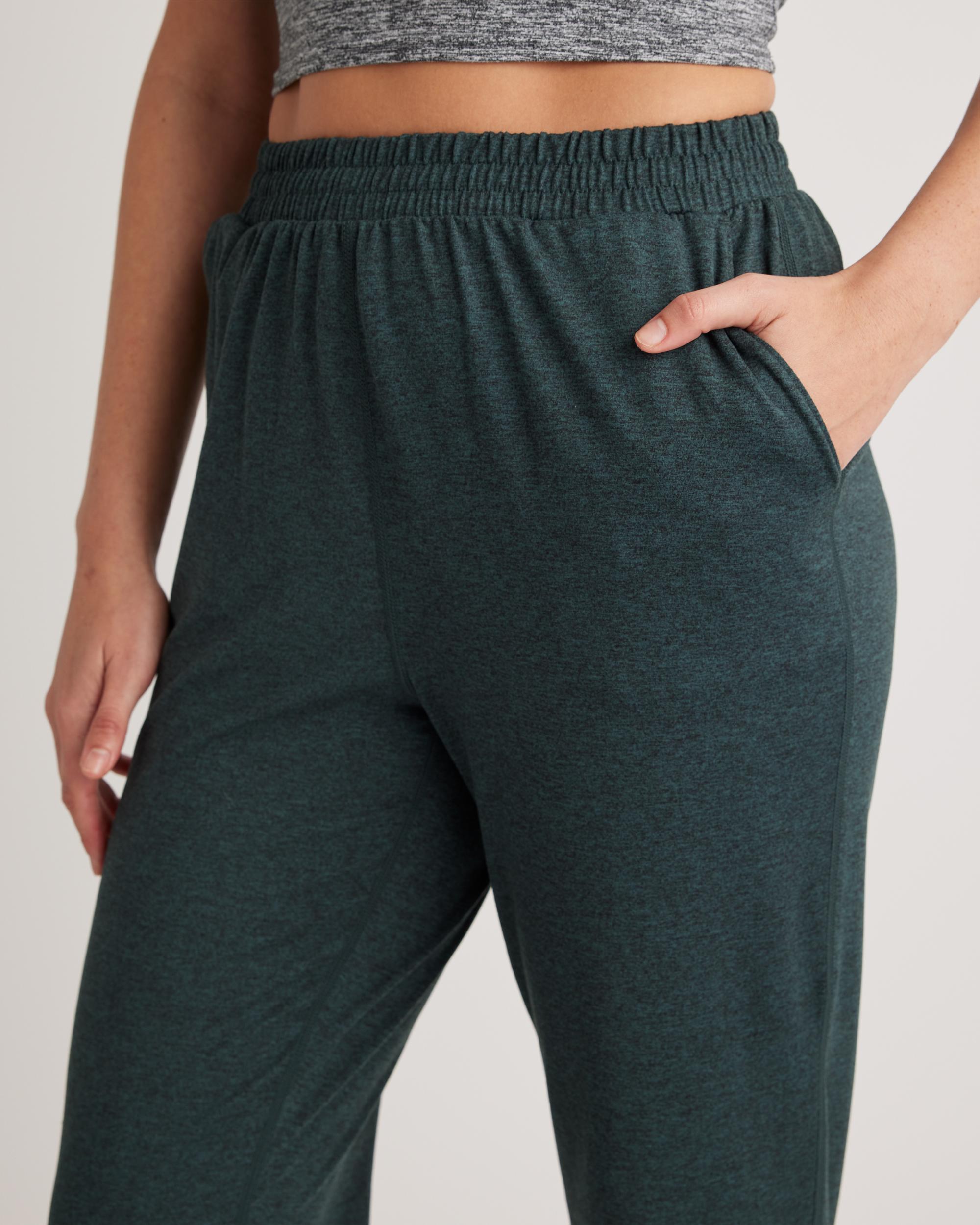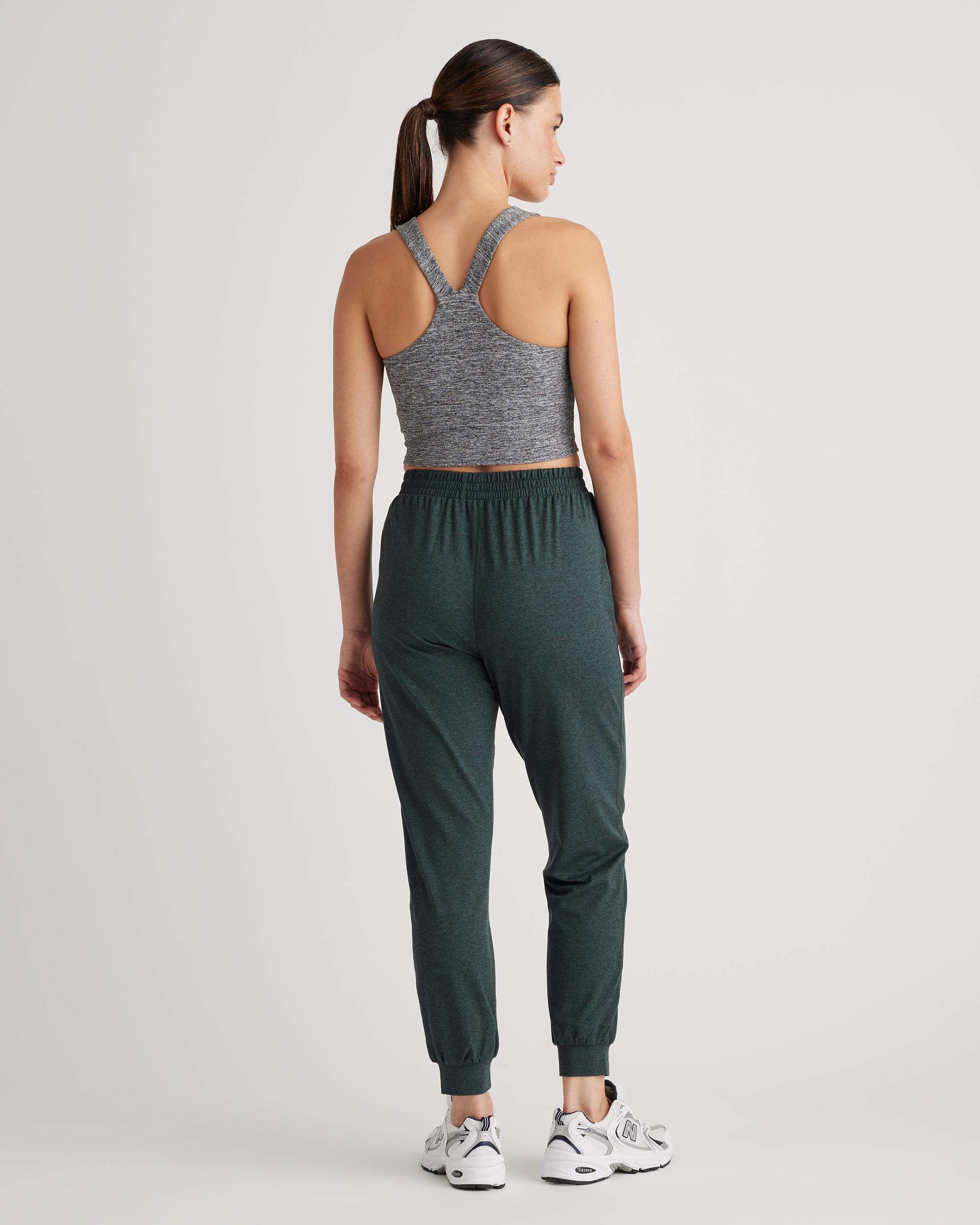 Meet the Flowknit High-Rise Boyfriend Jogger—a more relaxed update to our best seller. With a higher rise and longer inseam, these joggers will keep you comfortable and stylish whether you're out on a walk, running errands, or lounging at home. And just because they're comfy doesn't mean they skimp on performance: They're made in our signature Flowknit fabric for quick-dry, moisture-wicking, and 4-way stretch benefits. | Quince | Women's Flowknit High-Rise Boyfriend Jogger in Heather Green, Size XL, Recycled Polyester / Spandex