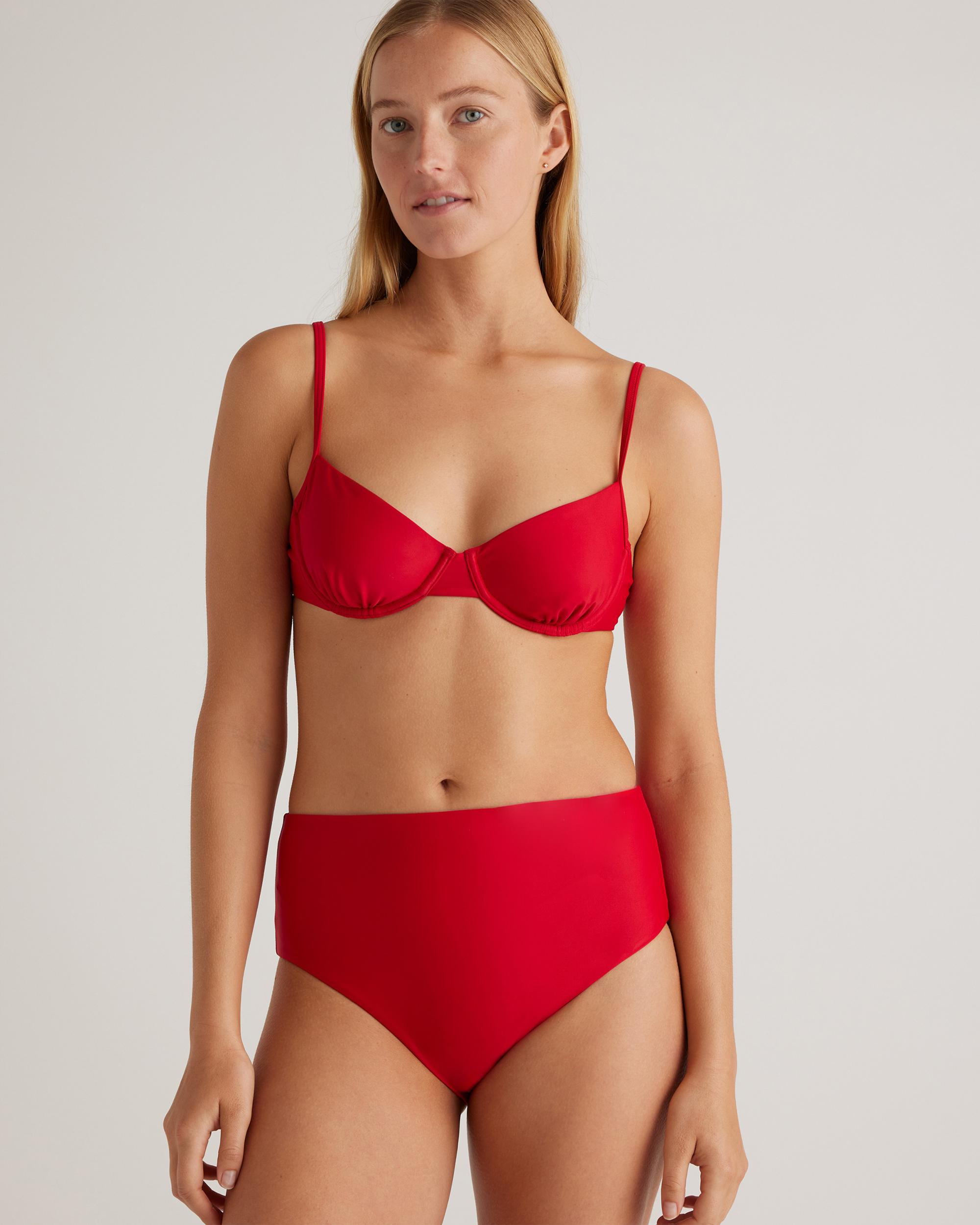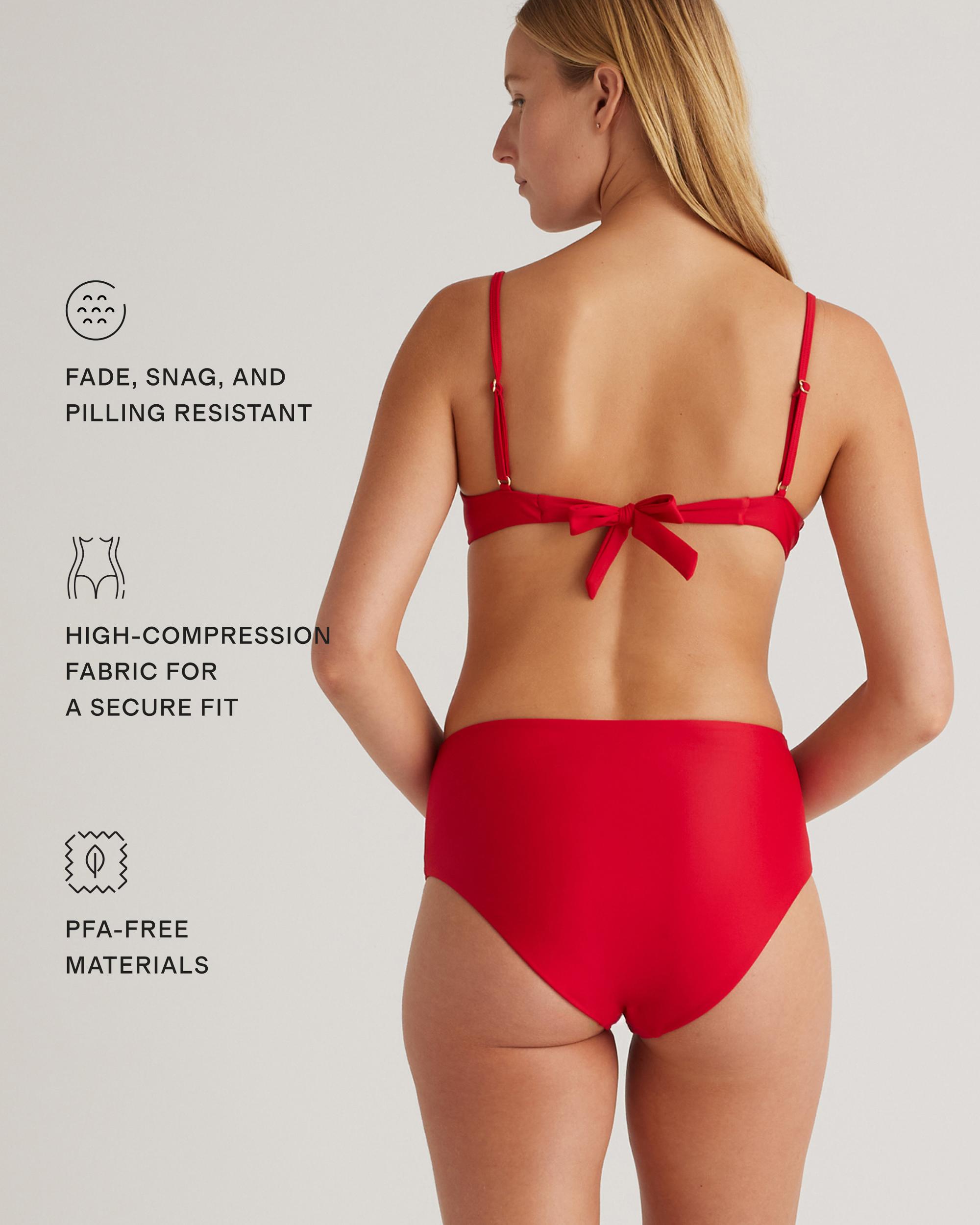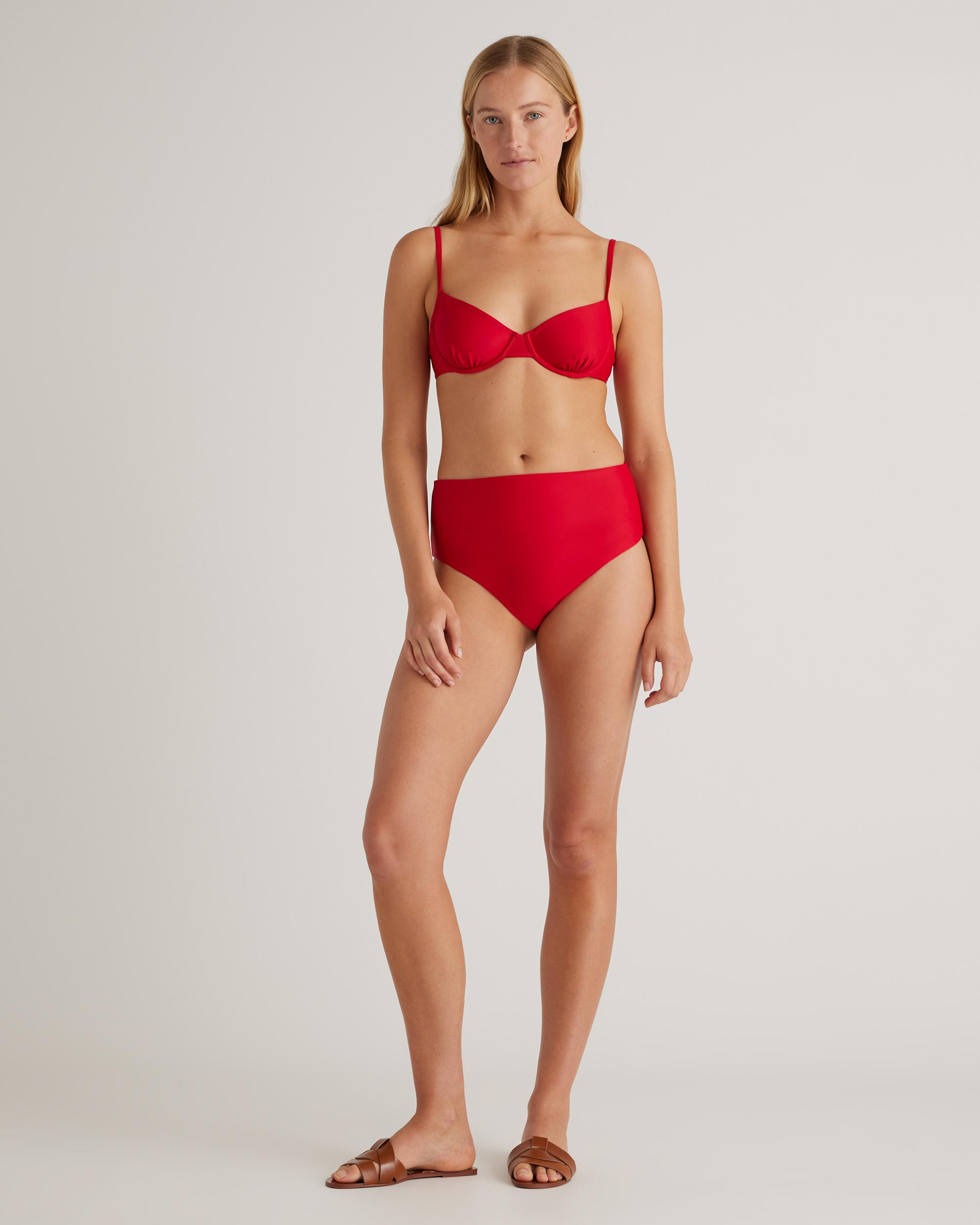 This bikini bottom is a triple threat: It was made to last, made with Italian-crafted fabric, and thoughtfully made with recycled materials. With a high-rise design, medium cut leg, and full lining, you'll get the moderate backside coverage and timeless style you're looking for. Resists fading, pilling, and snagging, so you'll be wearing it for years to come. | Quince | Women's Italian High-Rise Bikini Bottom in Cherry, Size XL, 78% Recycled Polyamide, 22% Spandex