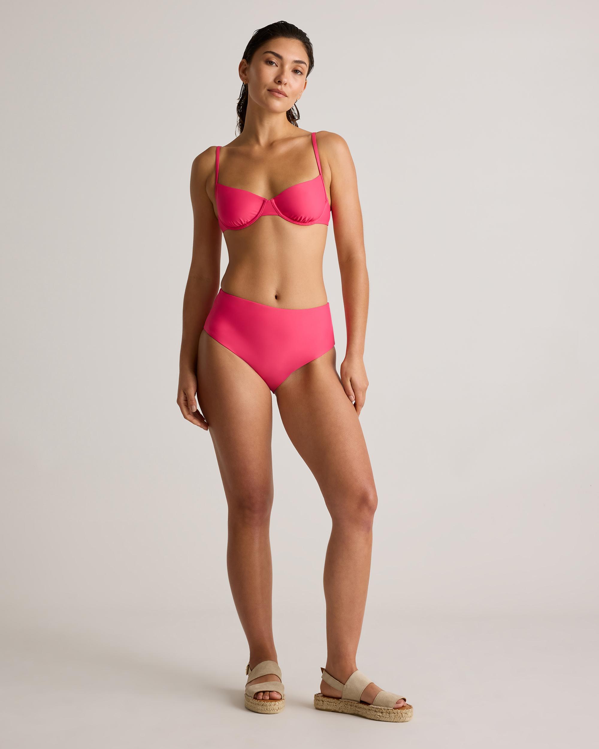 This bikini bottom is a triple threat: It was made to last, made with Italian-crafted fabric, and thoughtfully made with recycled materials. With a high-rise design, medium cut leg, and full lining, you'll get the moderate backside coverage and timeless style you're looking for. Resists fading, pilling, and snagging, so you'll be wearing it for years to come. | Quince | Women's Italian High-Rise Bikini Bottom in Hibiscus, Size Medium, 78% Recycled Polyamide, 22% Spandex