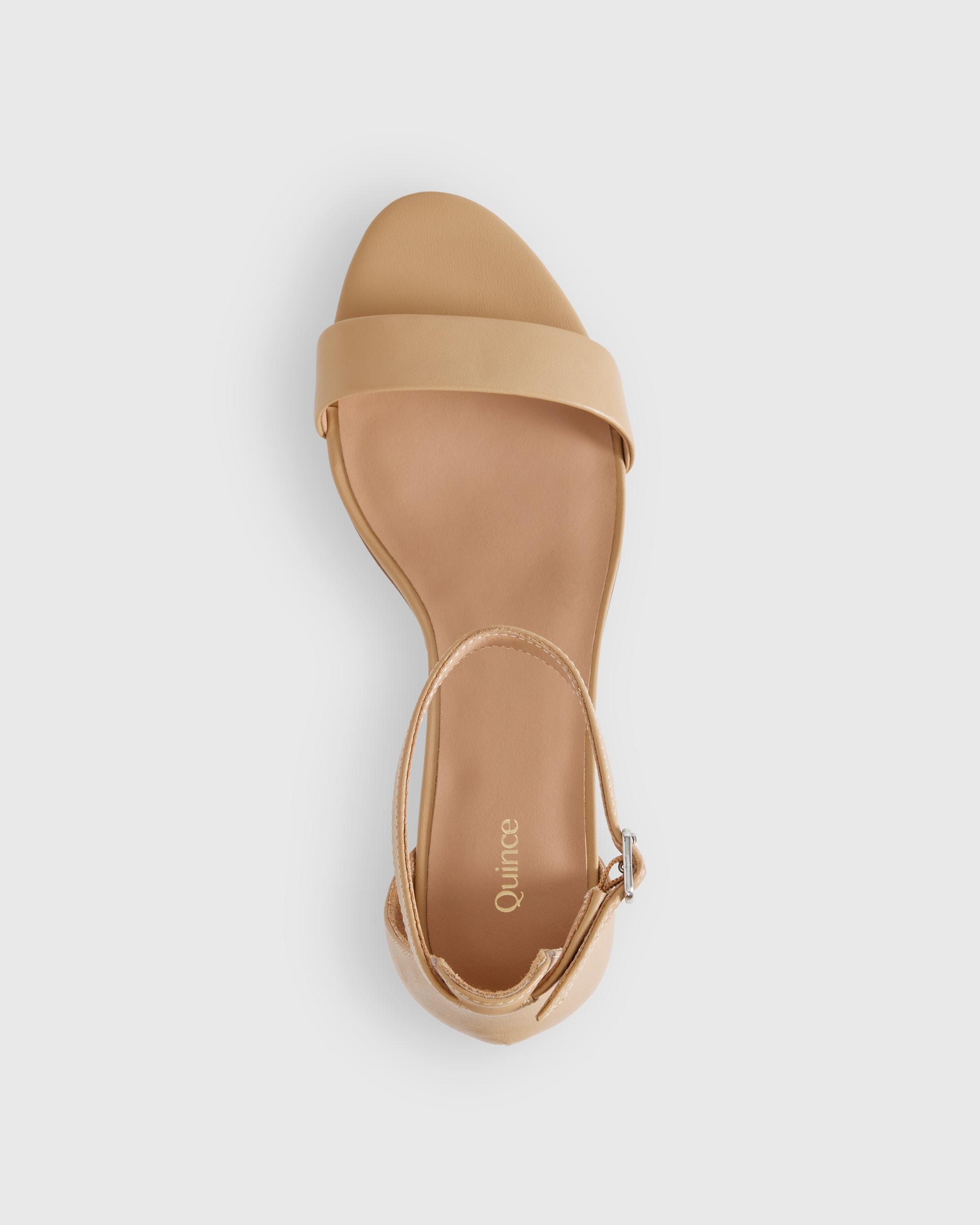 Sleek and undeniably chic, our Italian Leather Block Heel is a wardrobe must-have. The cushy insole provides extra padding and arch support for all-day comfort, with a just-right height and elegant ankle strap. They’re just the thing to elevate your next date night look or wedding ensemble. | Quince | Women's Italian Leather 65mm Block Heel in Cashew, Size 7