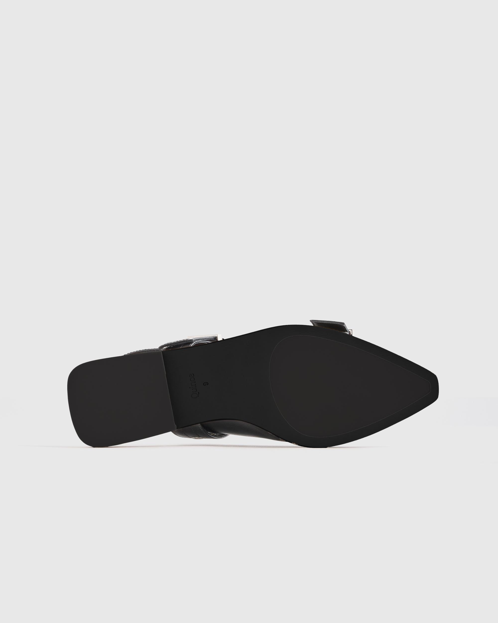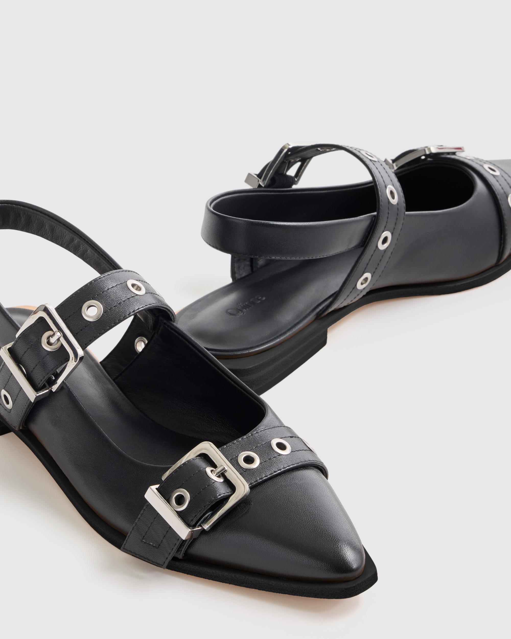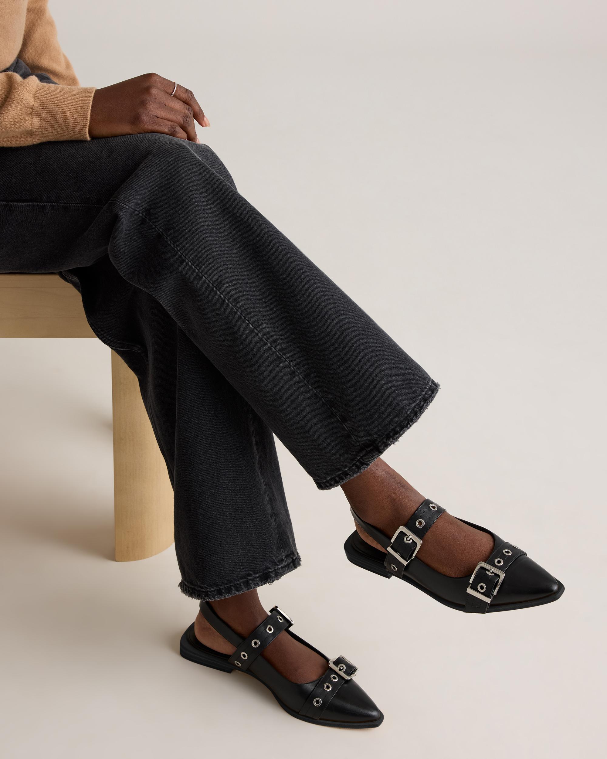 Ready to make a statement? Look no further than our Italian Leather Bold Buckle Slingback Flat. Crafted from premium Italian leather, these flats feature a full leather lining, plush cushioned insoles, and buffed leather outsoles, making these beauties as luxurious as they are bold. The perfect blend of elegance and attitude, the buckle detail that adds a chic touch to any outfit proving you never have to sacrifice comfort for style. | Quince | Women's Italian Leather Bold Buckle Slingback Flat in Black, Size 9