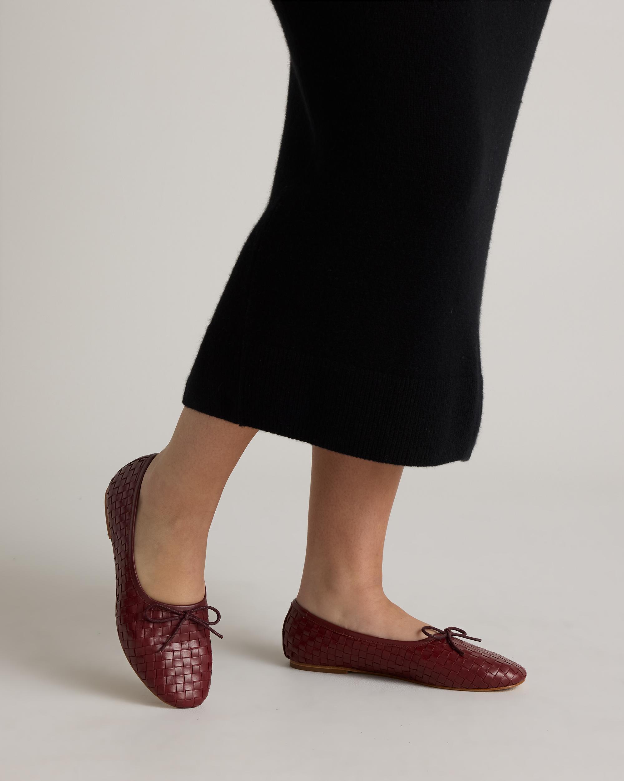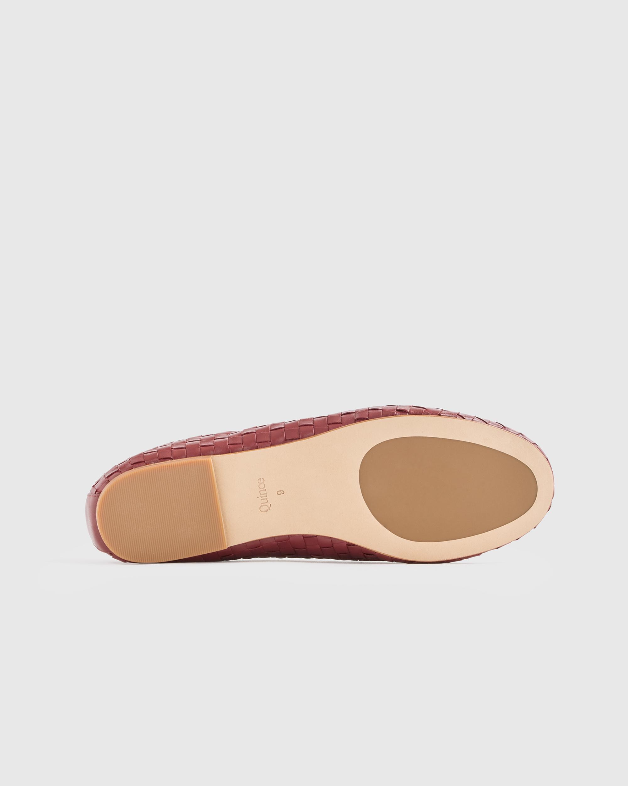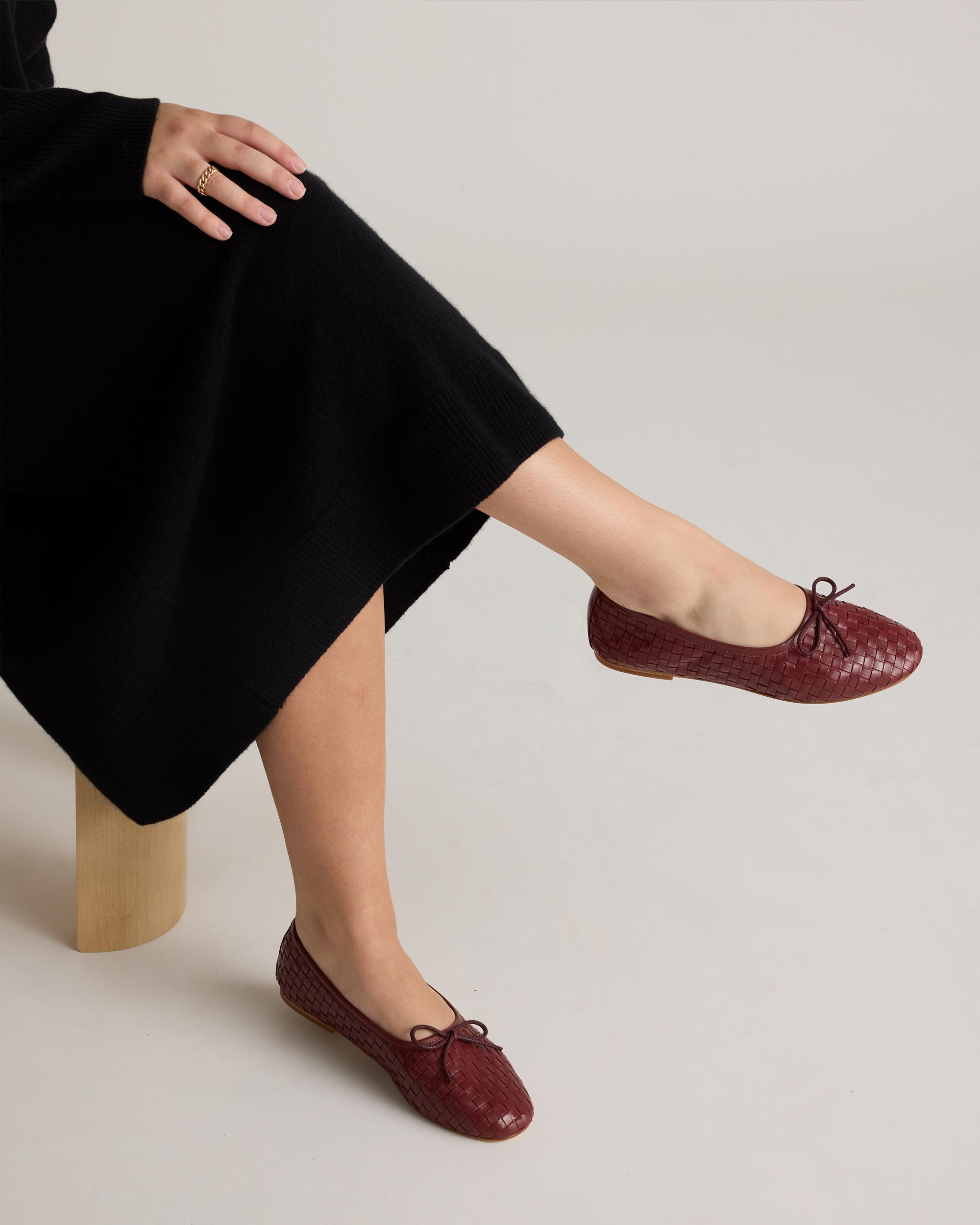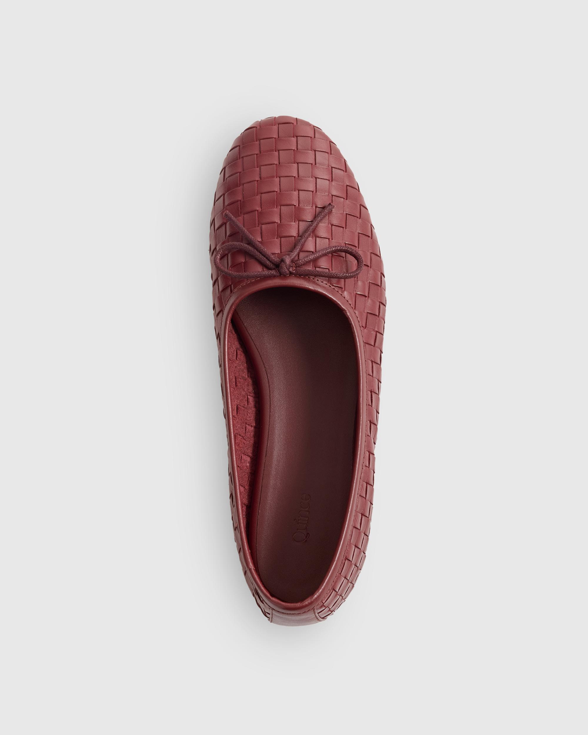 Your favorite ballet flats, but with a twist. Crafted from 100% Italian leather, these have a unique handwoven detailing and gorgeous texture. The cushioned insoles and premium leather outsoles make them the ultimate shoes for work, play, and beyond. | Quince | Women's Italian Leather Handwoven Ballet Flat in Merlot, Size 5