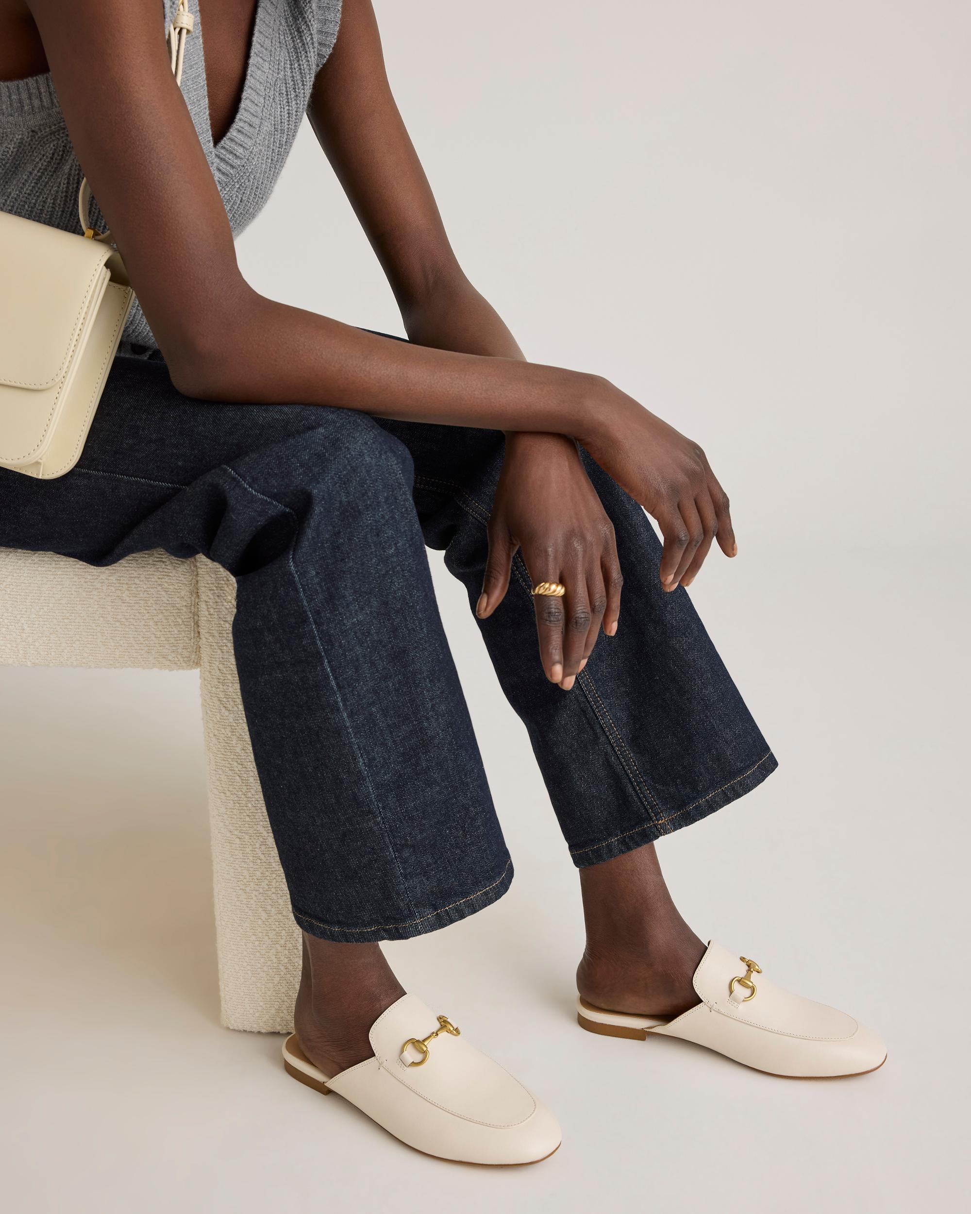 Chic, classic, and comfortable? It doesn’t get much better than our Italian Leather Horsebit Loafer Mule. This easy to wear, easy to pair mule is cushioned with a thick insole for all-day comfort and made with premium Italian leather. Our favorite detail? The gold horsebit embellishment that adds just the right amount of luxe to your look. | Quince | Women's Italian Leather Horsebit Loafer Mule in Bone, Size 9.5