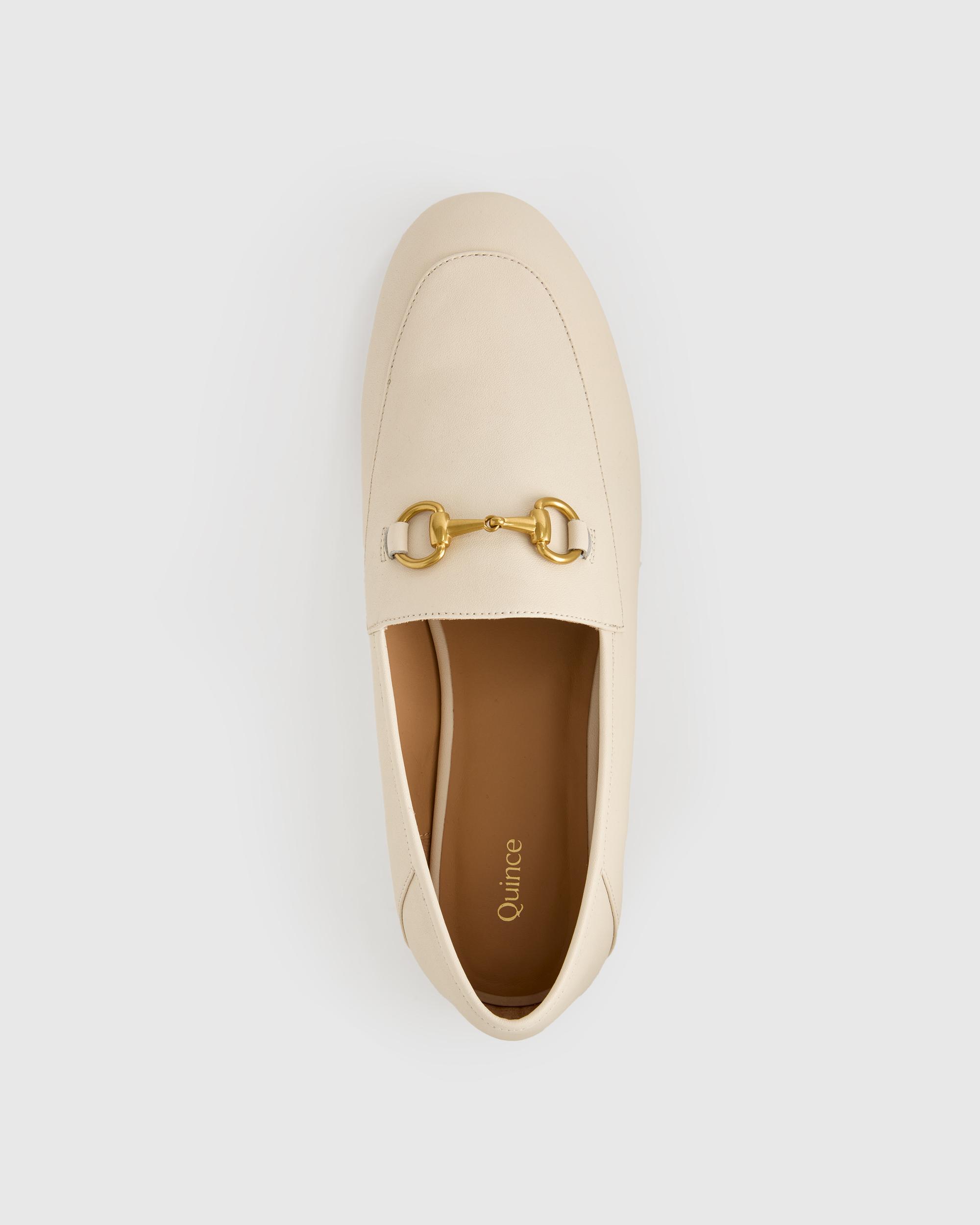 Indulge in refined elegance with our Italian Leather Horsebit Loafers. Designed with plush ortholite insoles and crafted from luxuriously soft Italian leather, these loafers embody both comfort and sophistication. The distinctive horsebit hardware adds a touch of classic charm, ensuring a timeless appeal in every step. | Quince | Women's Italian Leather Horsebit Loafer in Bone, Size 10