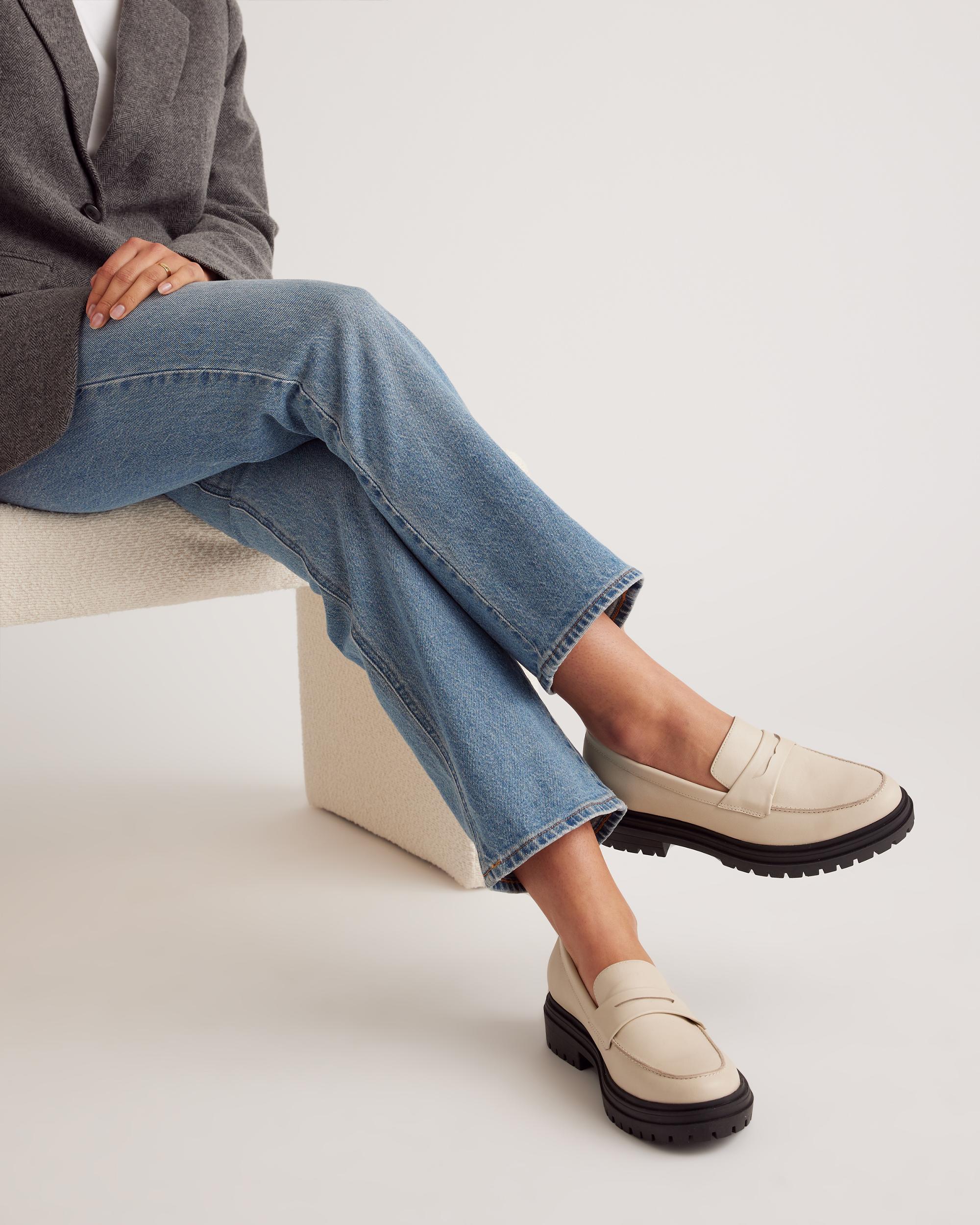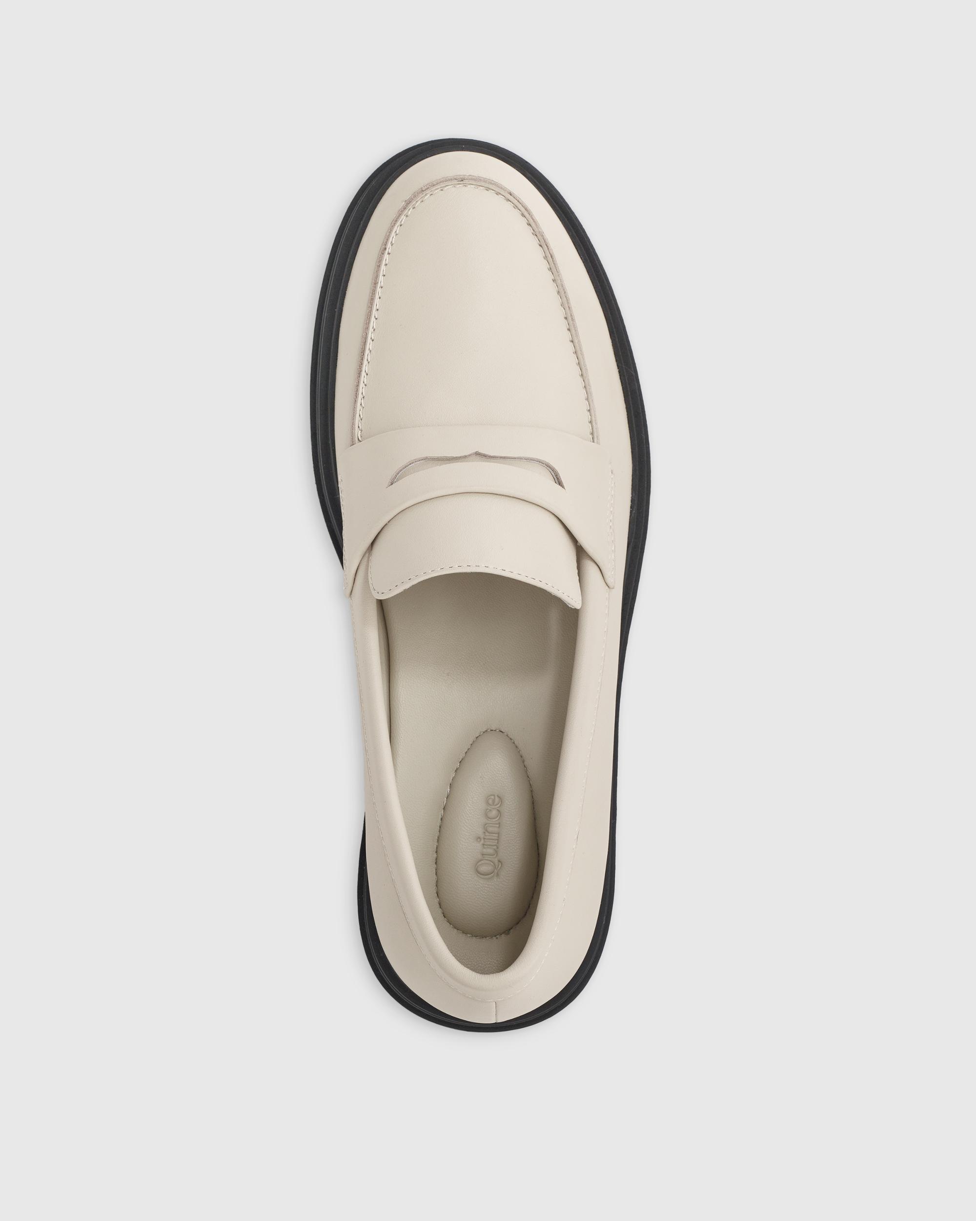 Make a bold statement in our Italian Leather Lug Sole Loafer – a perfect fusion of fashion and functionality. The distinctive lug sole not only adds a chic touch to your look but also ensures excellent traction for any terrain. Crafted with attention to detail, these loafers feature a classic silhouette with a modern twist, making them a versatile choice for both casual and elevated styles. | Quince | Women's Italian Leather Lug Sole Loafer in Bone, Size 6.5