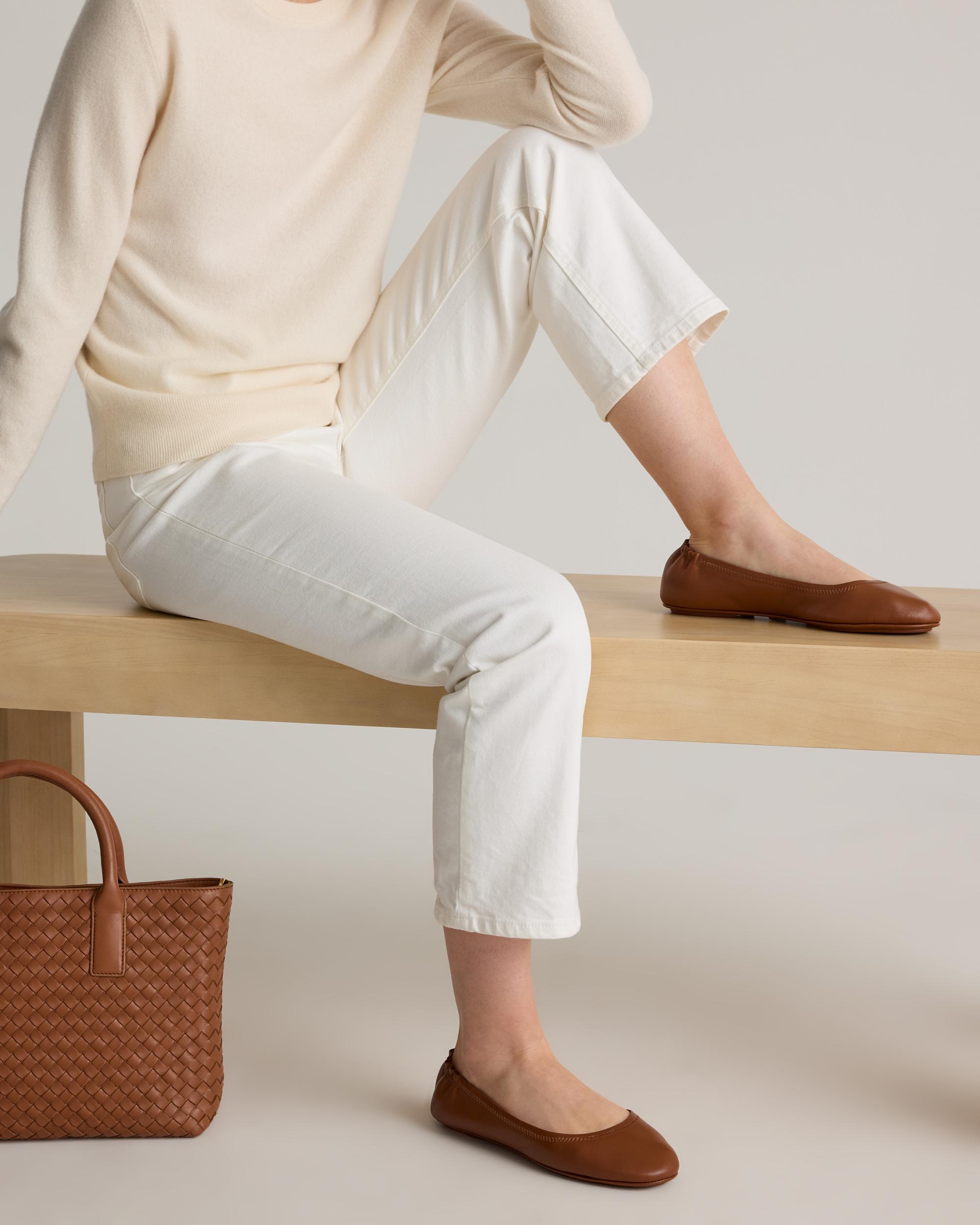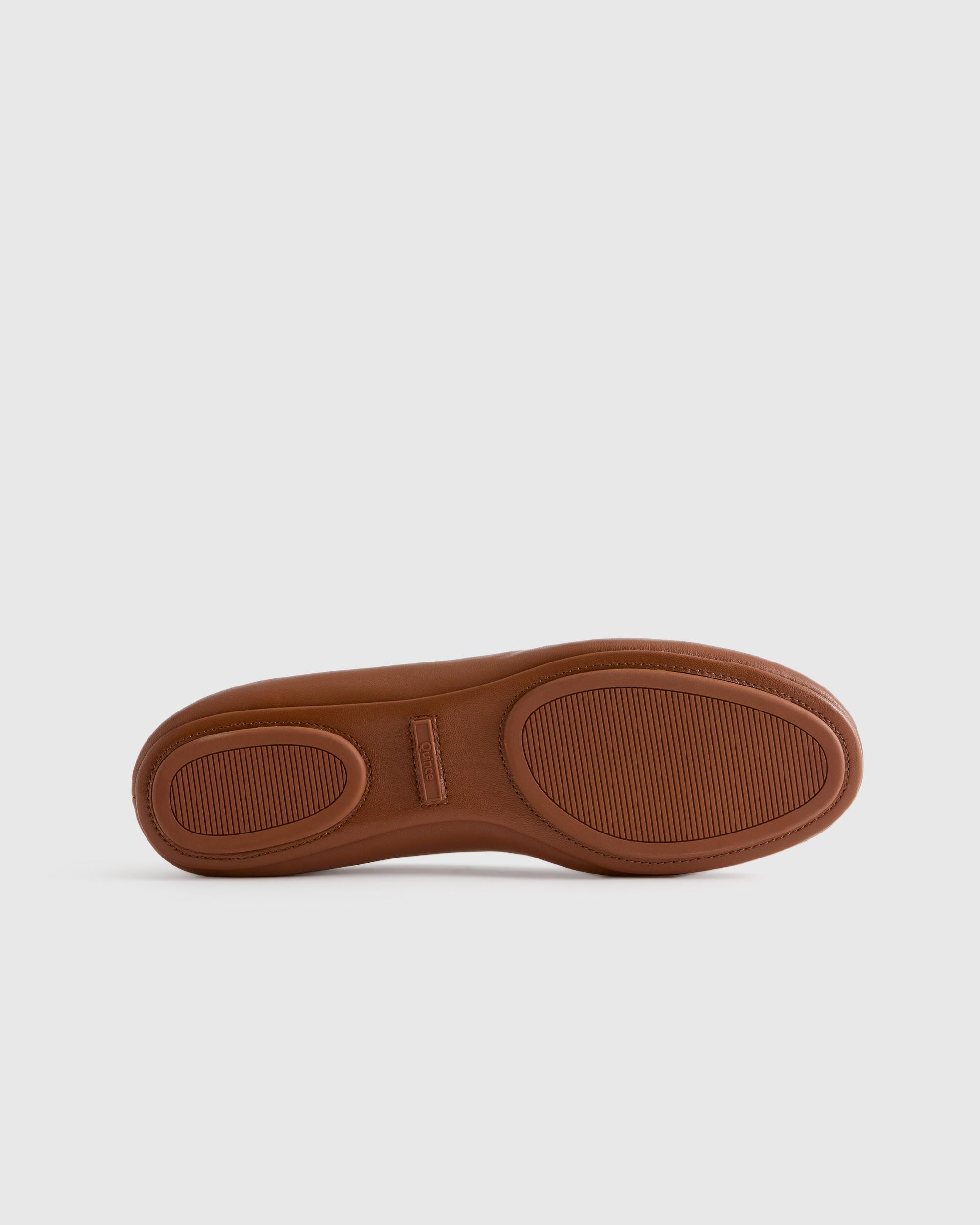 Treat yourself to the Italian Leather On-The-Go Ballet Flat. Crafted from high-quality Italian leather and featuring ortholite foam insoles, these flats are flexible and lightweight making them great to carry with you on-the-go. The classic silhouette and practical design make these a must have for any wardrobe. | Quince | Women's Italian Leather On-The-Go Ballet Flat in Cognac, Size 5