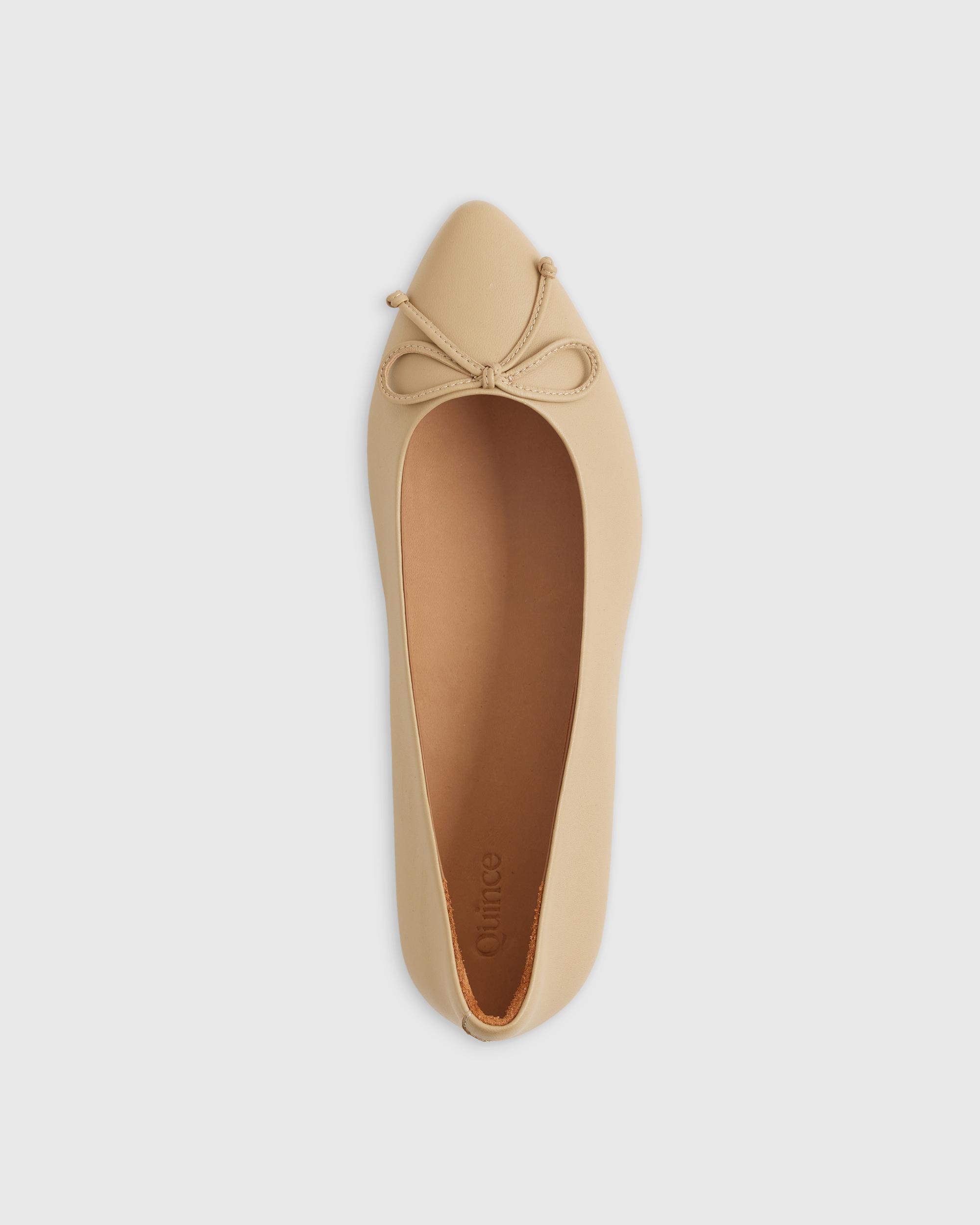 A study in the classics. Elevate your look with our buttery soft Italian Leather Pointed Bow Flat. Made from luxe Italian leather with a timeless pointed toe and bow detail, these flats are as comfortable as they are polished. | Quince | Women's Italian Leather Pointed Bow Flat in Almond, Size 11