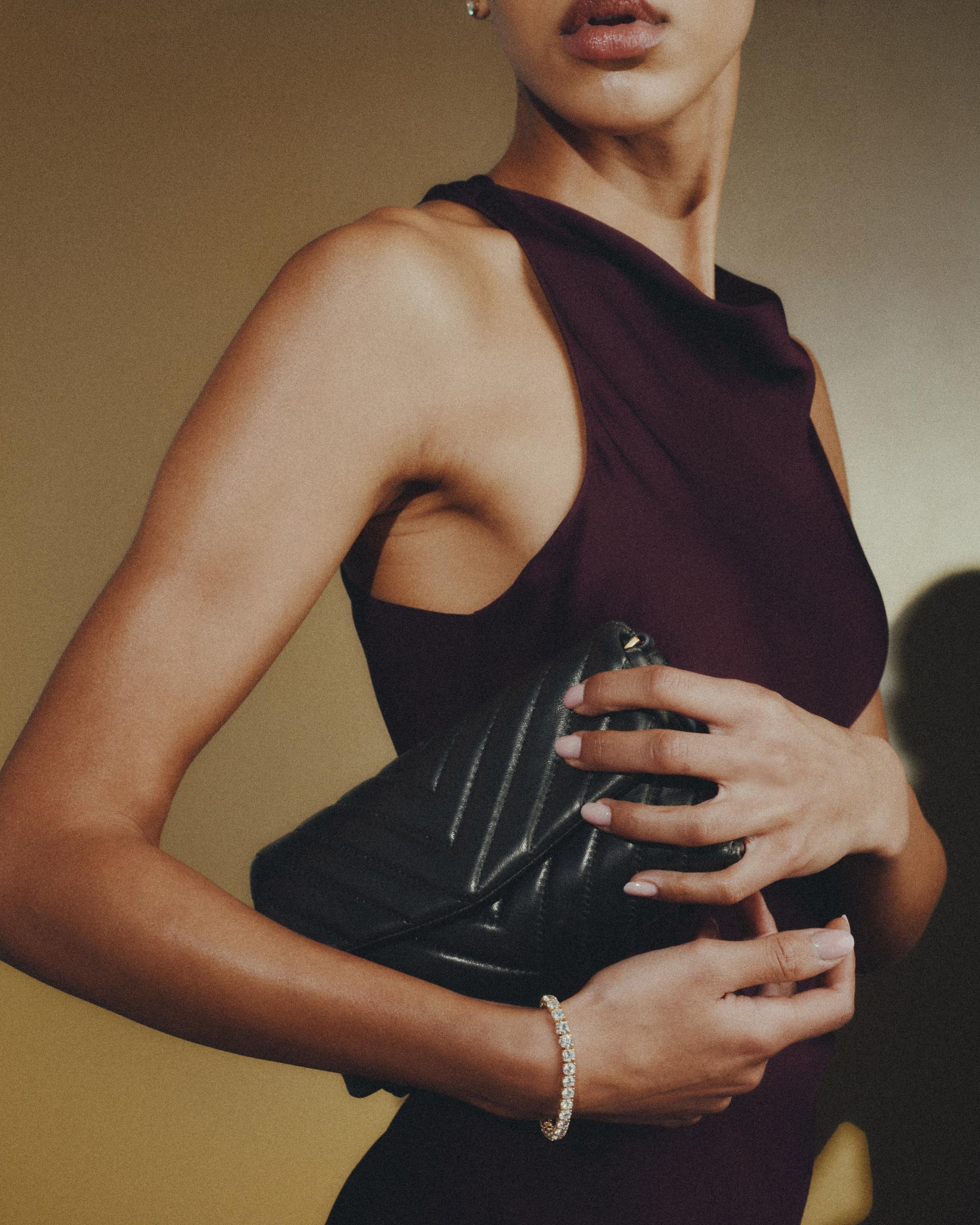 Think of this as the cherry on top of your evening look. Made of ultra-soft 100% Italian leather with a stylish quilted design, this piece will elevate any ensemble. And it boasts six card slots and a center zip pocket to hold all the essentials. Wear as a chic crossbody or remove the detachable chain to make a cute clutch. | Quince | Women's Italian Leather Quilted Wallet Crossbody in Black/Gold