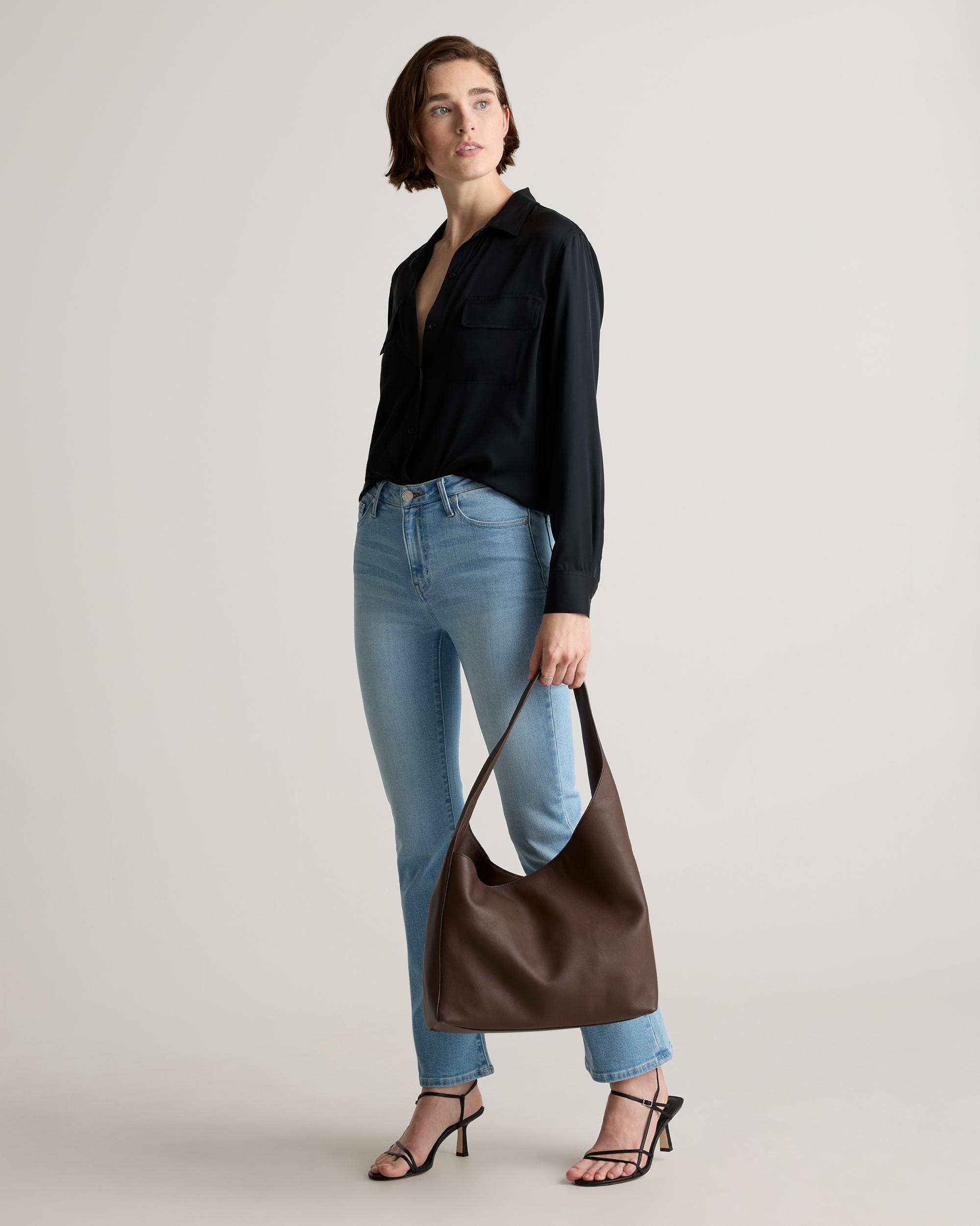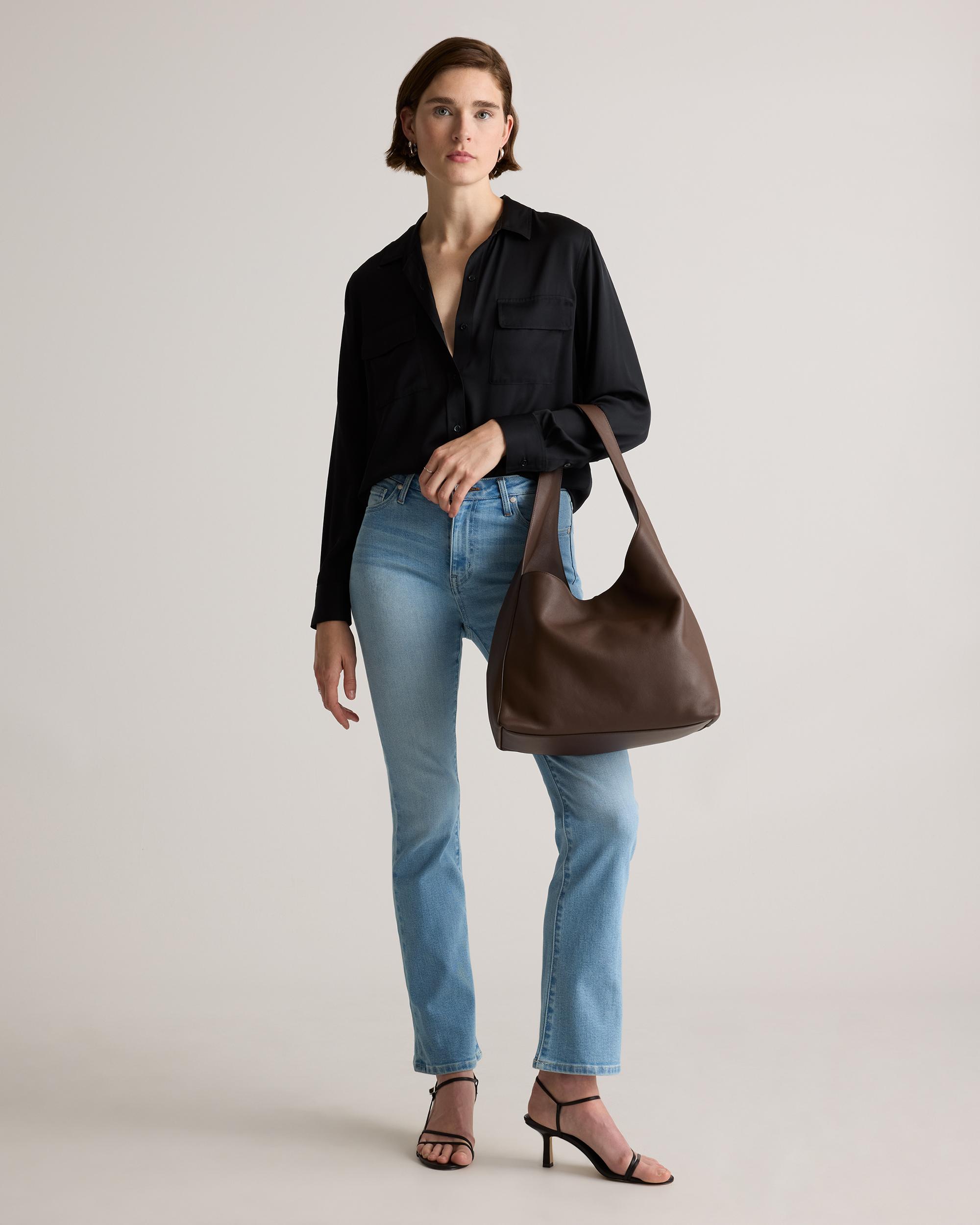 Discover the Italian Leather Slouchy Shoulder Bag, a elevated reinterpretation of our timeless Italian Suede Slouchy Shoulder Bag. Crafted with rich Italian leather, this piece retains the same functionality, but reimagined with a bold, new character. The