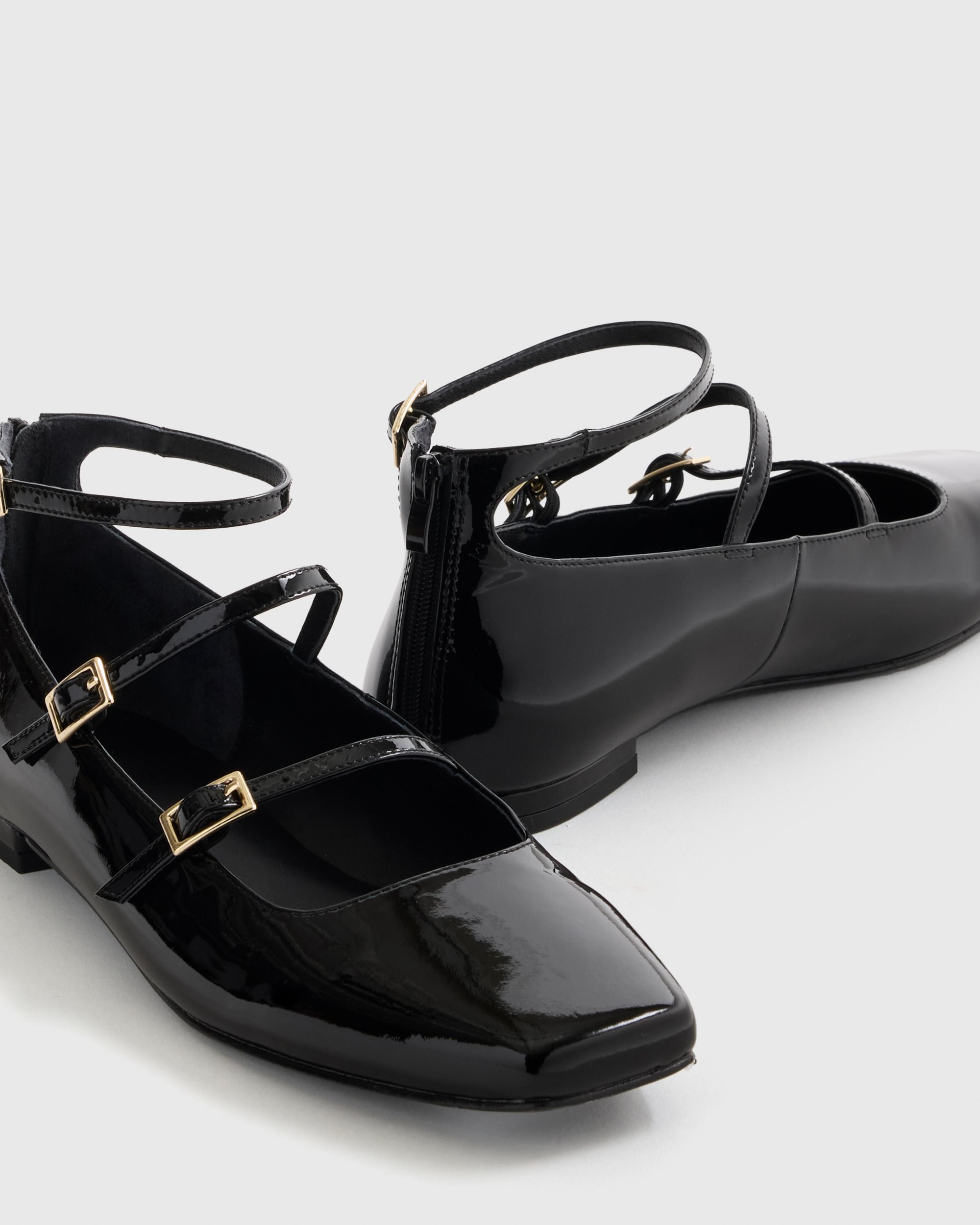 Meet our Italian Leather Strappy Ballet Flats, the epitome of elegance and sophistication. Crafted from premium Italian leather, these flats feature a chic triple strap design that adds a touch of femininity to any outfit. The ballet flat style provides c
