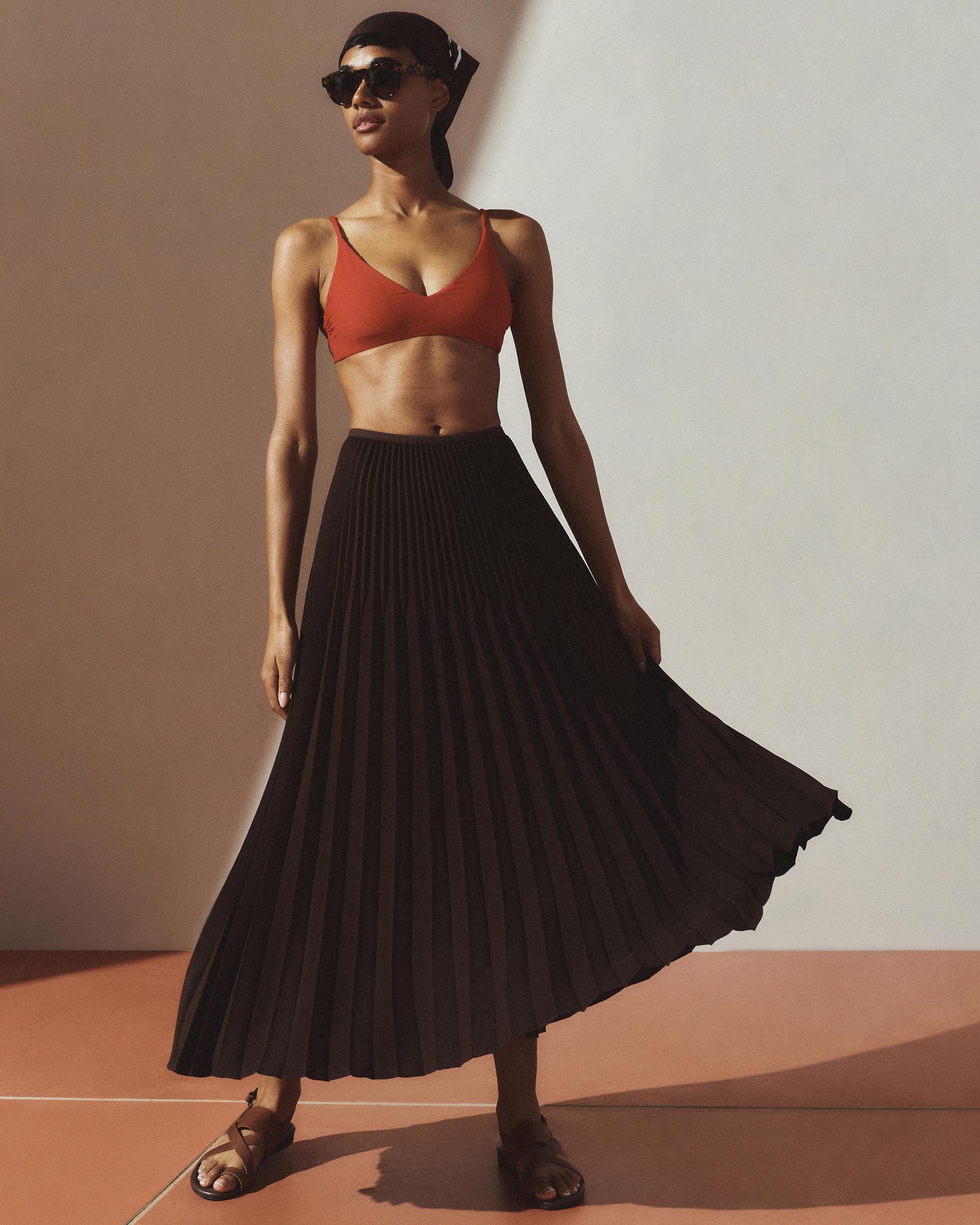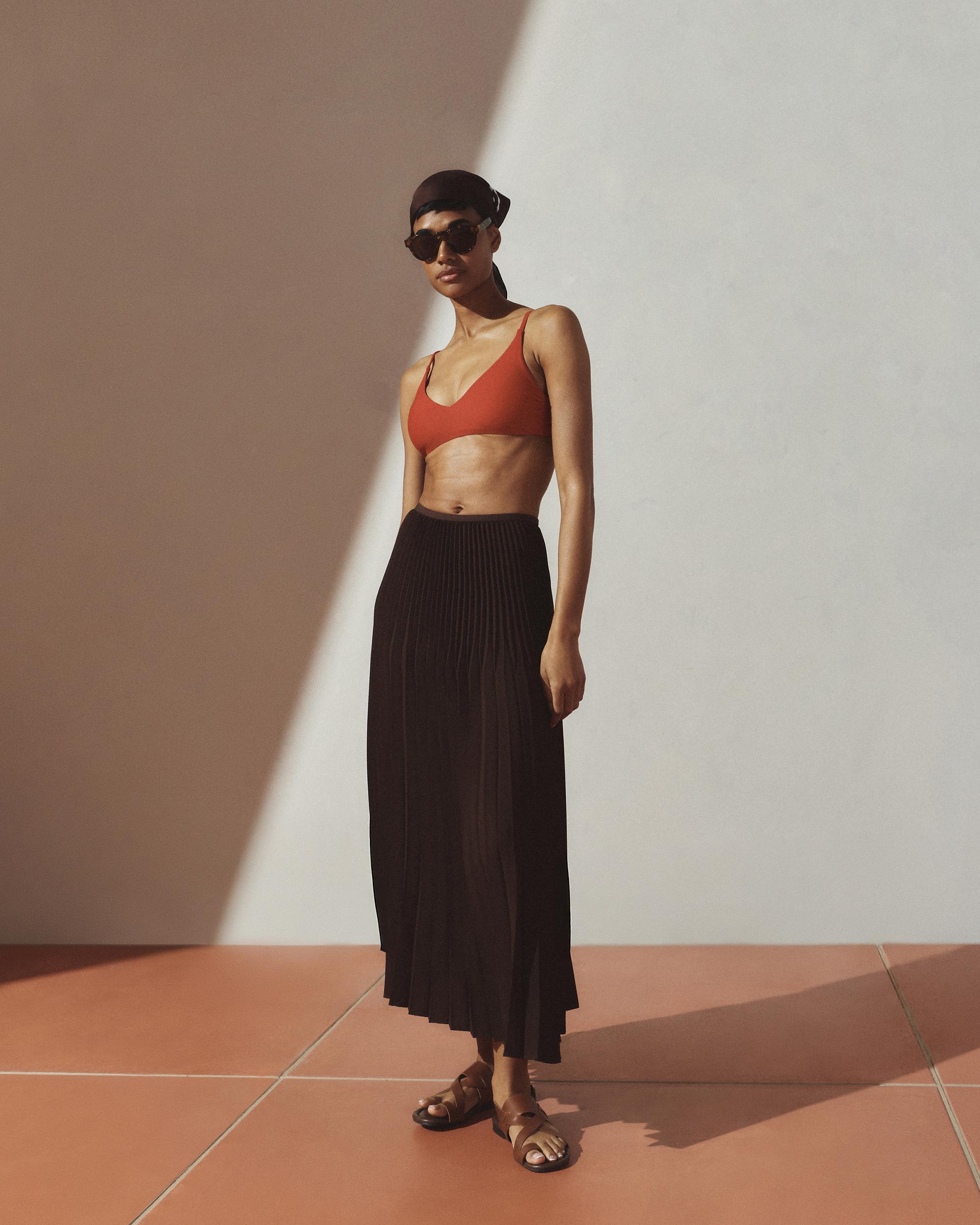 Our classic v-neck bikini top is a triple threat: It was made to last, made with Italian-crafted fabric, and thoughtfully made with recycled materials. Outfitted with removable padding, the adjustable straps and hook closure means the perfect fit every time. Resists fading, pilling, and snagging, so you'll be wearing it for years to come. | Quince | Women's Italian V-Neck Bikini Top in Cherry, Size Small, 78% Recycled Polyamide, 22% Spandex