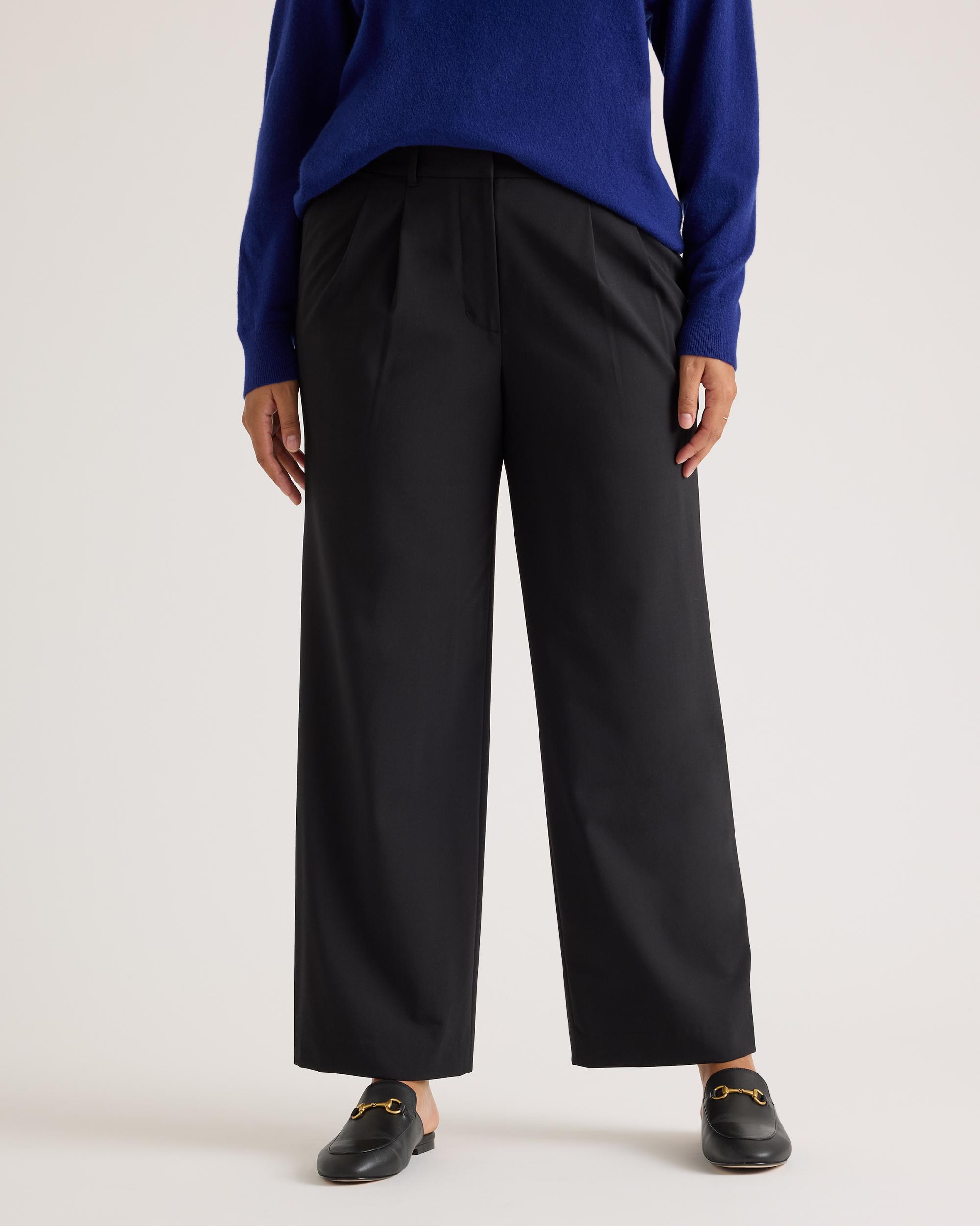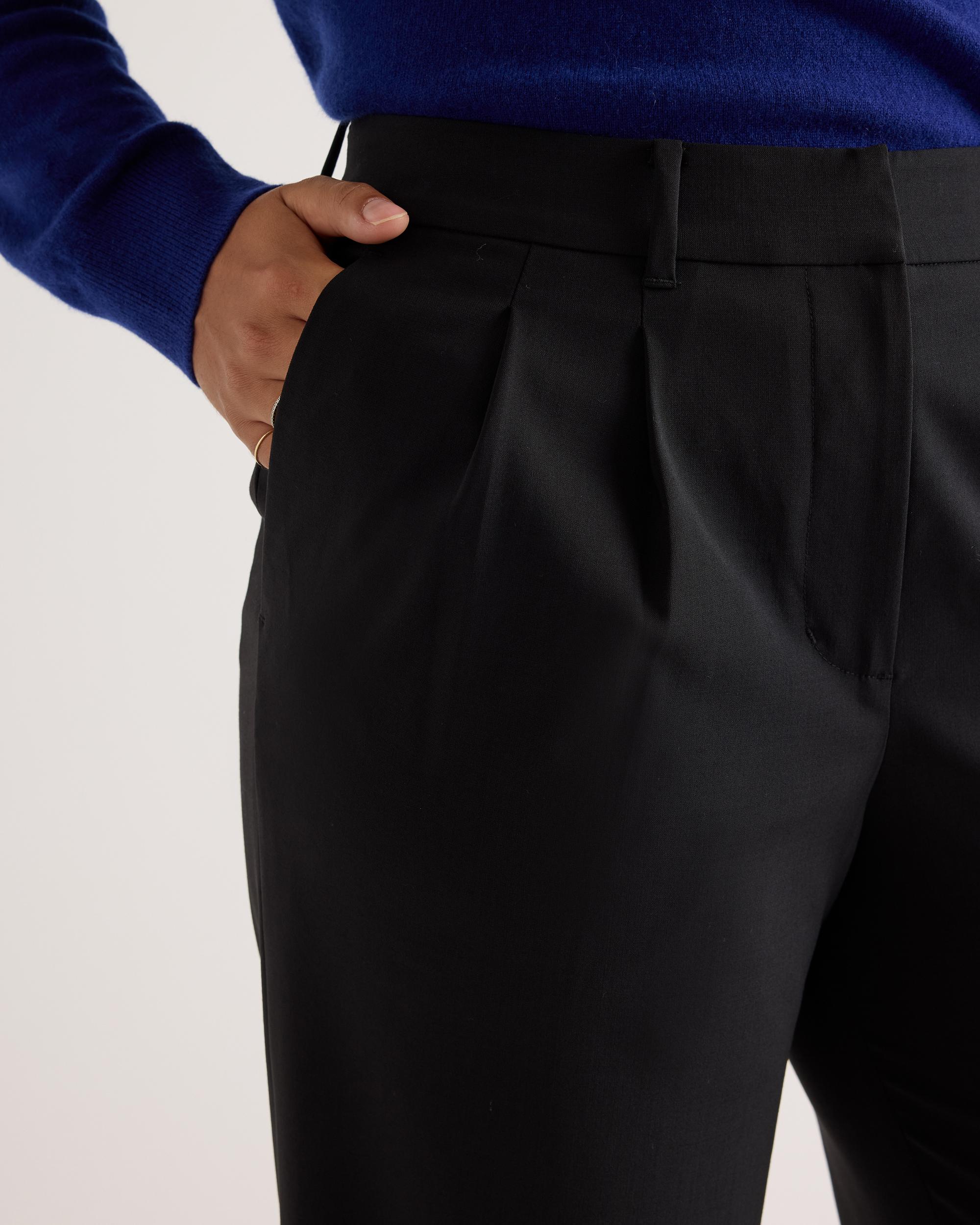 Step into elegance and sophistication with our Italian Wool Pleated Trousers. Crafted from the finest Italian wool, these trousers offer a luxurious feel that’s perfect for both work and play. The classic pleated front adds structure and style, ensuring you always look polished. | Quince | Women's Italian Wool Pleated Trouser in Black, Size 14