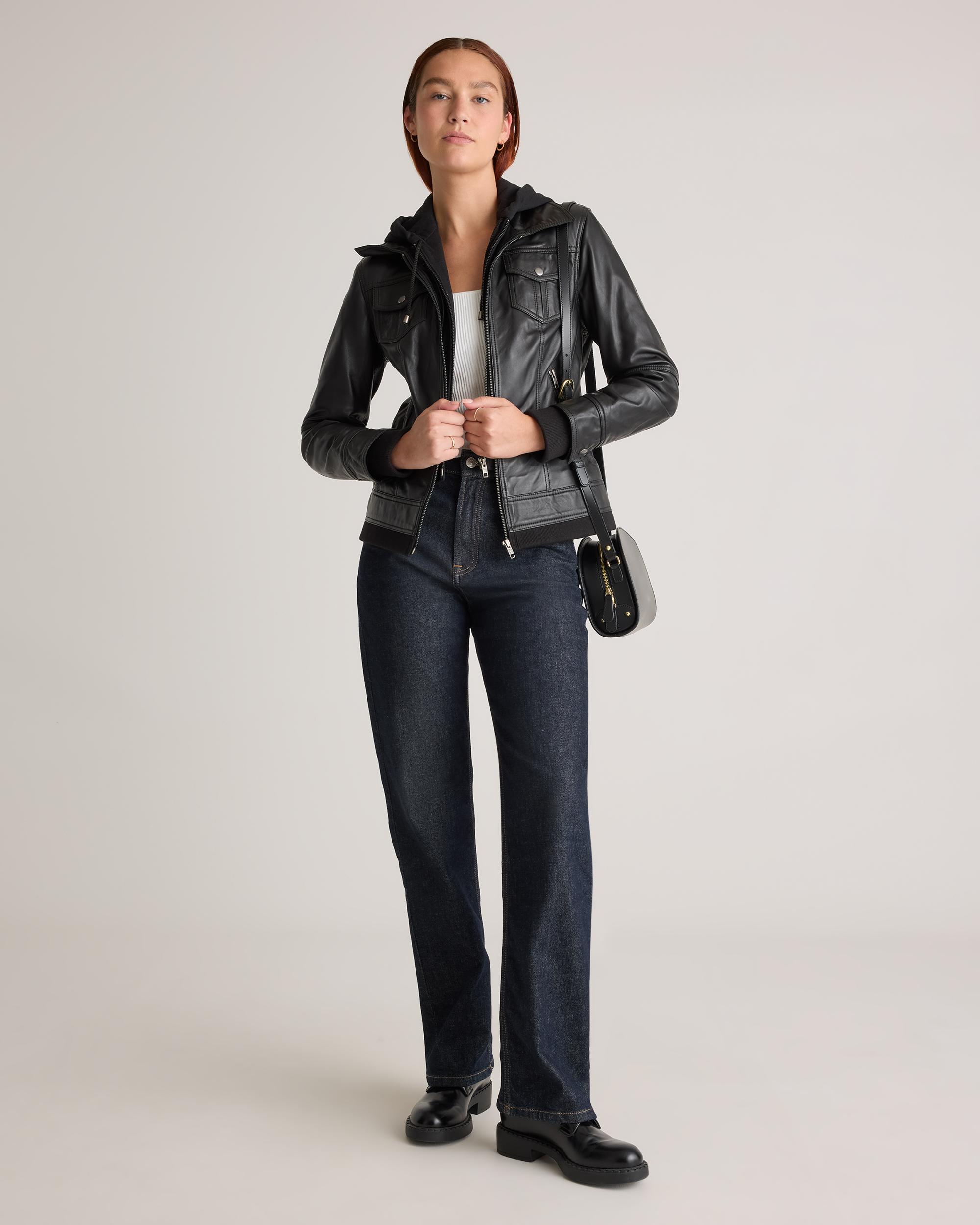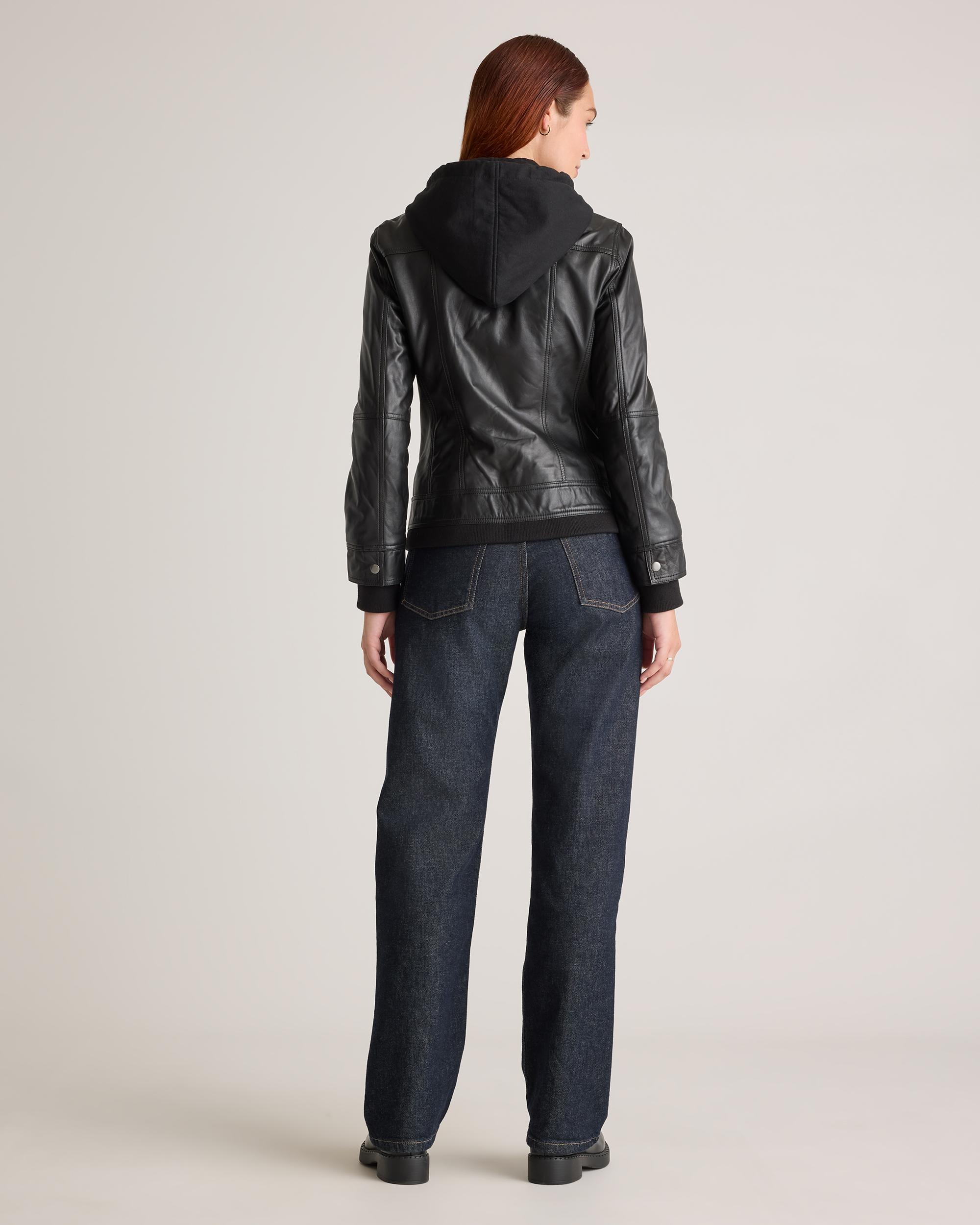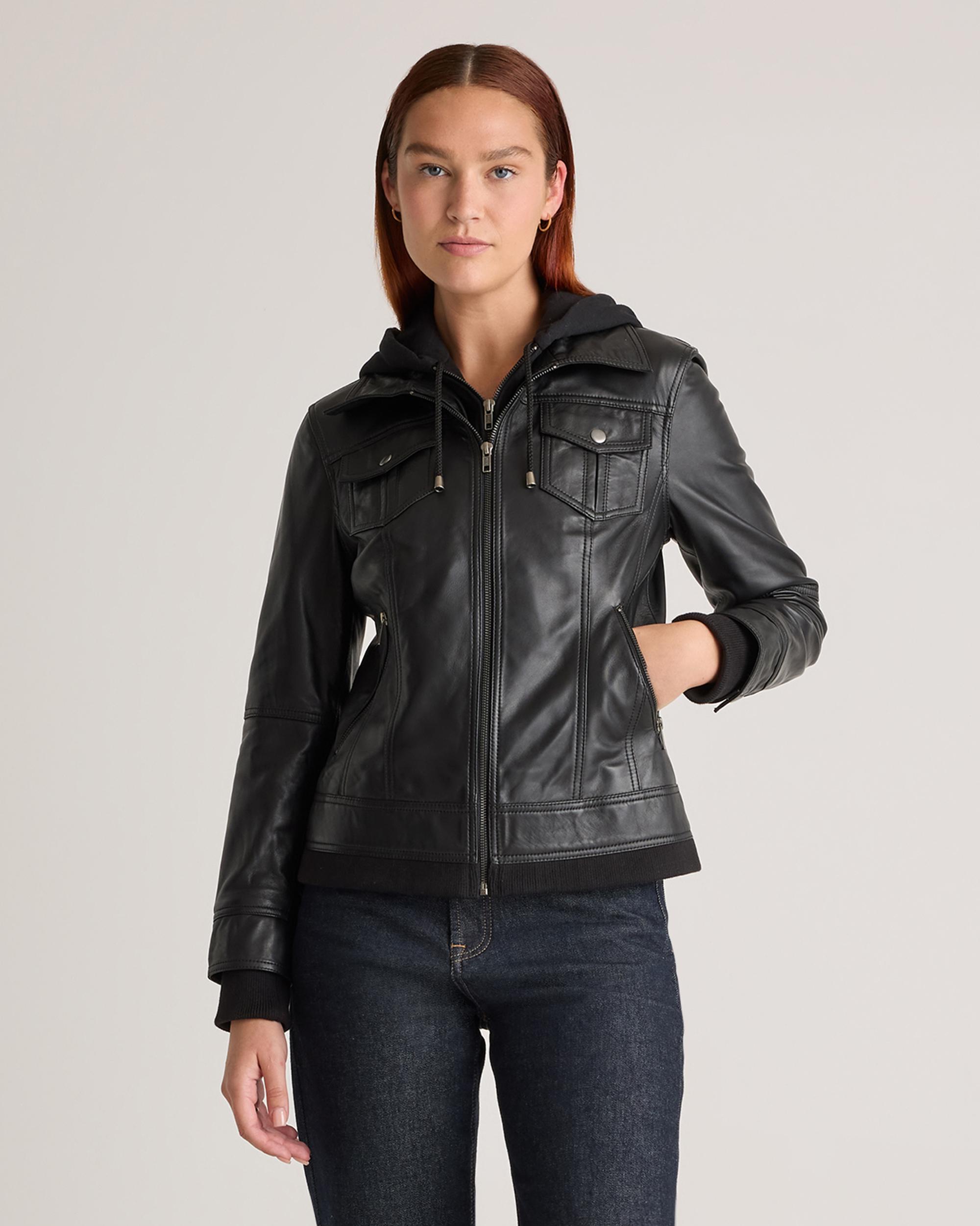 Made from 100% top grain leather, this jacket comes in a classic, timeless design. So comfortable and stylish, you'll be happy wearing it again and again. Read more about what makes our leather special in our Leather 101 guide. | Quince | Women's Jacket with Hood in Black, Size Large, Leather