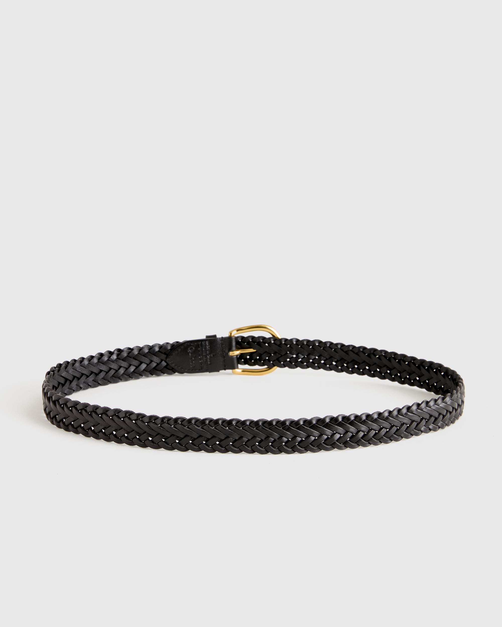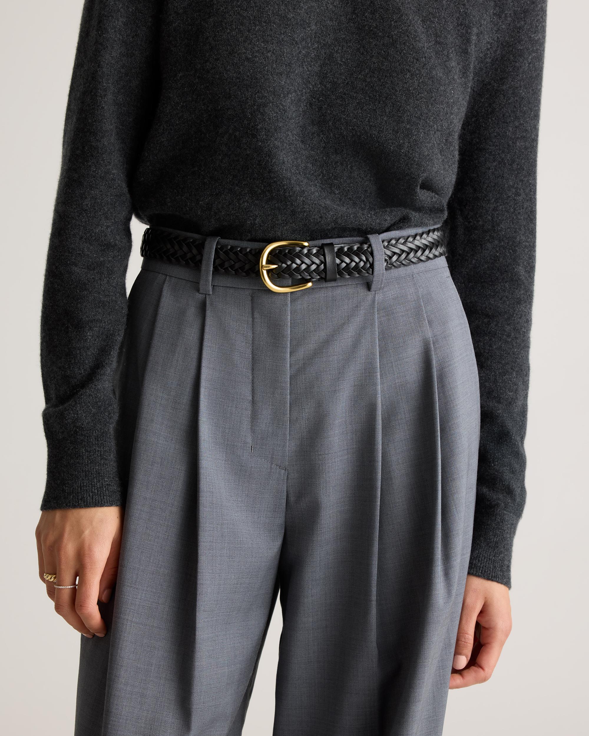 Expertly handcrafted from premium European leather and adorned with a sturdy metal buckle, our Josie European Leather Braided Belt serves as the perfect accent to elevate any ensemble. Designed to be worn at either the waist or hips, the versatile piece is a must-have sample for any wardrobe. | Quince | Women's Josie European Leather Braided Belt in Black, Size Small, Italian Leather