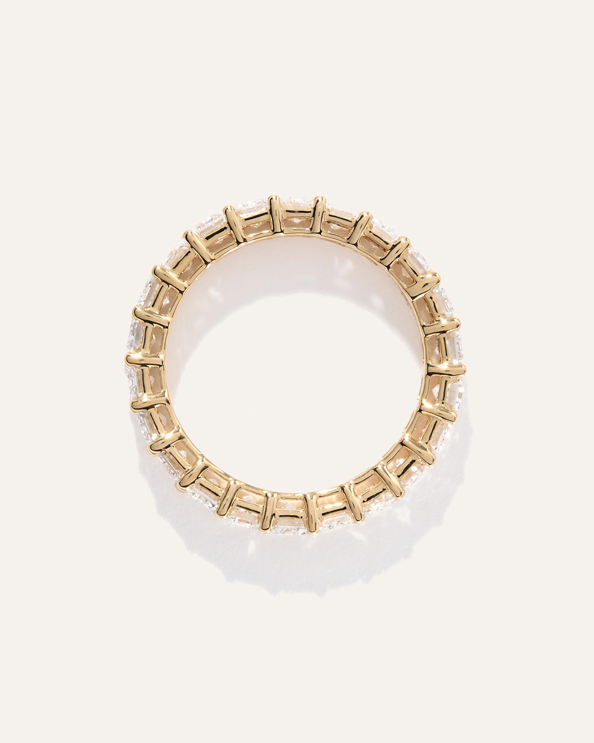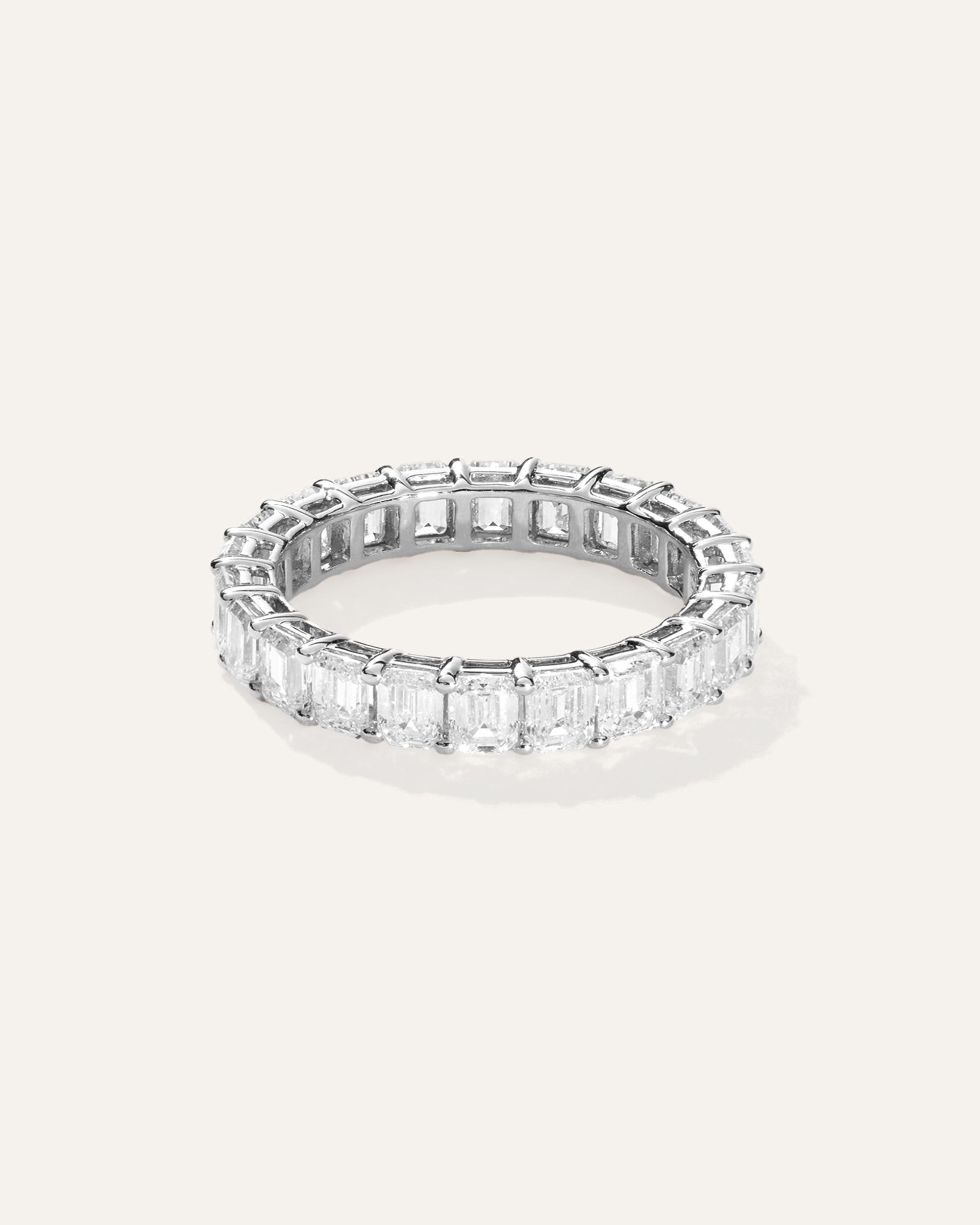 Make it endless. We're talking about the eternity-style row of lab grown diamonds that encircle this ring. Crafted from 14K recycled gold with meticulous attention to detail, these emerald cut lab grown diamonds are placed in a shared prong setting and will sparkle to infinity. Each lab grown diamond is carefully selected for exceptional quality, showing off that signature light and fire that only belongs to the best. Makes a statement no matter how you wear it—as an enduring symbol of love, or just because you love how it looks. | Quince | Women's Lab Grown Diamond Emerald Eternity Band Rings in White Gold, Size 8.5