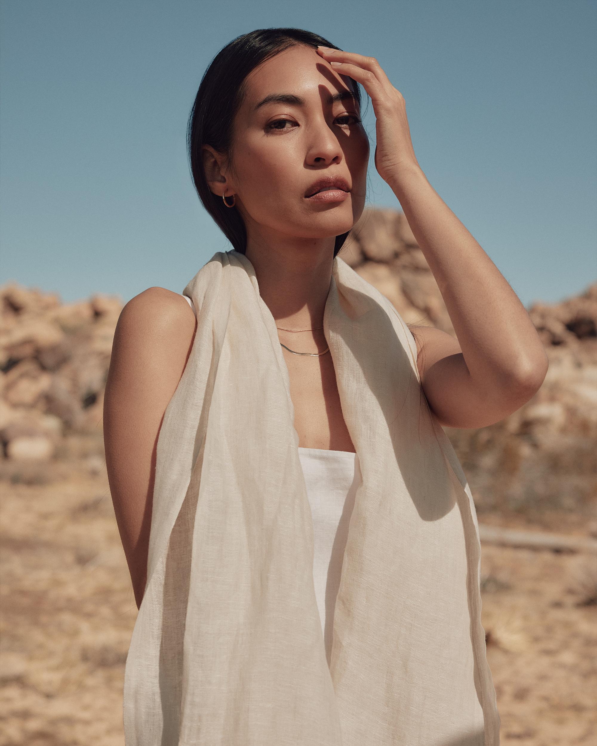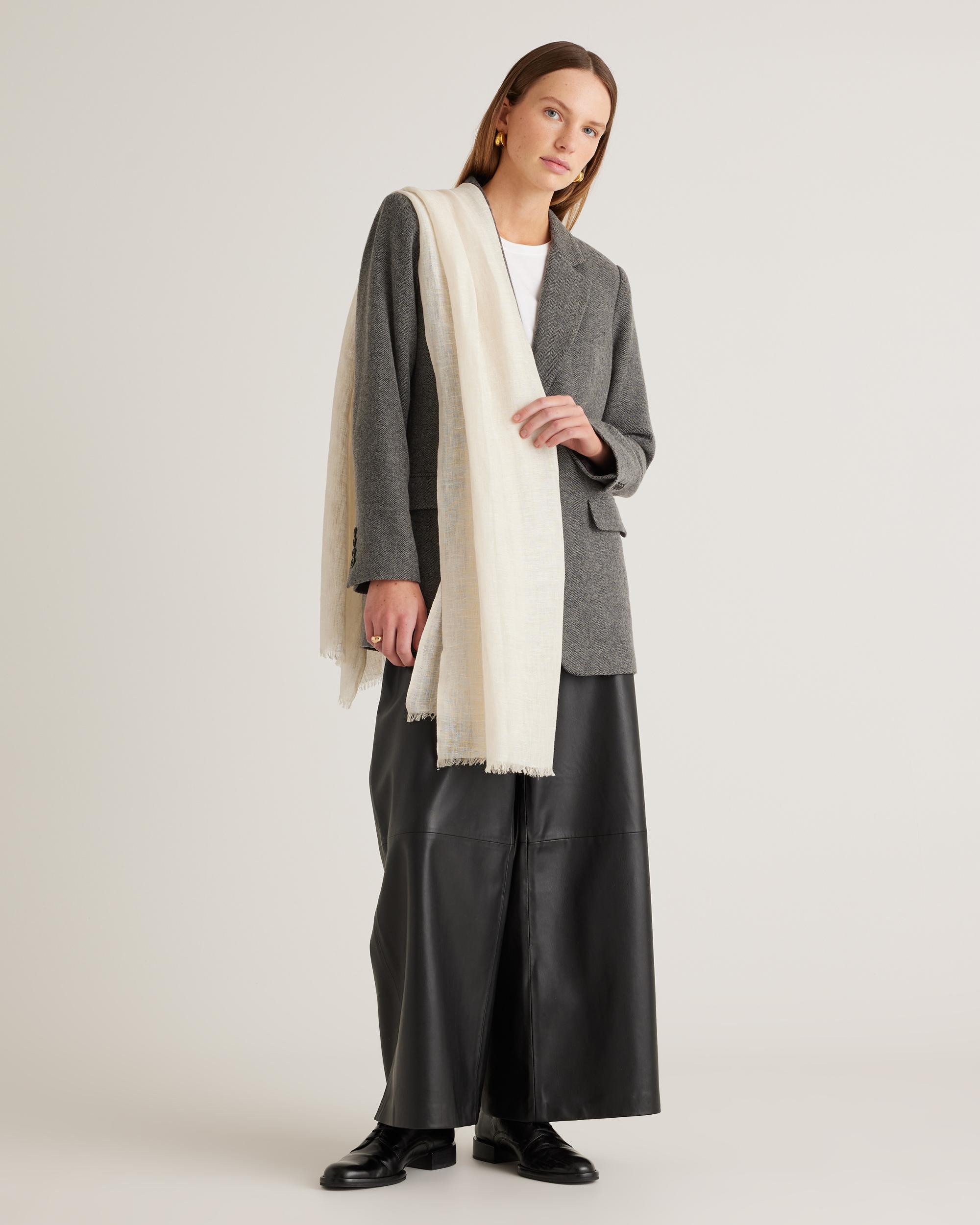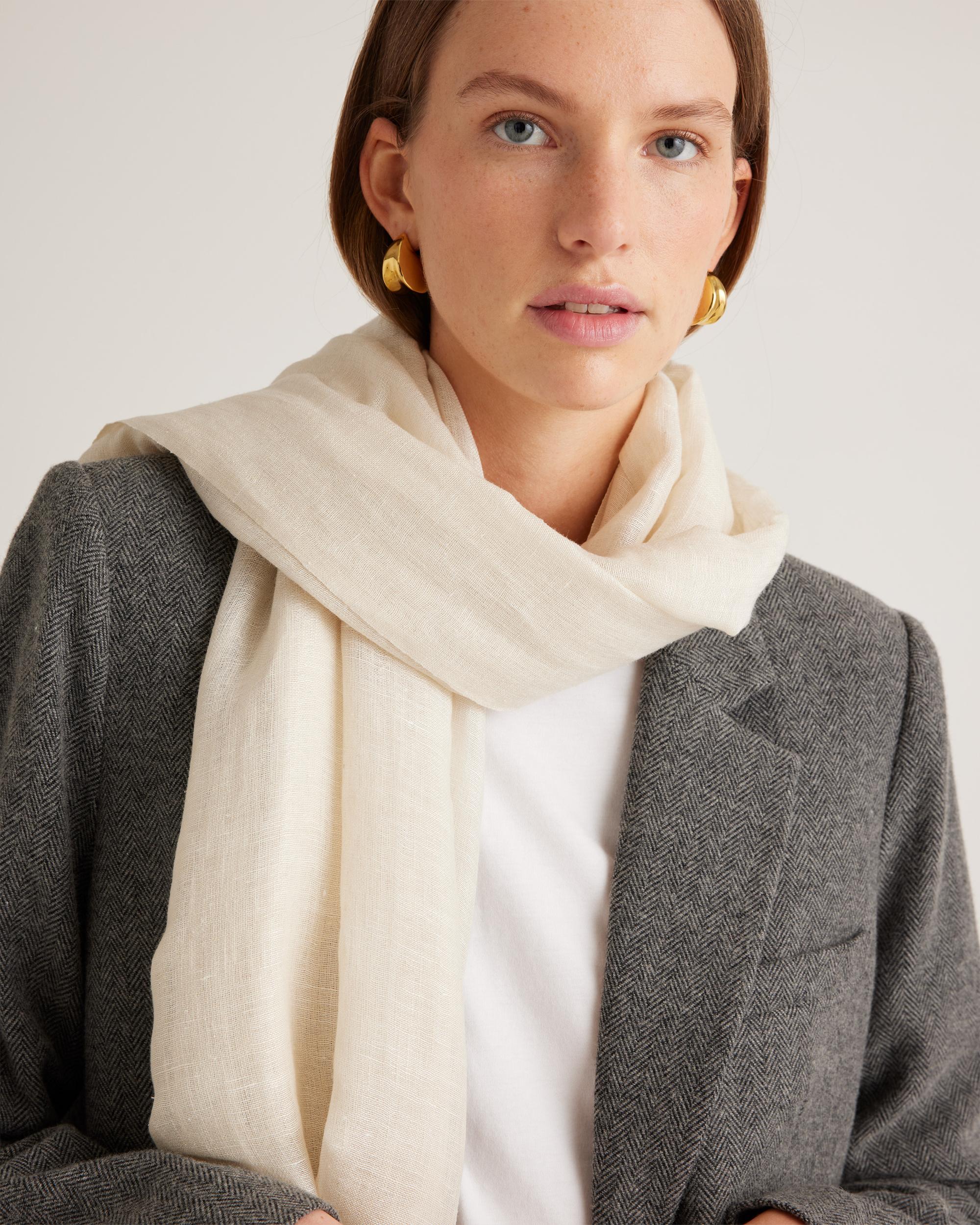 Cozy up to a trio of luxe textures with this Lightweight Linen Silk Cashmere Scarf. Silk lends a lustrous, smooth feel, linen brings breathability, and cashmere adds cozy warmth. | Quince | Women's Lightweight Linen Silk Cashmere Scarf in Ivory
