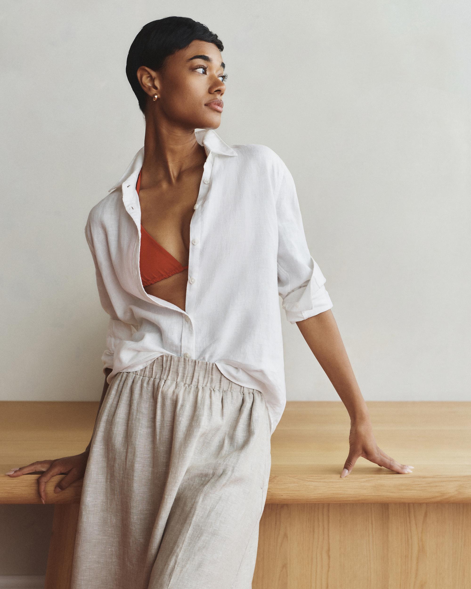 This shirt is the epitome of low-maintenance luxe. As a button-up, it's a classic wardrobe essential, but we love to wear it open as a spring/summer light layer. Our linen is made from 100% European flax, which is more sustainable and less resource-intensive to grow. Linen is the ultimate year-round fabric because it's breathable and naturally heat-regulating. Also offered in sizes 1X-3X. | Quince | Women's Long Sleeve Shirt in White, Size Small, Linen