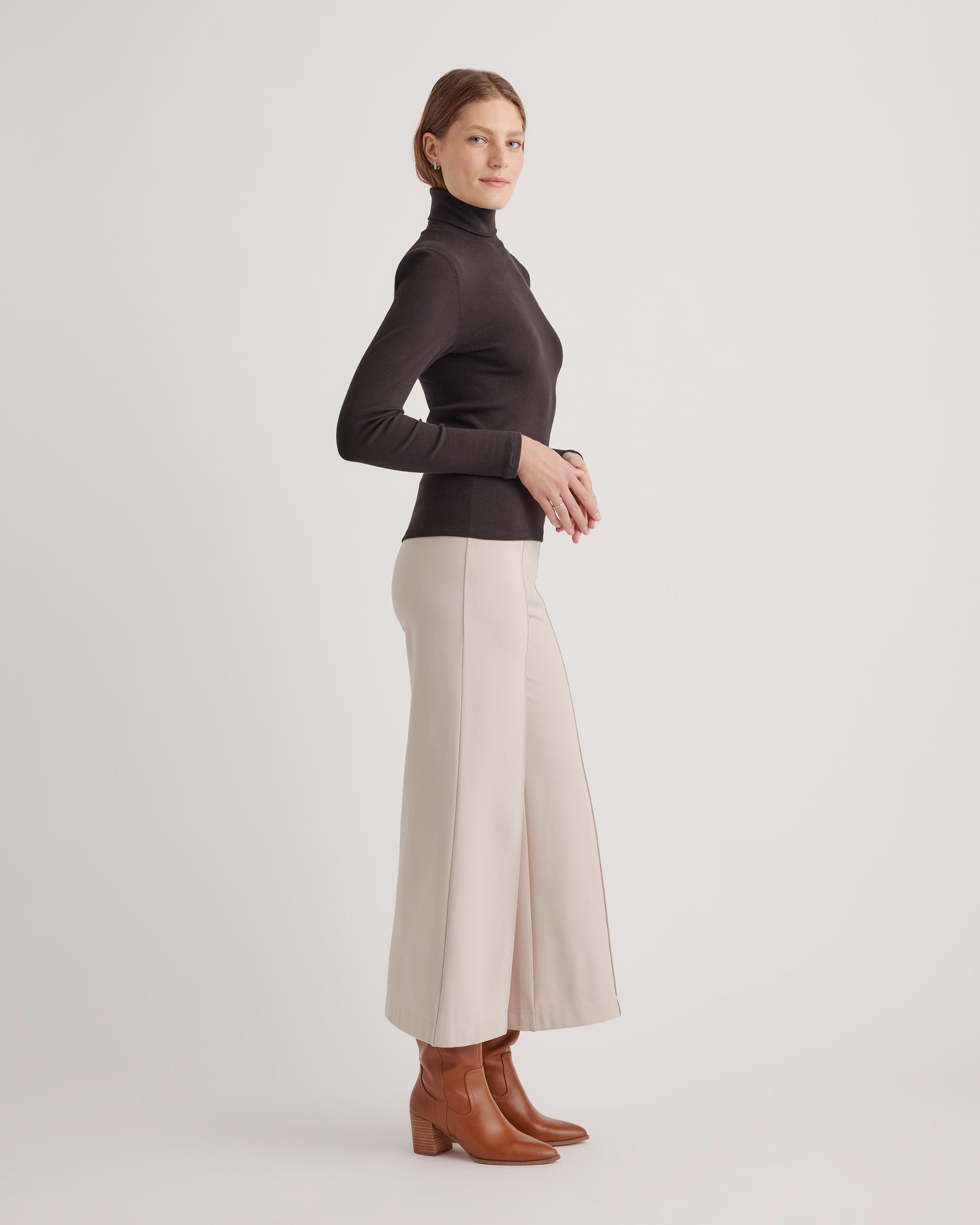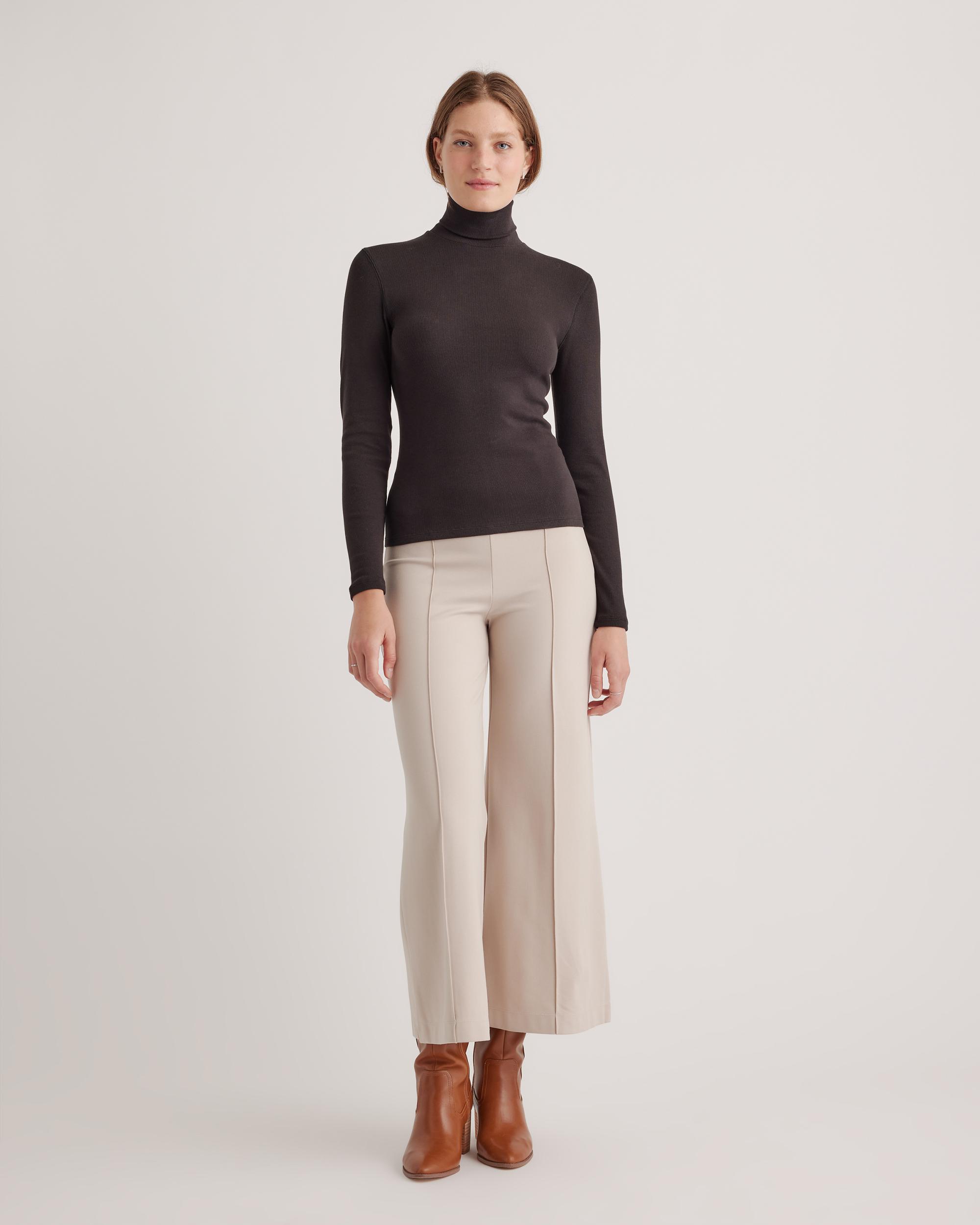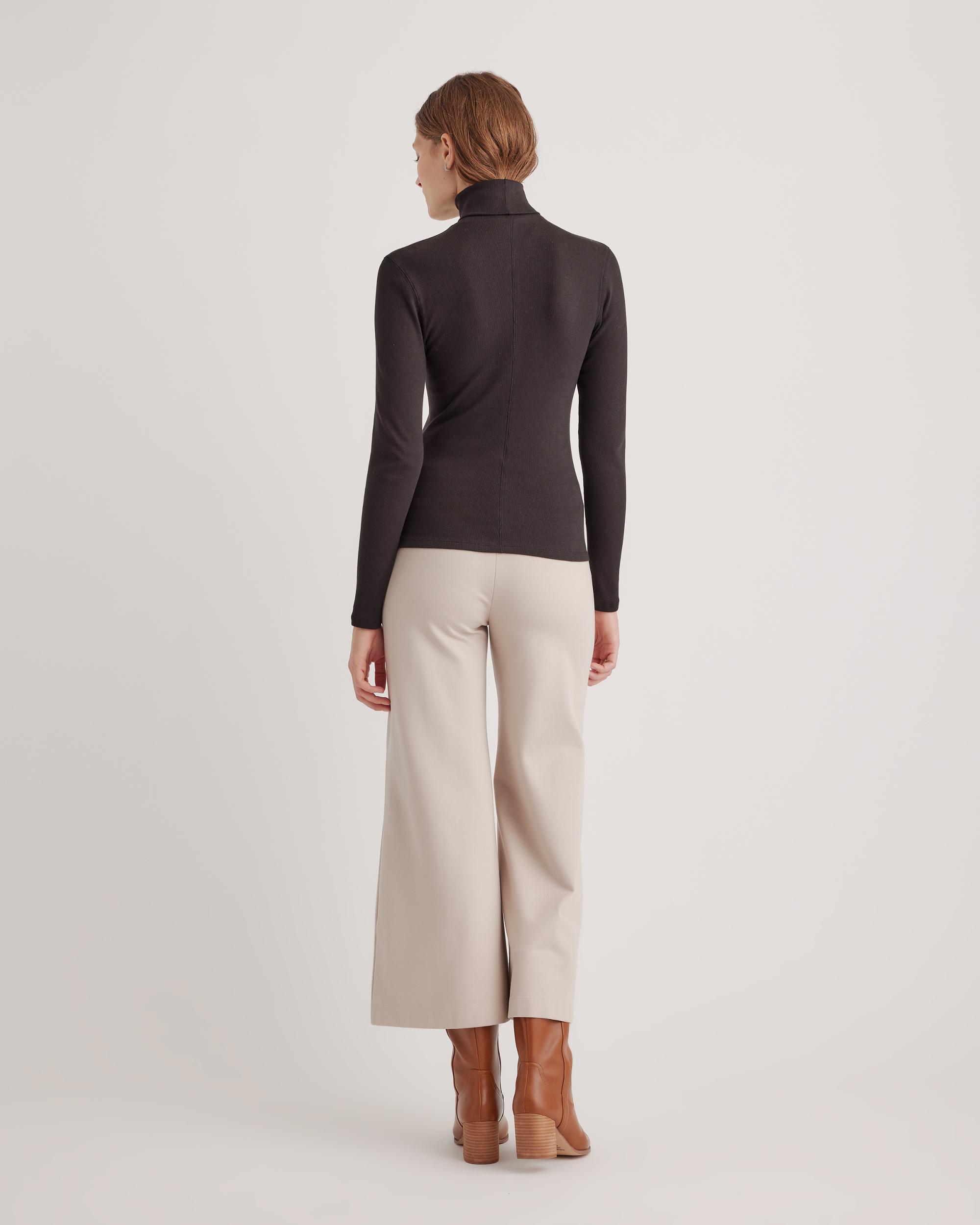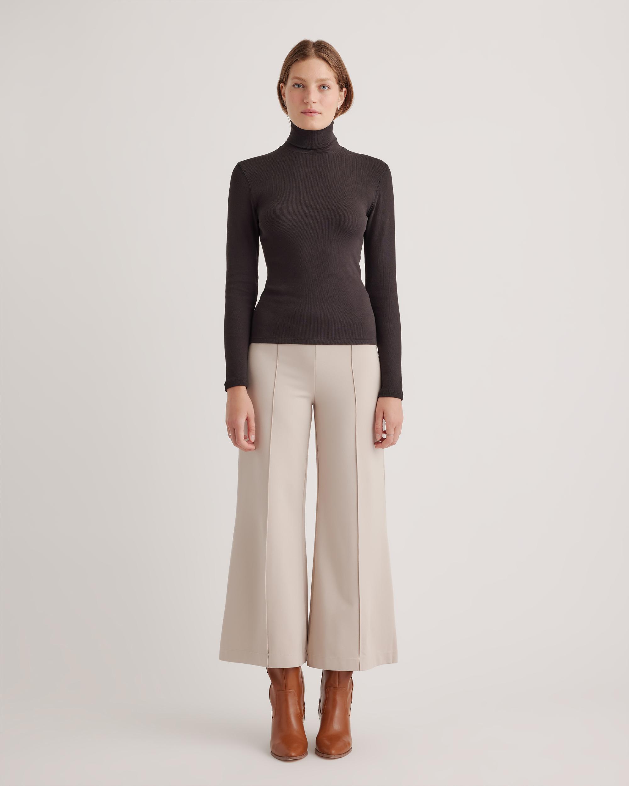 Grab a few, because the Organic Cotton Micro-Rib Turtleneck is a lightweight essential that means both comfort and style. Made from premium organic cotton, its micro rib adds a touch of texture to anything. Pair with high-waisted jeans and your favorite leather jacket for a timelessly cool look. | Quince | Women's Micro-Rib Turtleneck Sweater in Black, Size Small, Organic Cotton