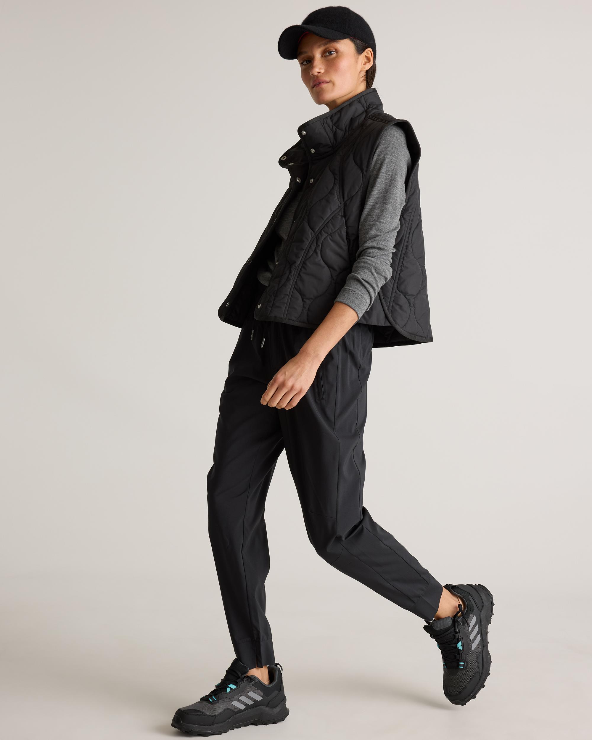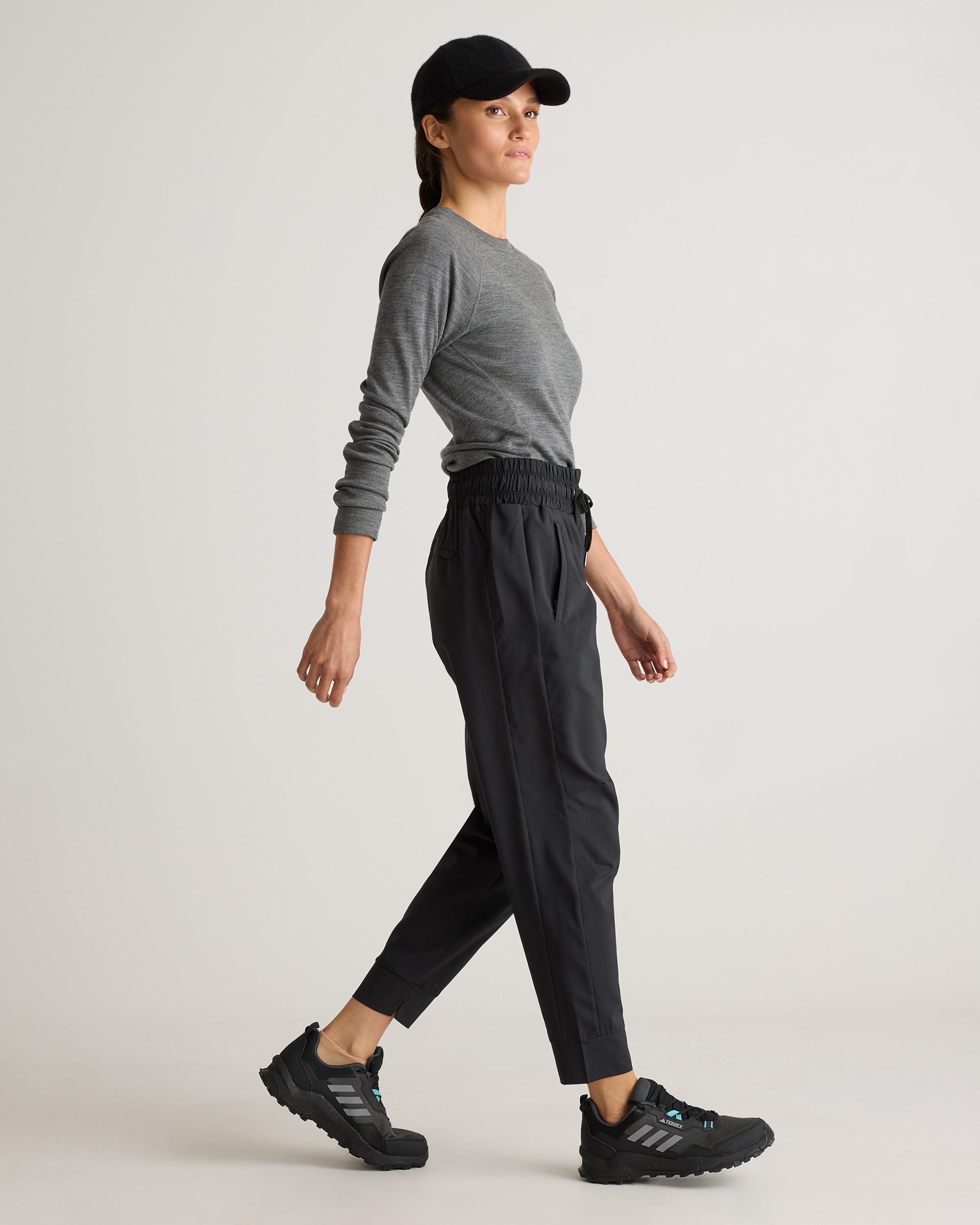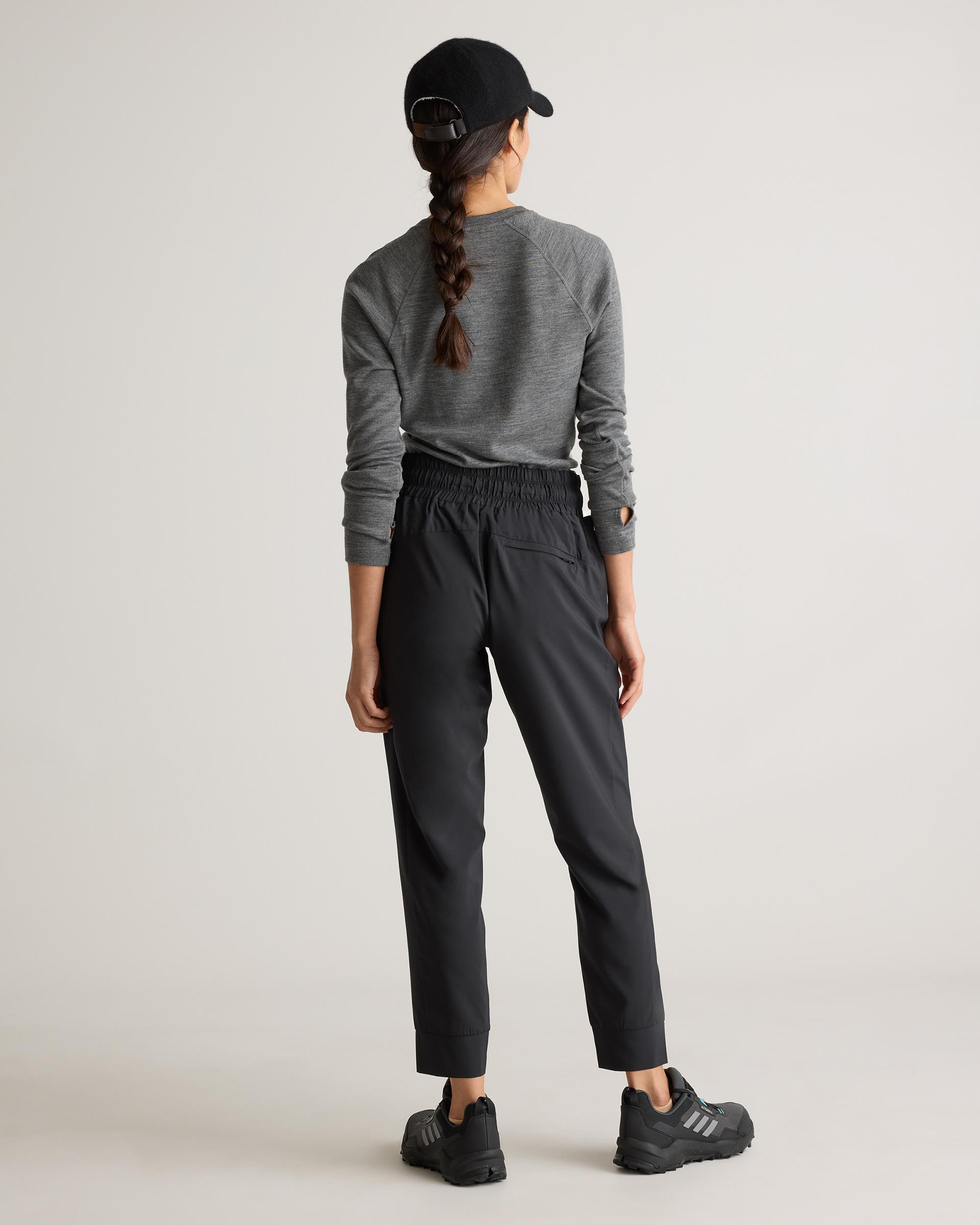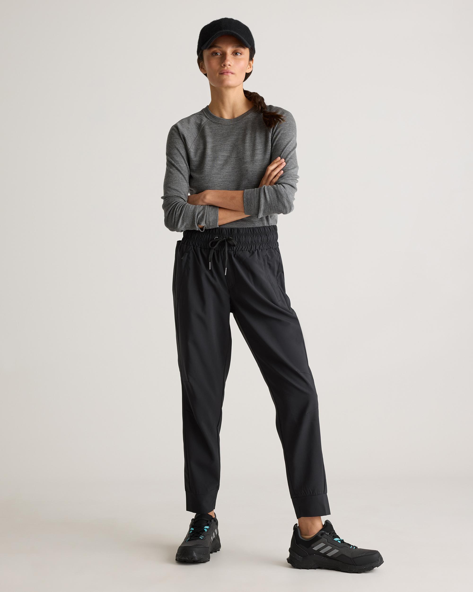 Conquer the trails in style with our Micro Ripstop Mid-Rise Jogger, designed for hiking and outdoor adventures. Crafted from lightweight micro ripstop fabric, they resist abrasions while remaining breathable for all-day wear. Multiple pockets, including side pockets and a zippered back pocket, offer ample storage for essentials like your phone, keys, and trail maps. Finished with a water-repellent coating, these joggers are built to handle unexpected weather and rugged terrain. | Quince | Women's Micro Ripstop Mid-Rise Hike Jogger in Black, Size Medium, Polyester