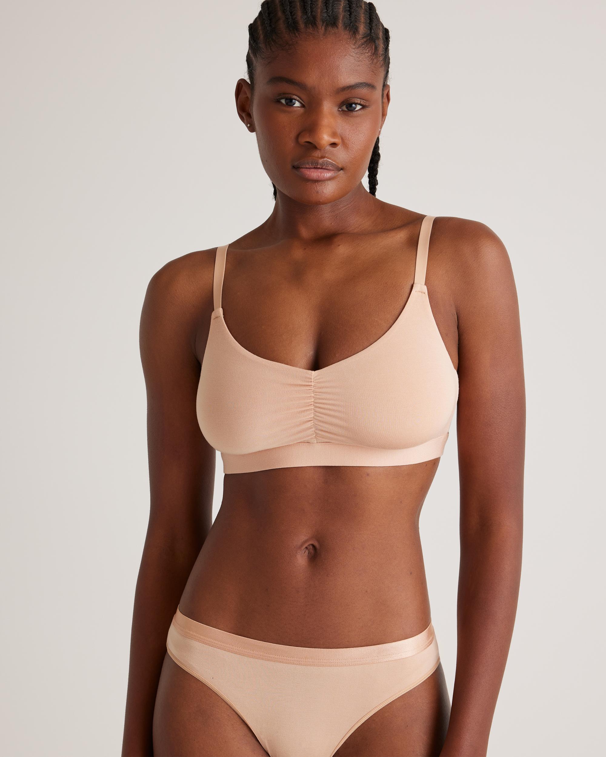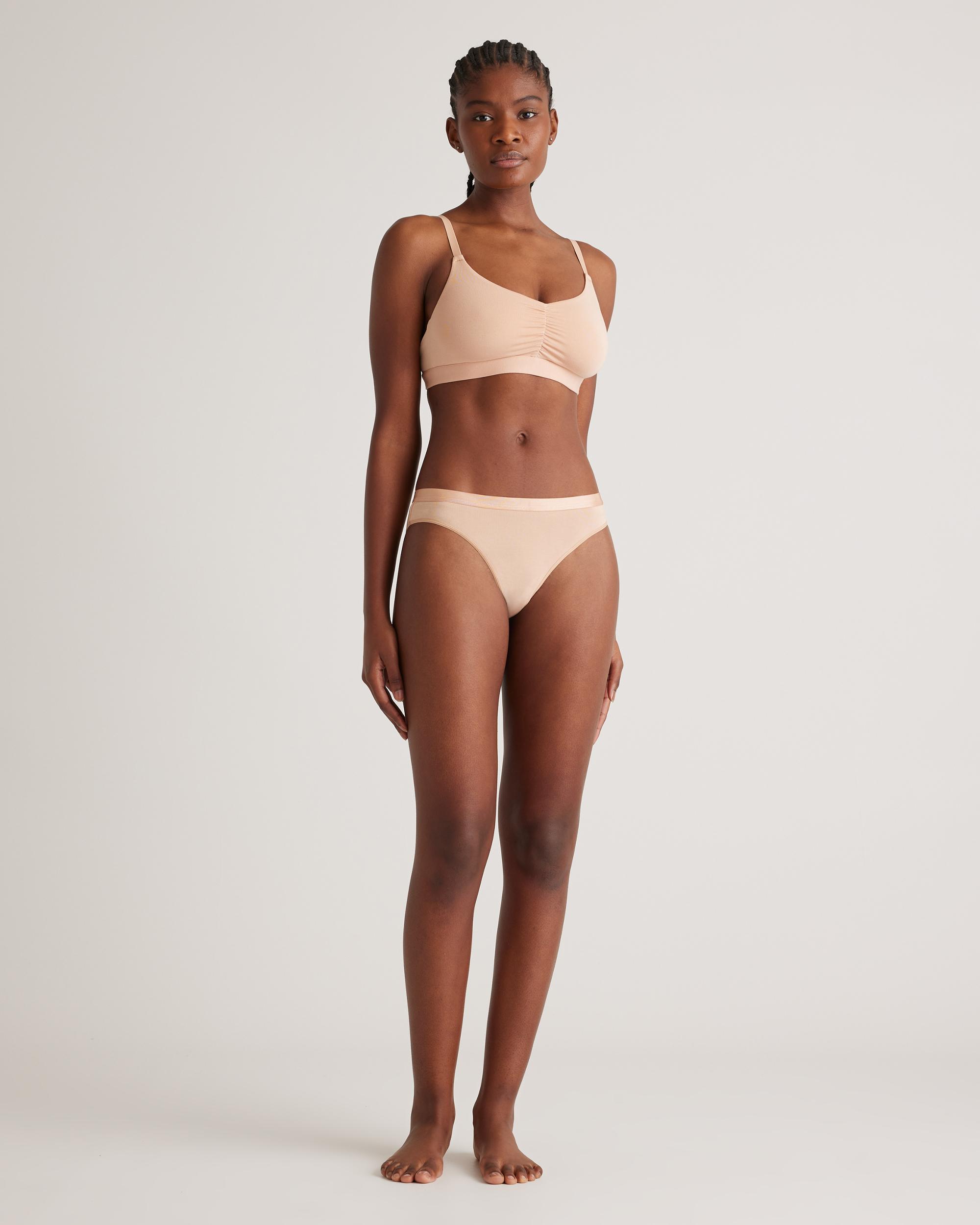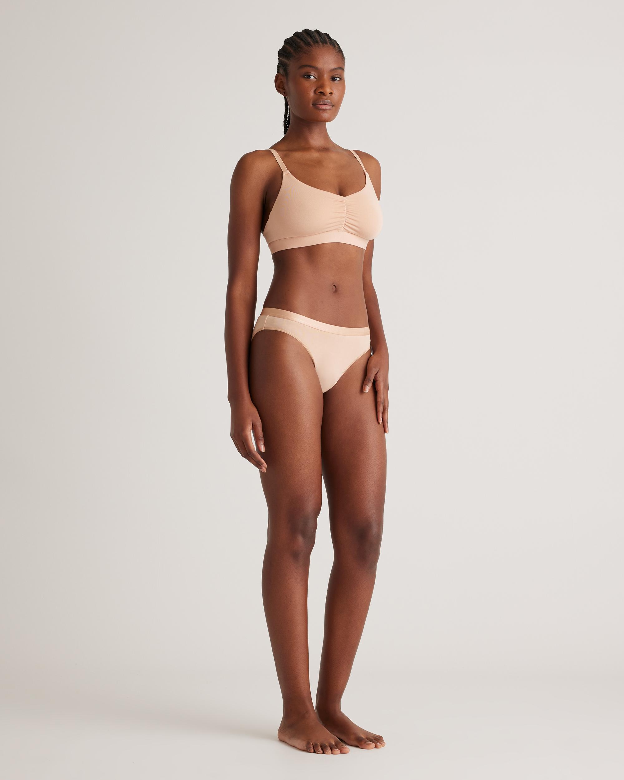 Our ultra-soft Micromodal Bikini checks all the boxes: supportive, lightweight, breathable, and of course, comfortable. This essential bikini is made from the highest-quality micromodal fabric that feels incredibly luxe and soft against your skin. We also added a no-roll elastic waistband so you don't have to worry about any rolling, pinching, or bunching. Made for daily wear, these bikinis are the perfect foundation for any outfit. Make it a match with our Micromodal Ruched Bralette. | Quince | Women's Micromodal Bikini in Warm Sand, Size Small