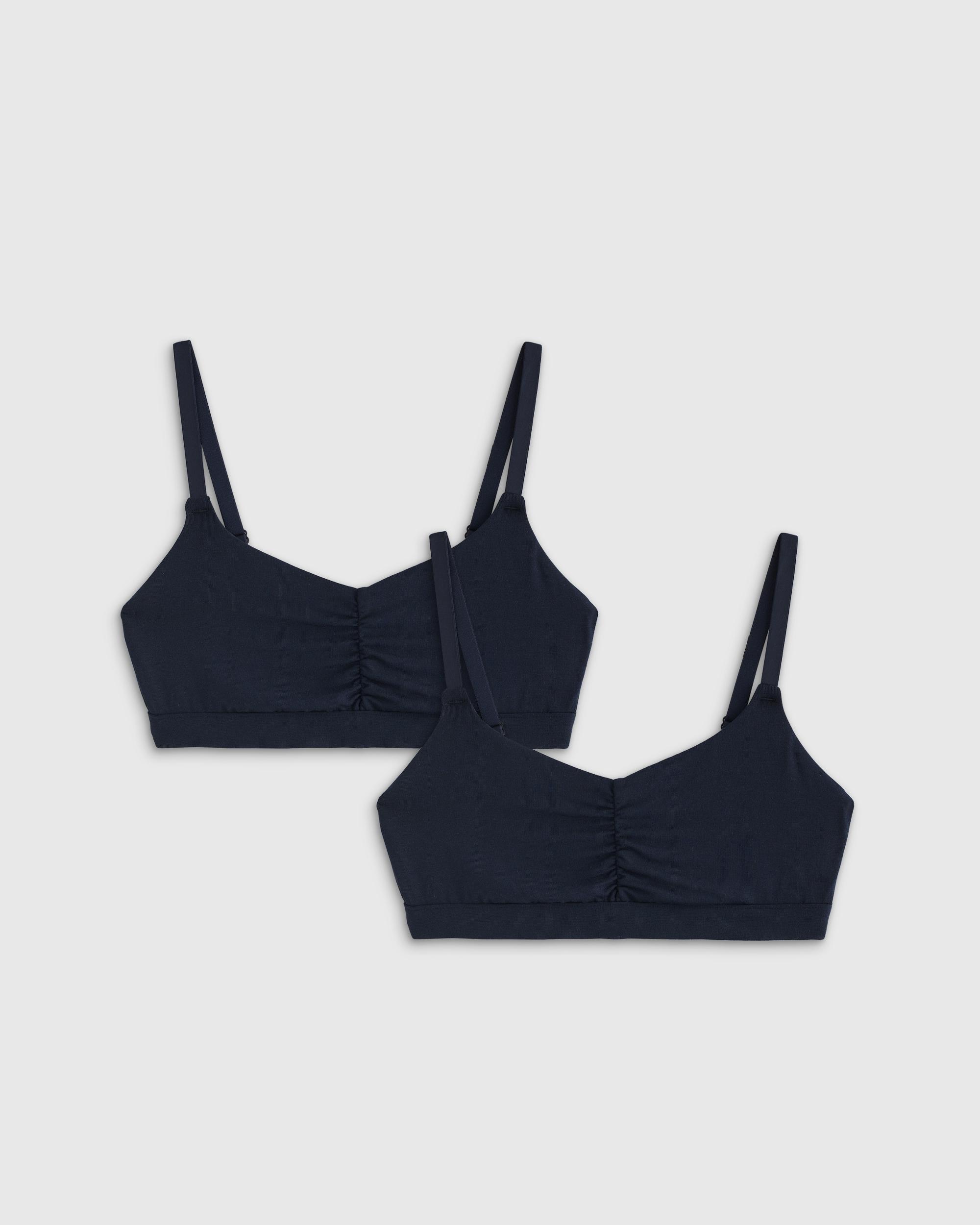 Introducing our ultra-soft Micromodal Ruched Bralette, the perfect addition to your intimates wardrobe. Made from the highest-quality micromodal fabric, this bralette is incredibly lightweight and breathable, ensuring maximum comfort throughout the day. With thin, adjustable straps and a comfortable band, this bralette provides light support without the need for underwires or padding. Plus, the flattering ruched neckline, adjustable straps, and cross-back convertibility make it easy to get the perfect fit for your body. Make it a match with our Micromodal Thong. | Quince | Women's Micromodal Ruched Bralette in Navy, Size XL