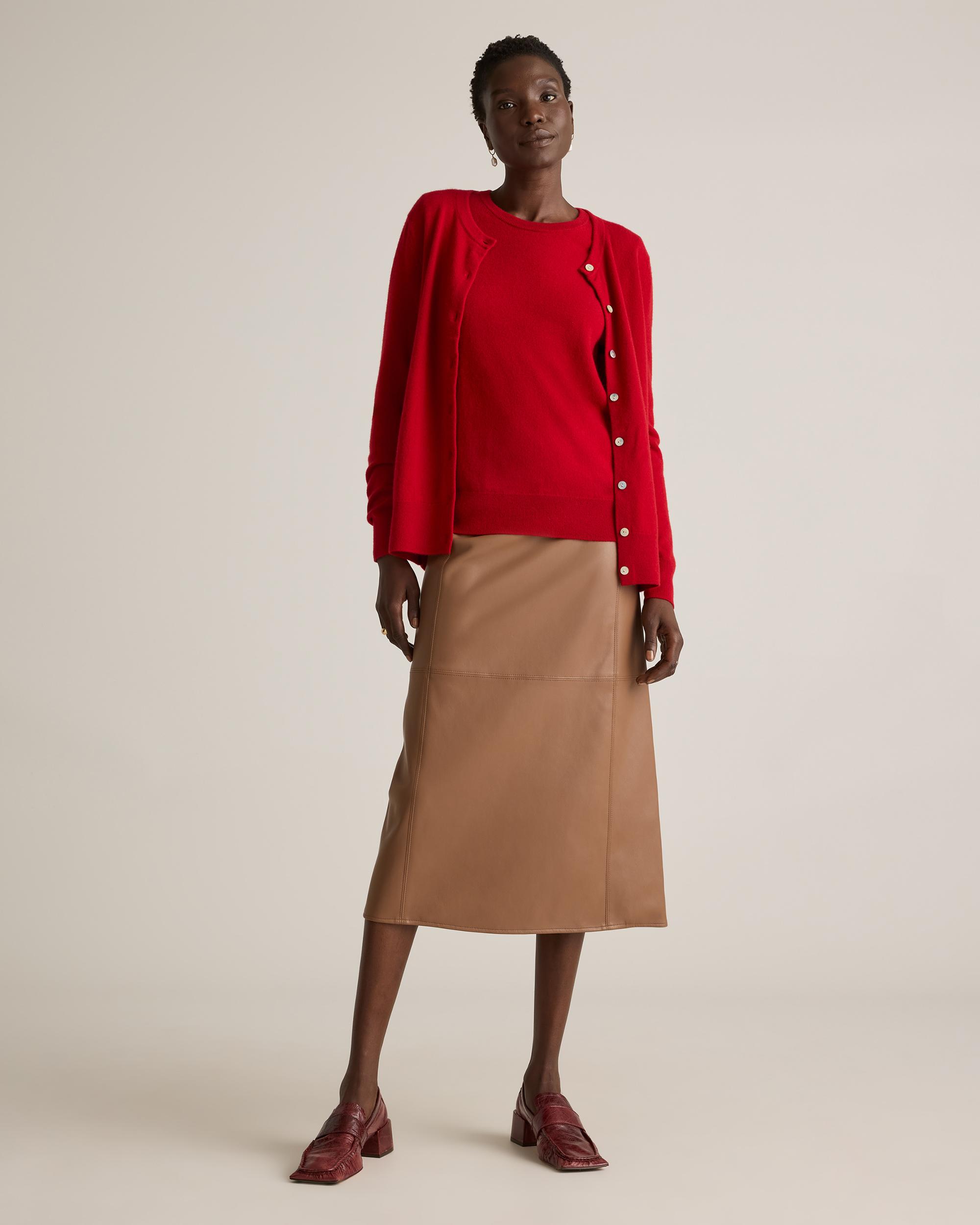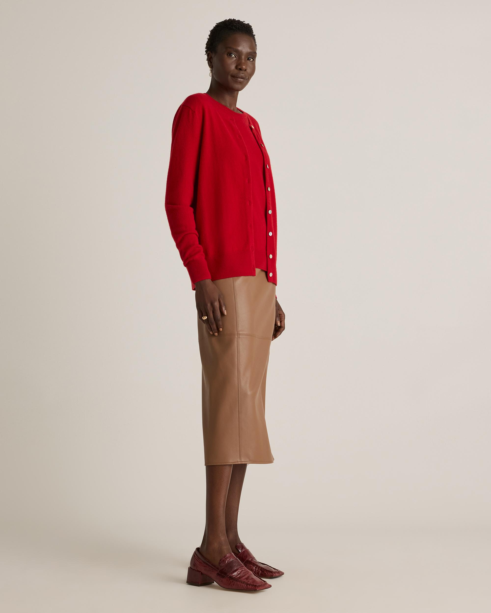 Meet your summer layering MVP. This slim, cropped cashmere cardigan is lightweight yet cozy. Perfect for cool evenings or AC-chilled office days. Wear it buttoned up as a top with high-rise shorts, or throw it over a sundress when the temps dip. Crafted from our signature Grade-A Mongolian cashmere, it’s naturally breathable, impossibly soft, and made to last through the seasons. Read more on what makes it special in our Cashmere 101. | Quince | Women's Mongolian Cashmere Cardigan Sweater in Varsity Red, Size XS
