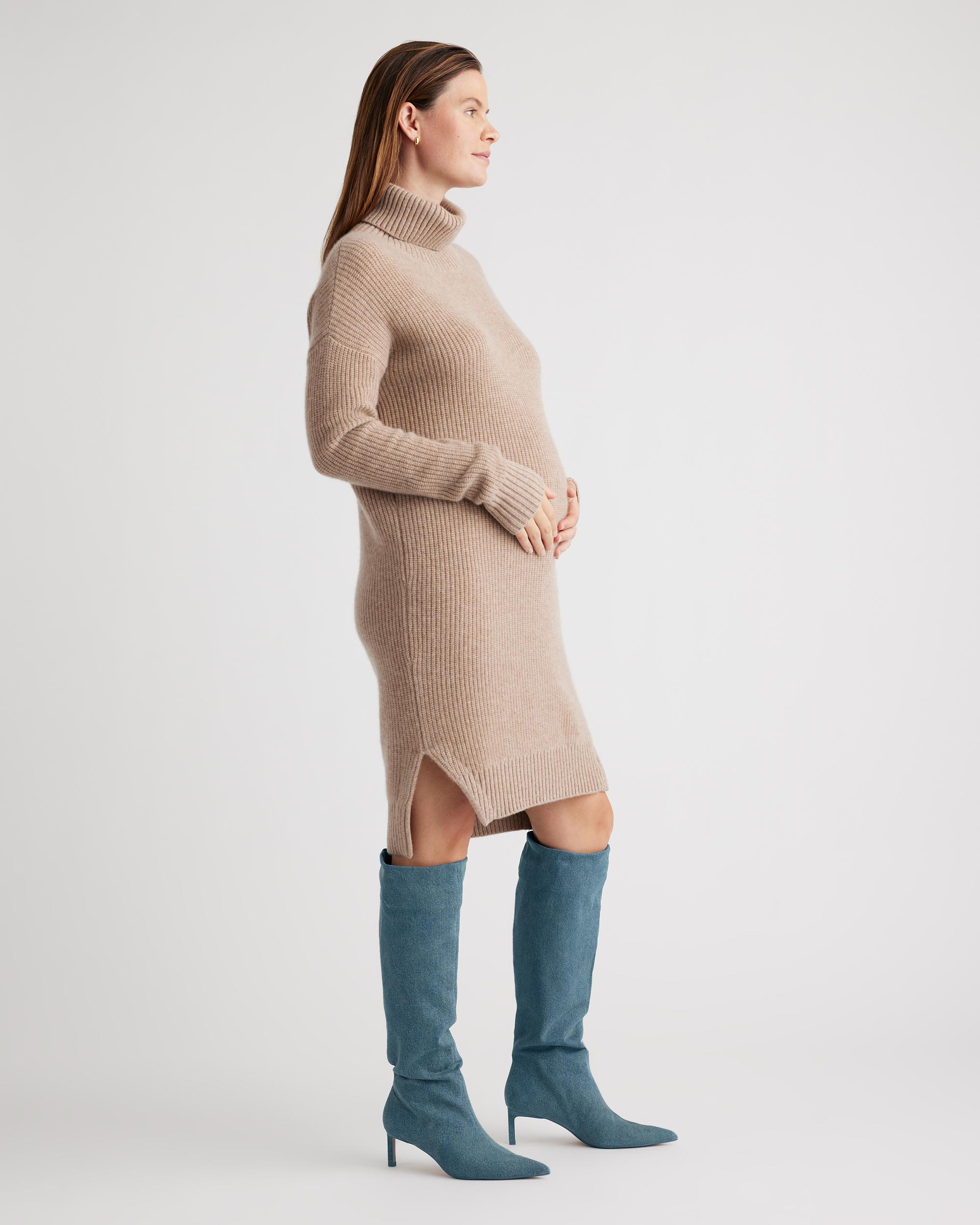 Keep it comfy and stylish with our Mongolian Cashmere Fisherman Maternity Sweater Dress. This turtleneck dress is your go-to for cozying up during your nine months. Made from premium Mongolian cashmere, it's a timeless look and a must-have addition to your maternity wardrobe. Our cashmere is incredibly long-lasting and three times as warm as wool, sourced more sustainably and ethically. Read more on what makes it special in our Cashmere 101. | Quince | Women's Mongolian Cashmere Fisherman Maternity Sweater Dress in Oatmeal, Size Large