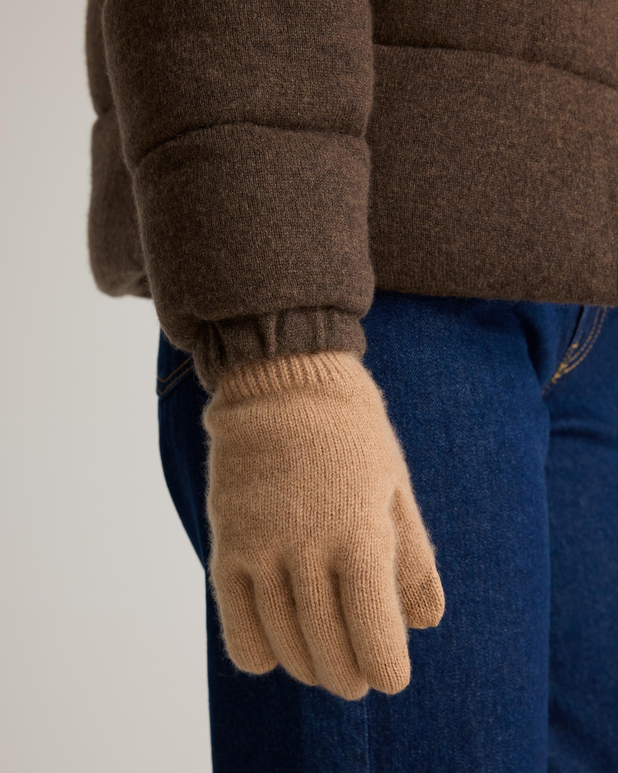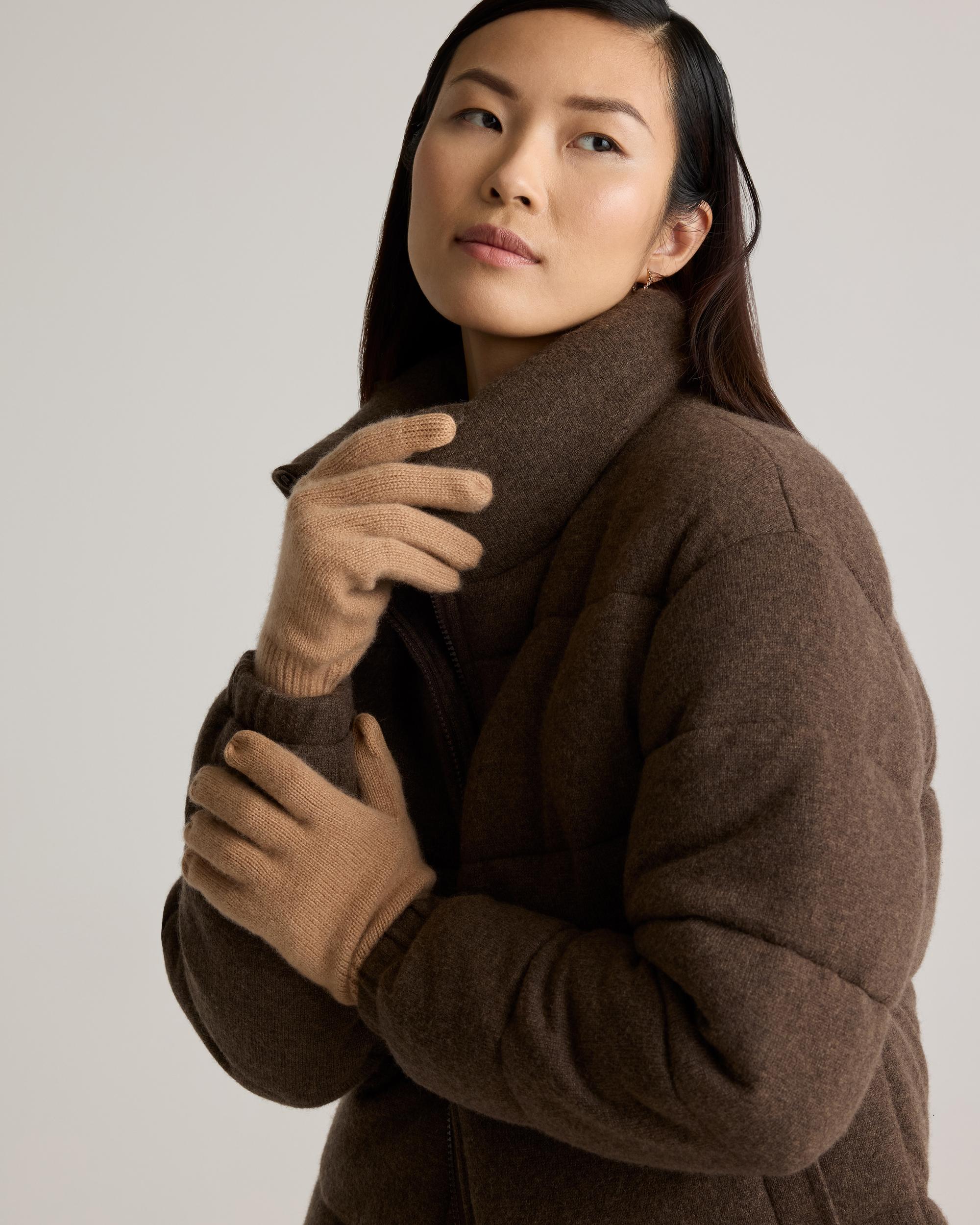 Treat your hands right with our Mongolian cashmere gloves. They have a long cuff for extra coziness, breathable and soft. Our quality cashmere is incredibly long-lasting and three times as warm as wool, sourced sustainably and ethically. Read more on what makes it special in our Cashmere 101. | Quince | Women's Mongolian Cashmere Gloves in Camel