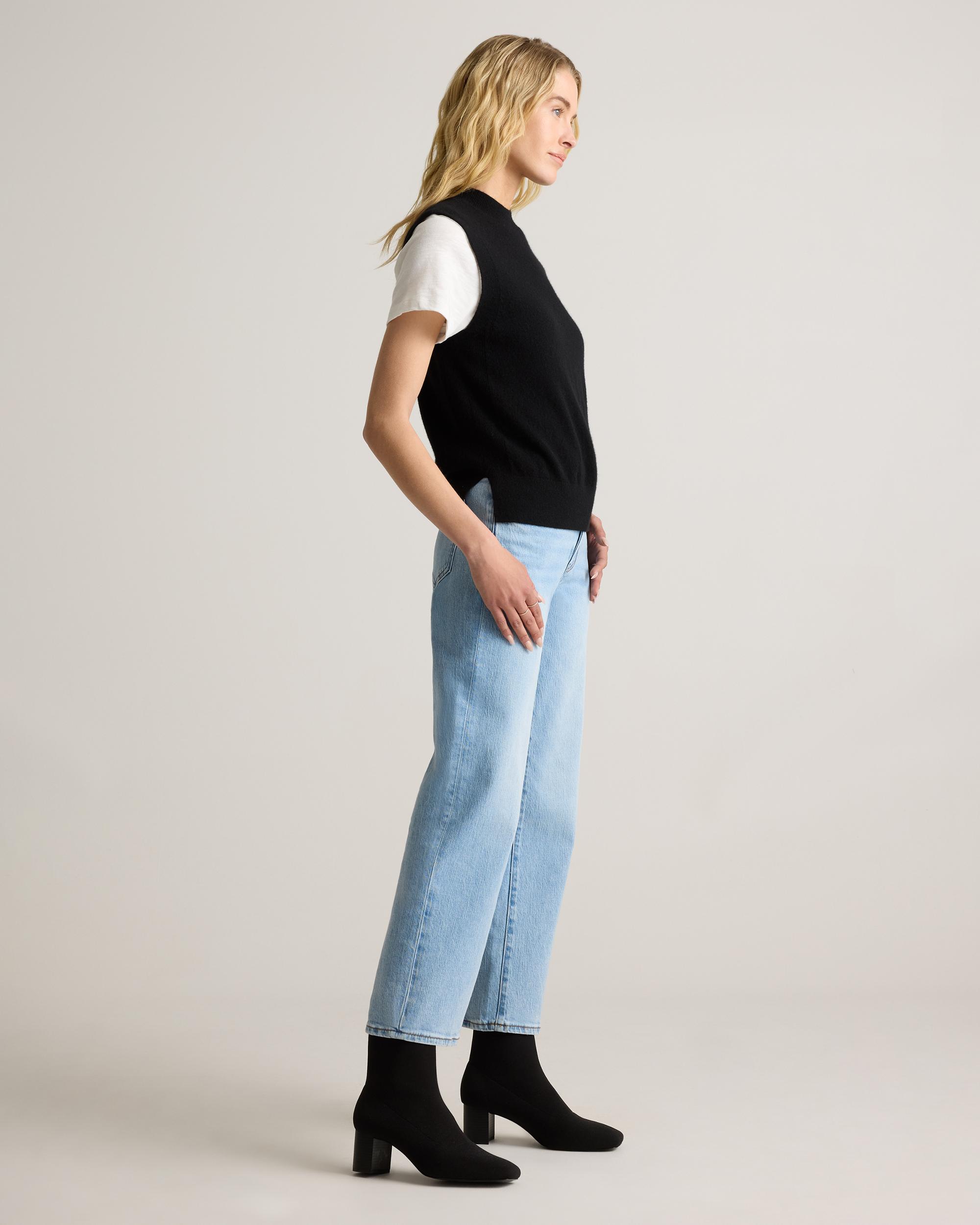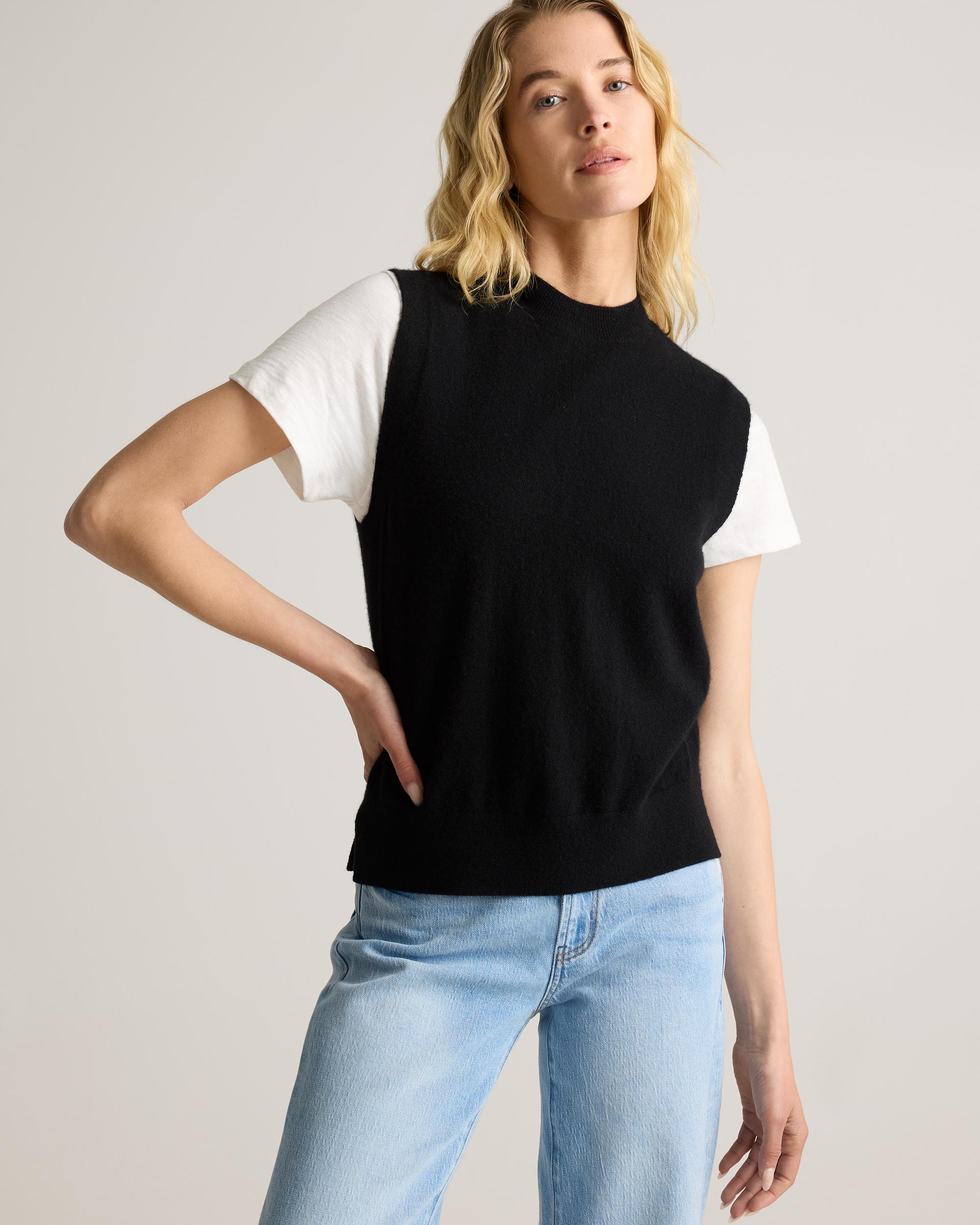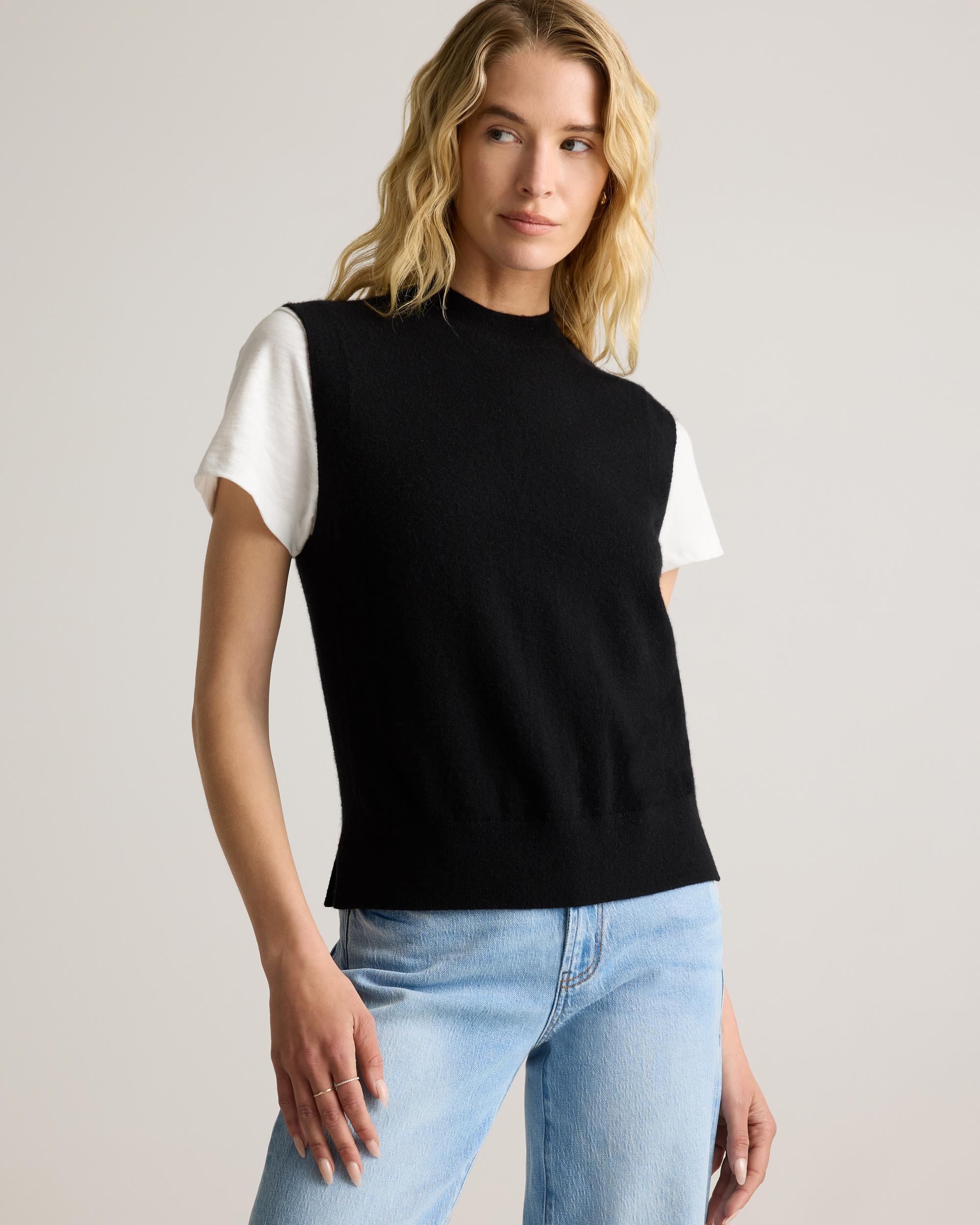 A luxe layer to wear now and later, our Mongolian Cashmere Mock Neck Sweater Vest is the sleeveless multitasker your wardrobe has been missing. We've upgraded it to be smoother, cozier, and more substantial than ever, with less pilling. Crafted in Grade-A cashmere sourced from Mongolia, this fine-gauge knit is lightweight enough to wear on its own but can be layered over a shirt and under a cardigan or jacket too. Soft and breathable, it's an essential for any season. | Quince | Women's Mongolian Cashmere Mock Neck Sweater Vest in Black, Size Small