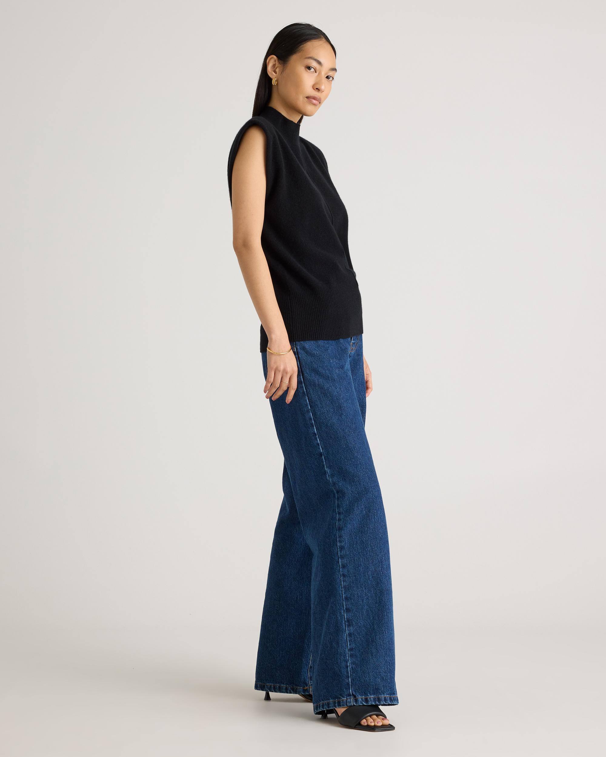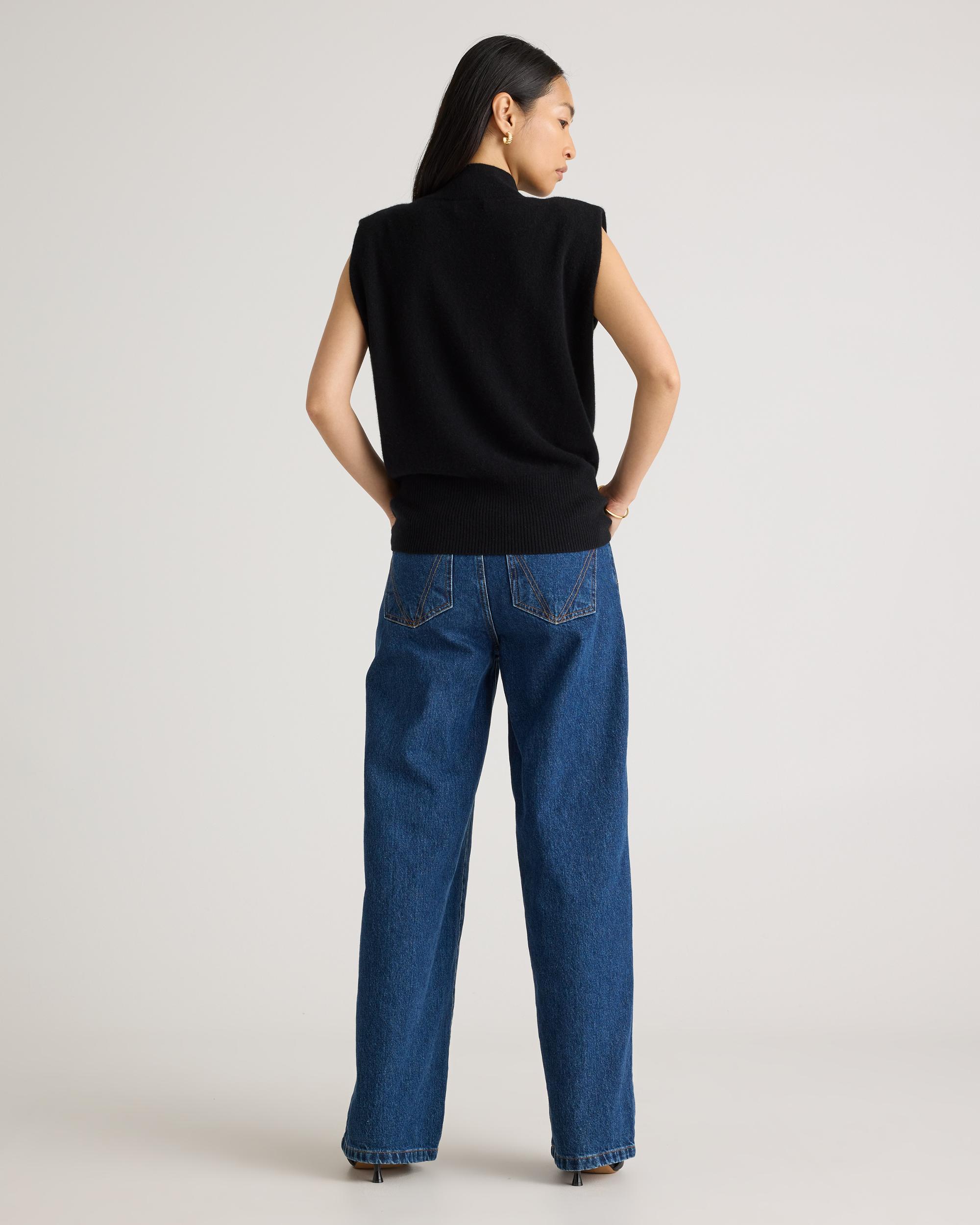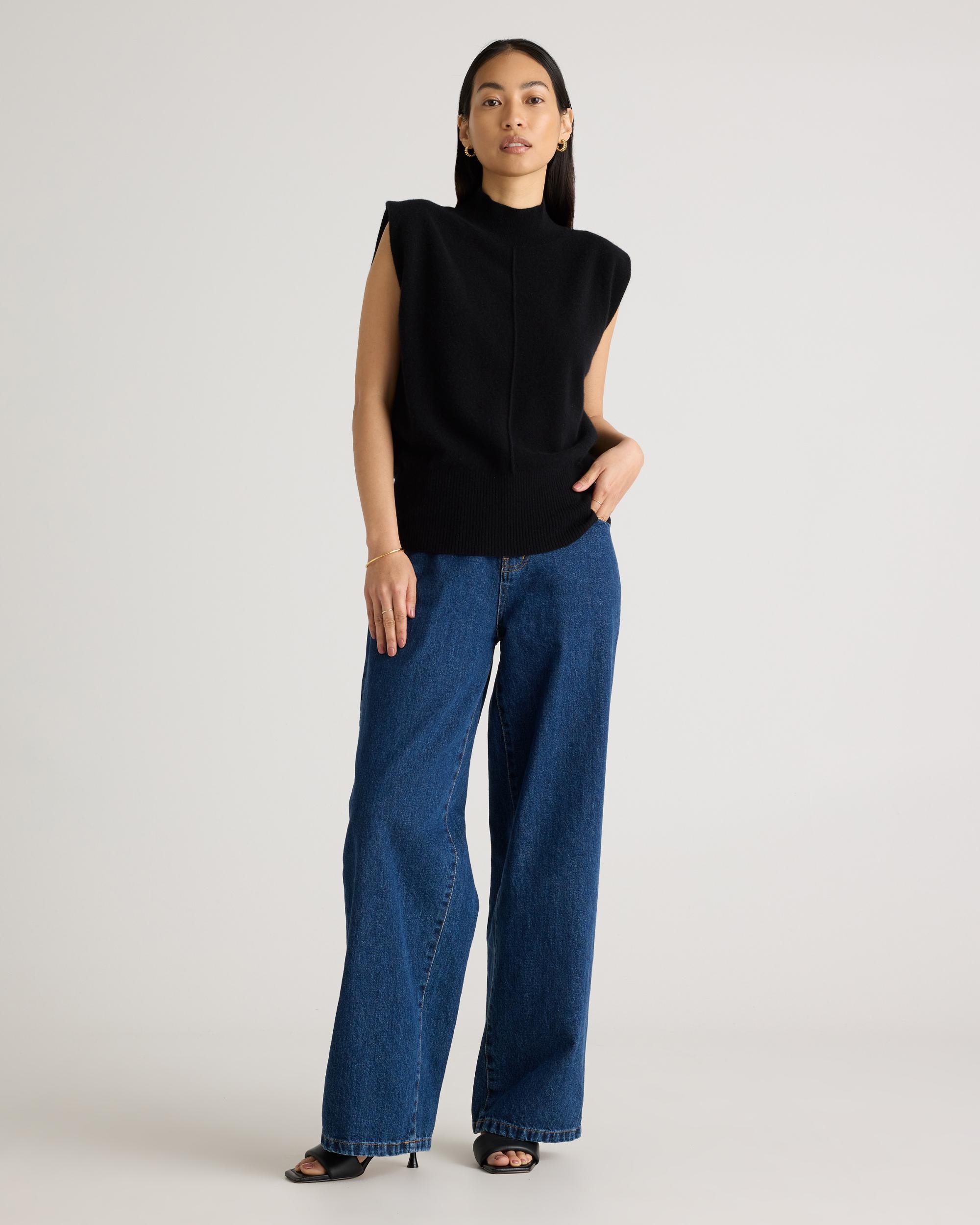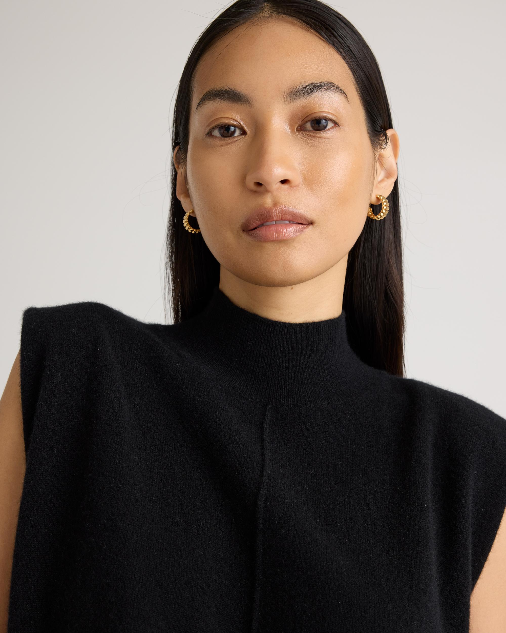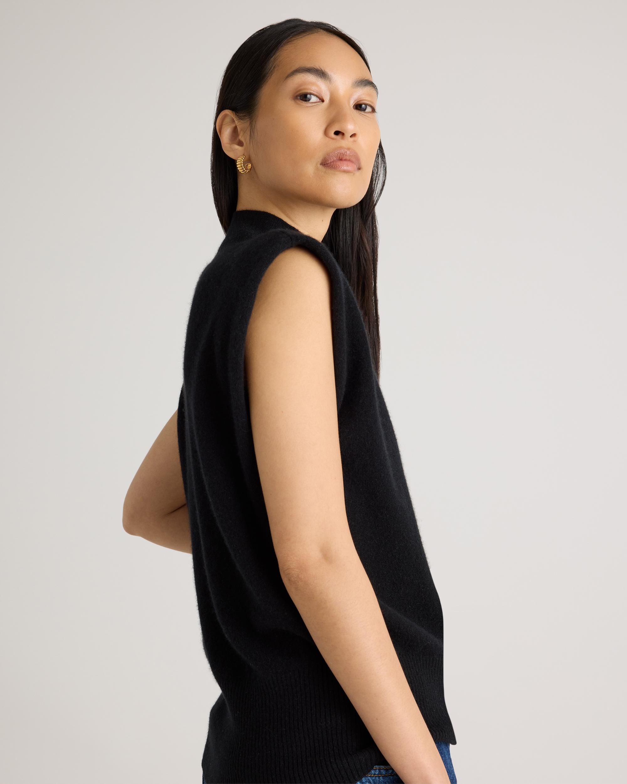 Chic and cozy with a side of structure. Our Mongolian Cashmere Padded-Shoulder Sweater Tank is the luxe base layer that levels up any outfit. Lightly padded shoulders add subtle definition and length to your silhouette, with an elevated style you’ll turn to again and again. Made from our super soft, super famous Grade-A Mongolian cashmere. | Quince | Women's Mongolian Cashmere Padded-Shoulder Sweater Tank Top in Black, Size XL