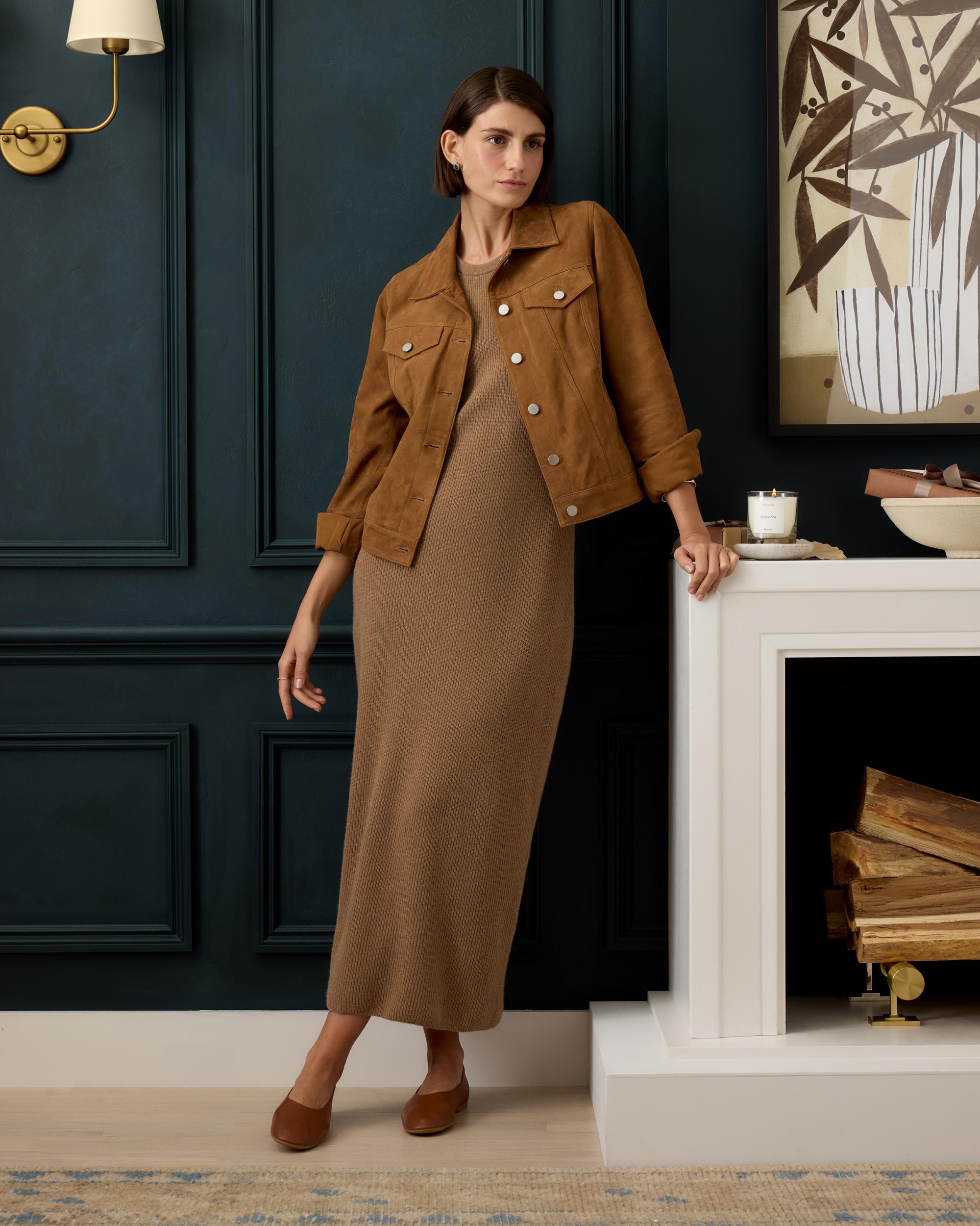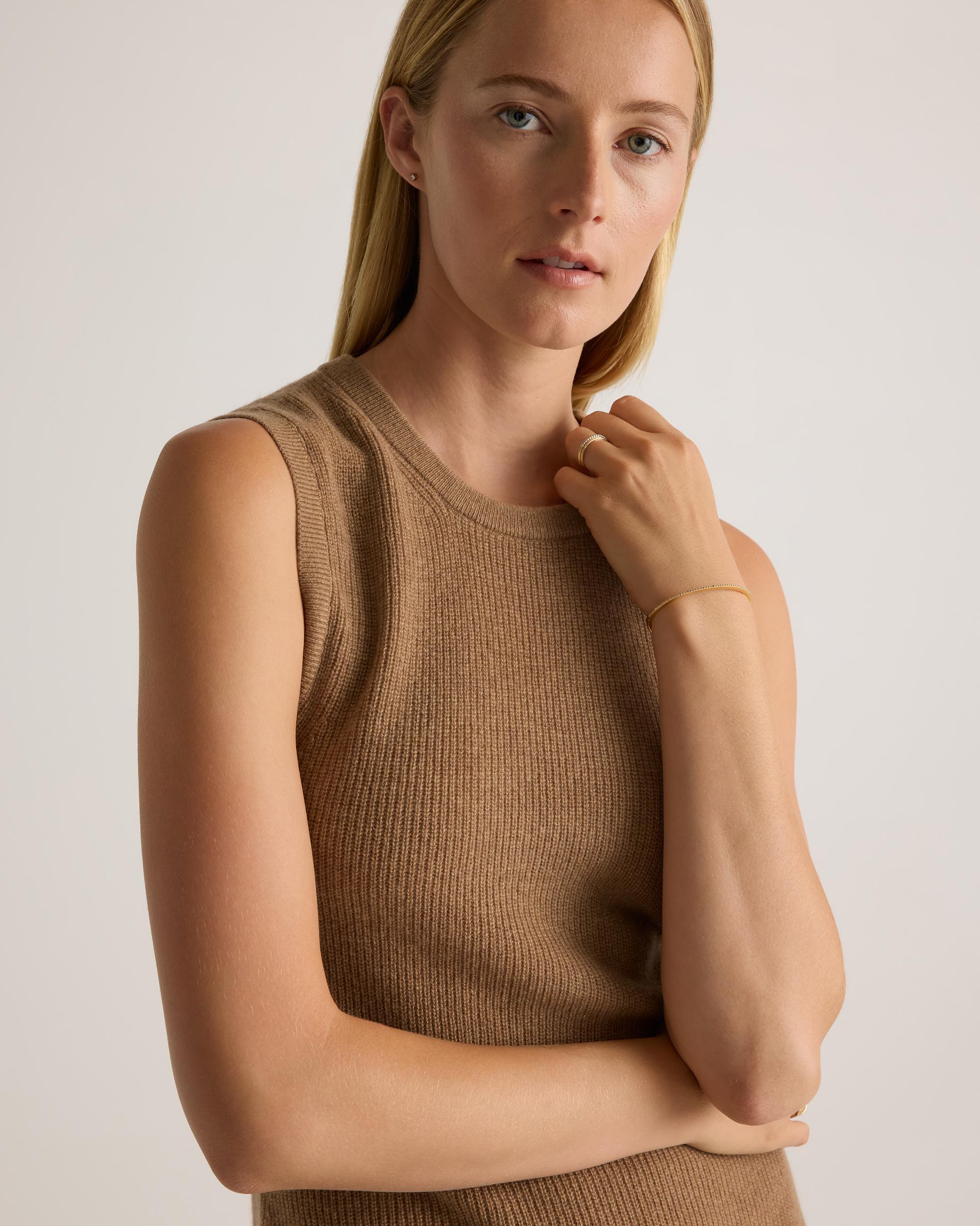 A three-season wardrobe workhorse, our Mongolian Cashmere Sleeveless Midi Sweater Dress can be worn on its own, over a turtleneck or tee, and under a jacket. We've upgraded it to be smoother, cozier, and more substantial than ever, with less pilling. Crafted from fine-gauge cashmere, it feels incredibly soft and warm against your skin. The midi length looks chic with everything from boots to flats, while the crew neckline works for a variety of occasions and styles. | Quince | Women's Mongolian Cashmere Sleeveless Midi Sweater Dress in Teak Brown, Size Small