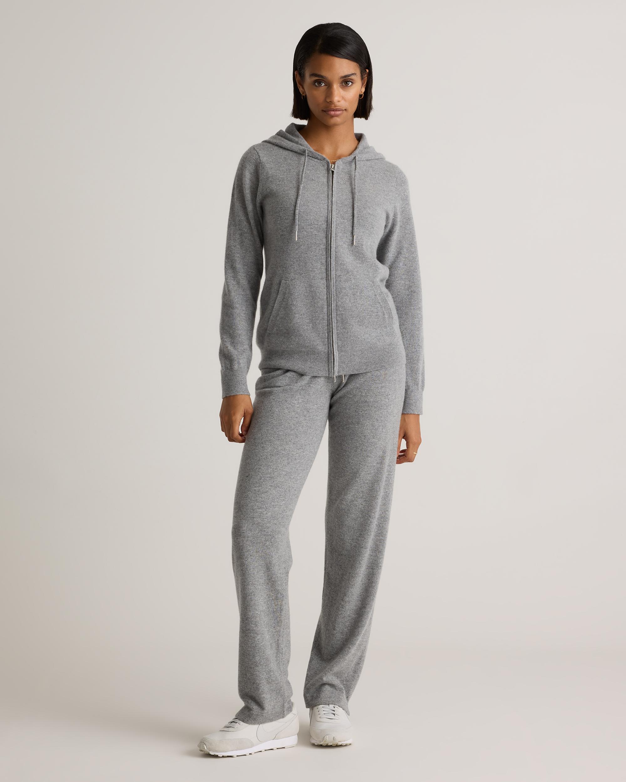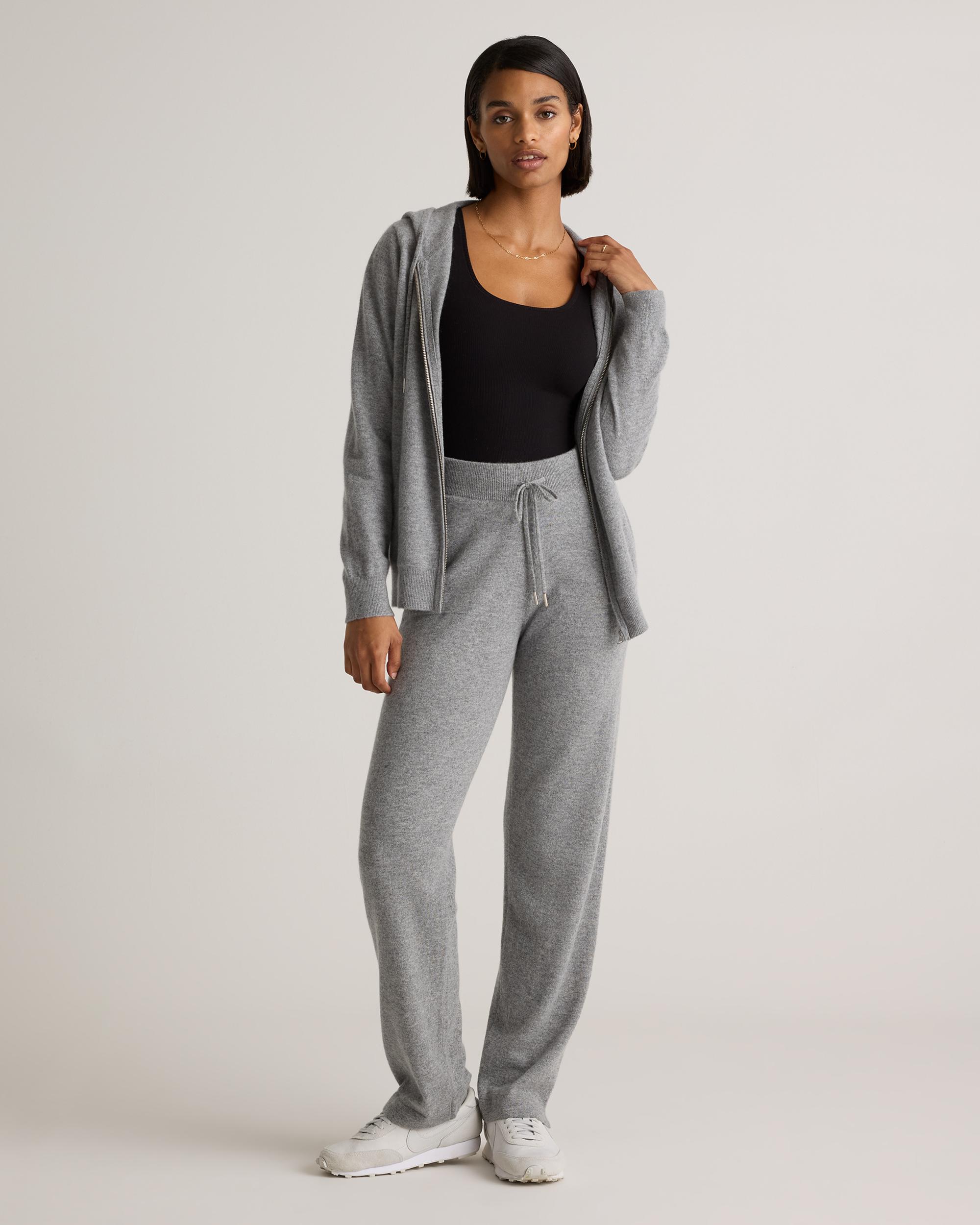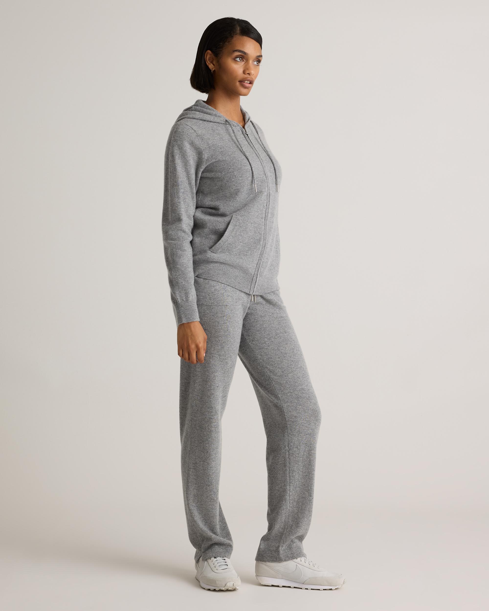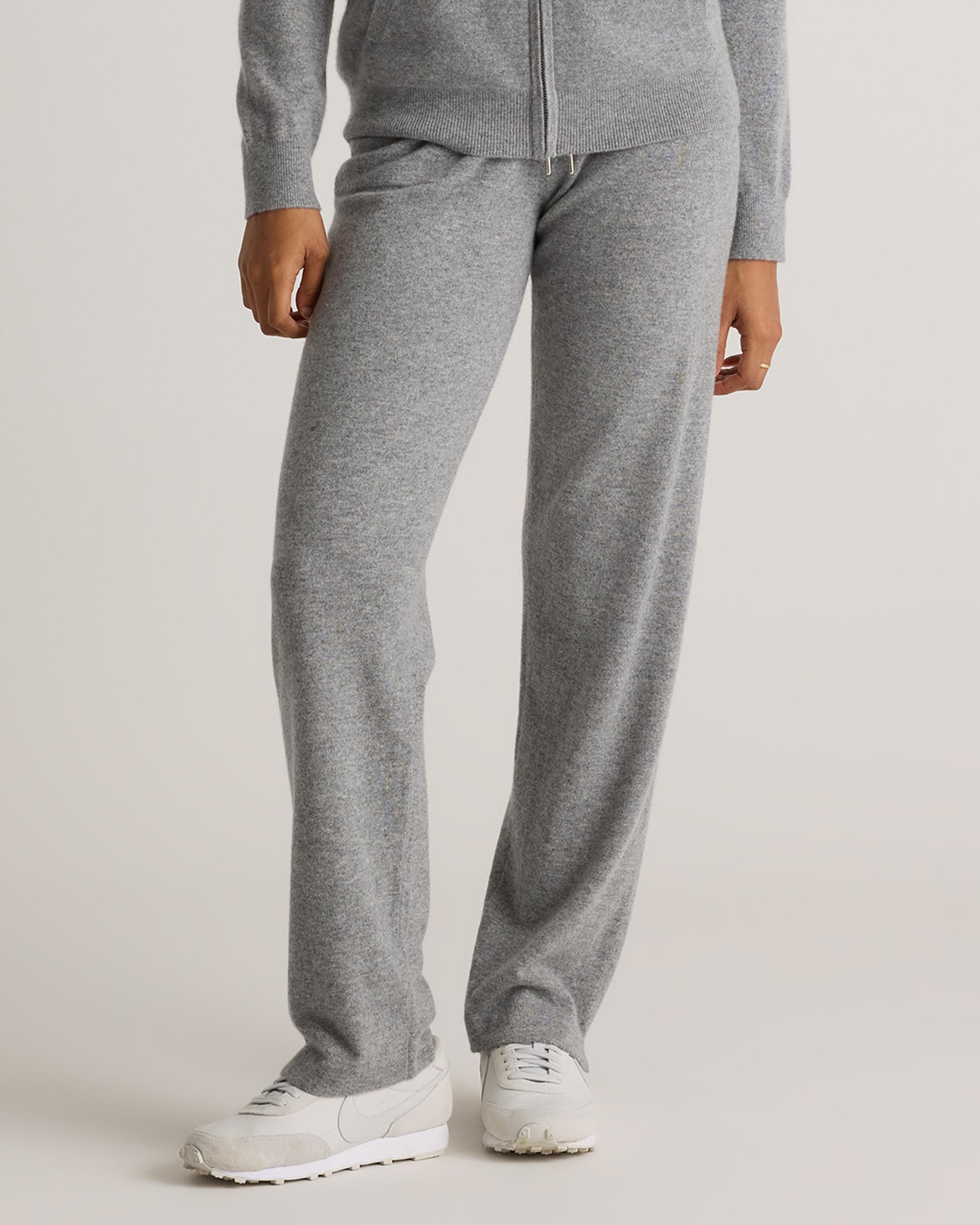Our luxuriously lightweight cashmere collection is a best-seller for a reason. We've upgraded it to be smoother, cozier, and more substantial than ever, with less pilling. Made from 100% Grade A Mongolian cashmere, these premium straight leg pants are available at a radically low price. Soft, cozy, affordable cashmere is not too good to be true. P.S. Pair them with our Cashmere Full-Zip Hoodie for the ultimate cashmere sweatsuit. | Quince | Women's Mongolian Cashmere Straight Leg Pants in Heather Grey, Size Large