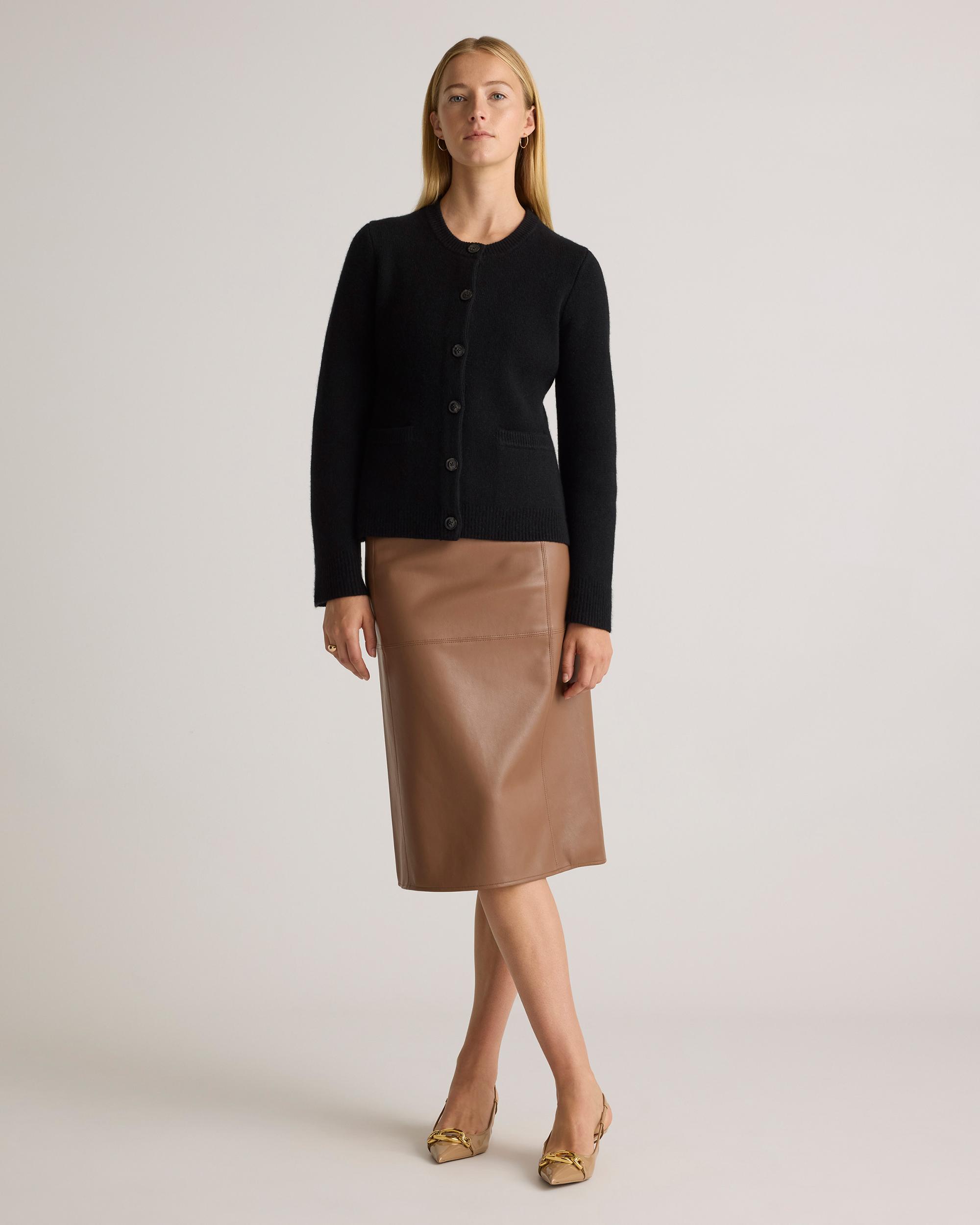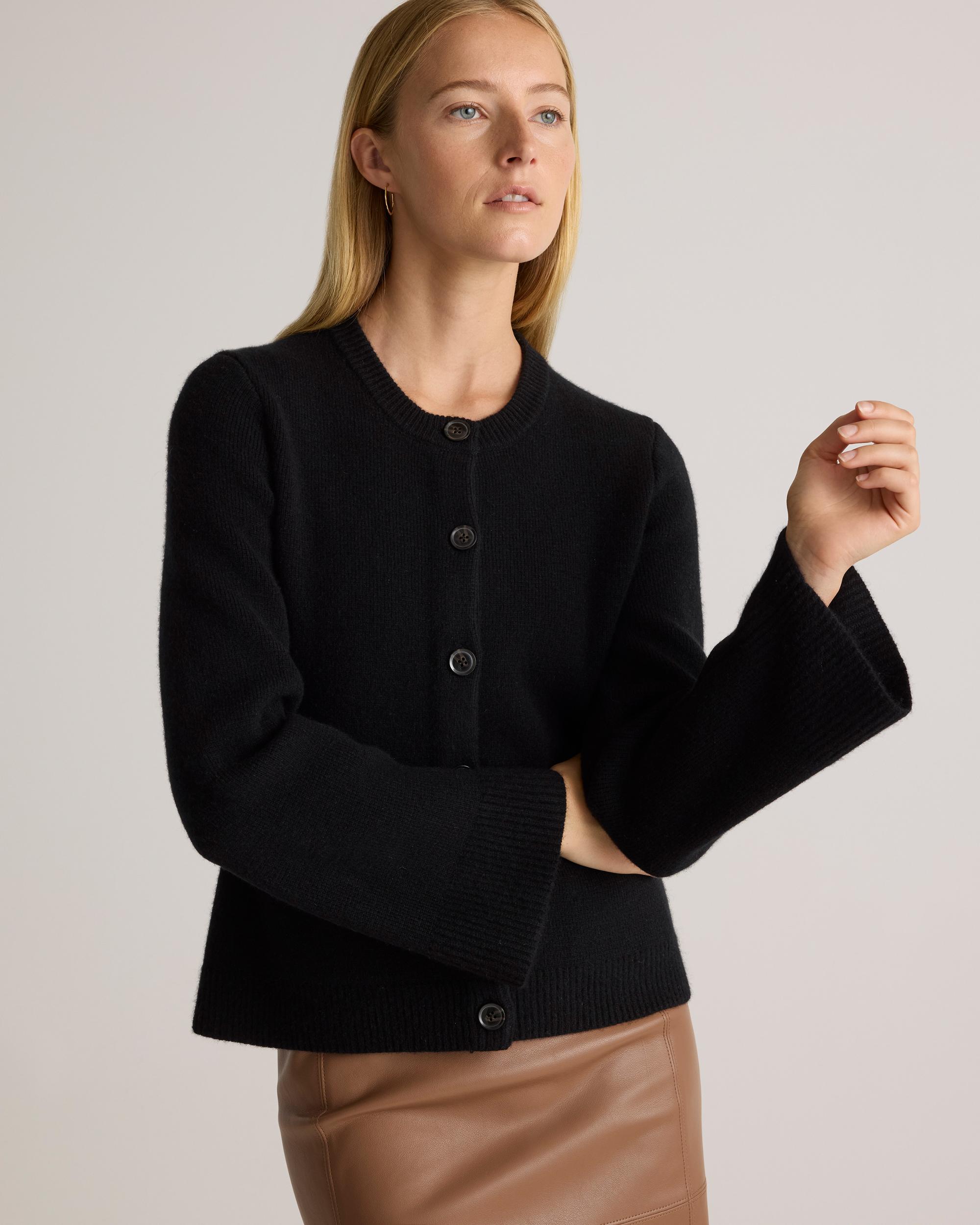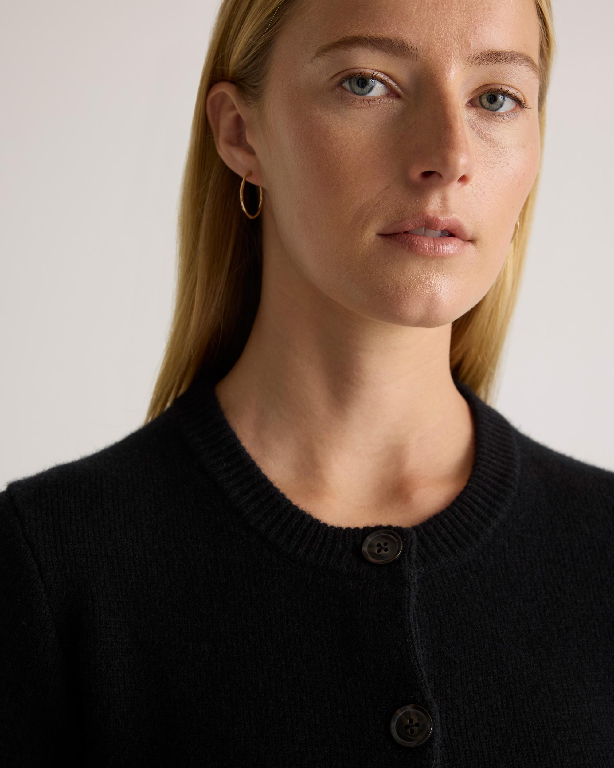 Polished meets practical. The Mongolian Cashmere Structured Cardigan offers just enough warmth for spring’s fluctuating temps - while staying breathable and lightweight. The tailored silhouette makes it easy to dress up for dinner or layer casually over a tee and trousers. A refined go-to for transitional days when you want to look put together without trying too hard. Read more on what makes it special in our Cashmere 101. | Quince | Women's Mongolian Cashmere Structured Cardigan Sweater in Black, Size Small