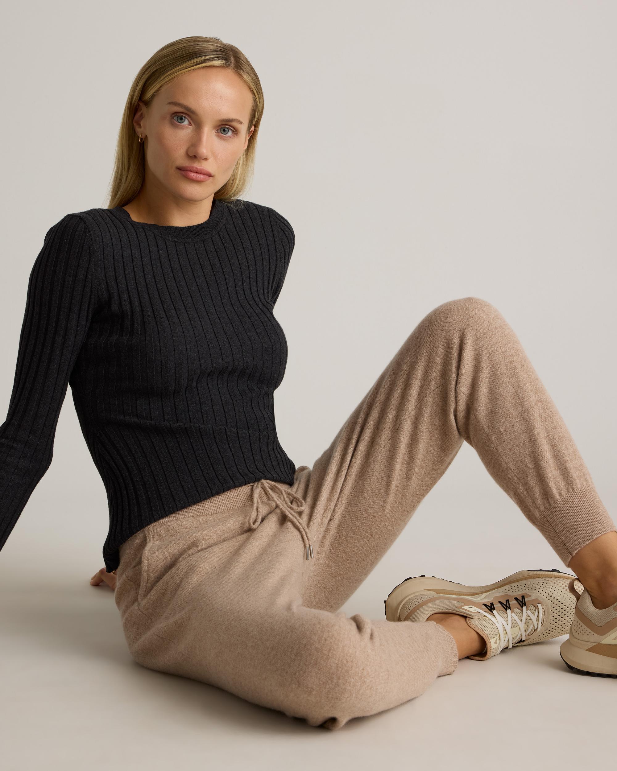 Oh, so you want to feel luxurious when you lounge? Us too. So we upgraded our sweatpants to cashmere. They have cuffed ankles for cute looks, and side pockets for stashing your goods. Pair them with our Cashmere Full-Zip Hoodie for the ultimate cashmere sweatsuit. We've upgraded it to be smoother, cozier, and more substantial than ever, with less pilling. Crafted with a denser, more substantial knit, our Signature cashmere offers unmatched warmth and softness for cooler weather. Designed to last and feels smoother and richer with every wear. Read more on what makes it special in our Cashmere 101. | Quince | Women's Mongolian Cashmere Sweatpants in Oatmeal, Size Small