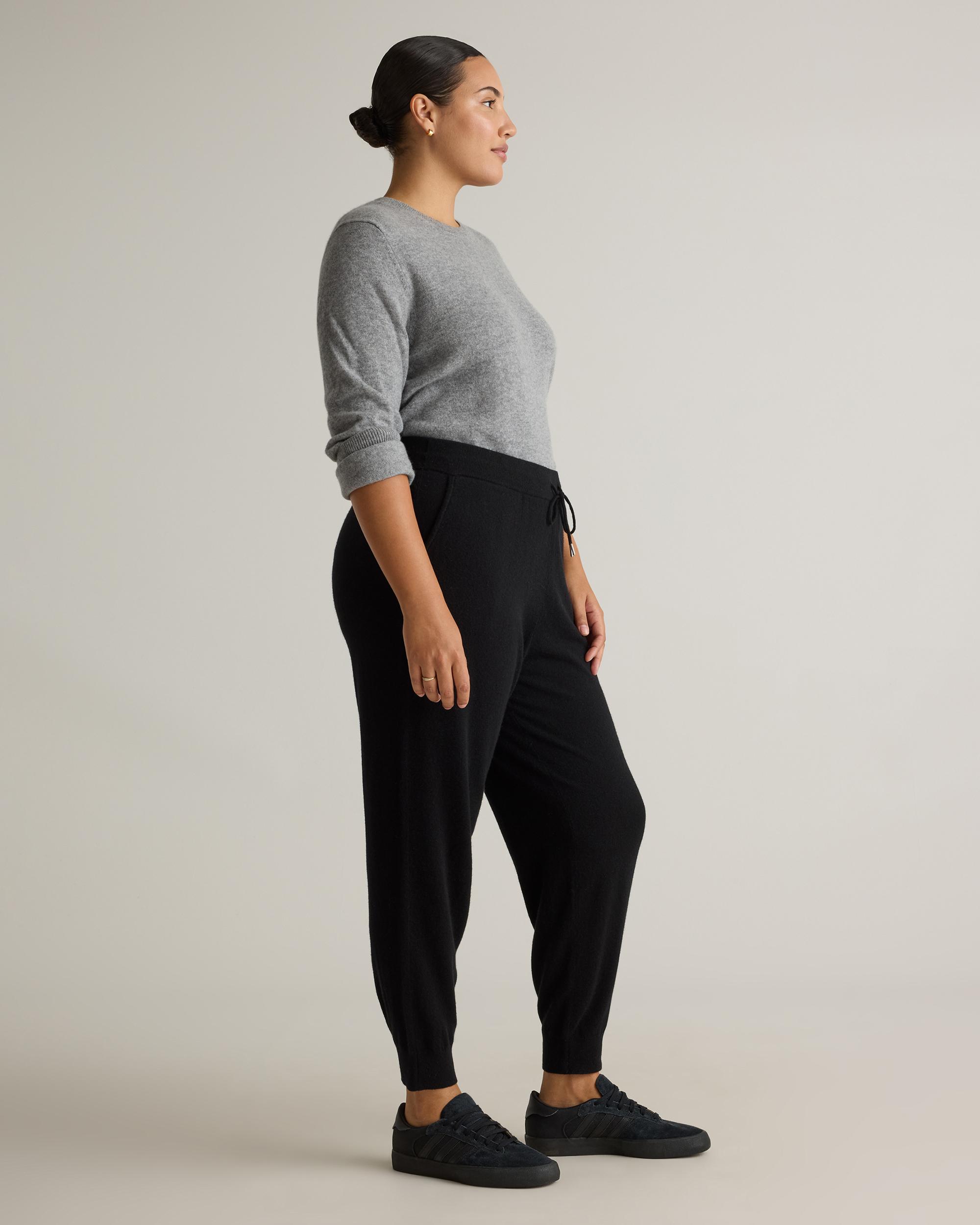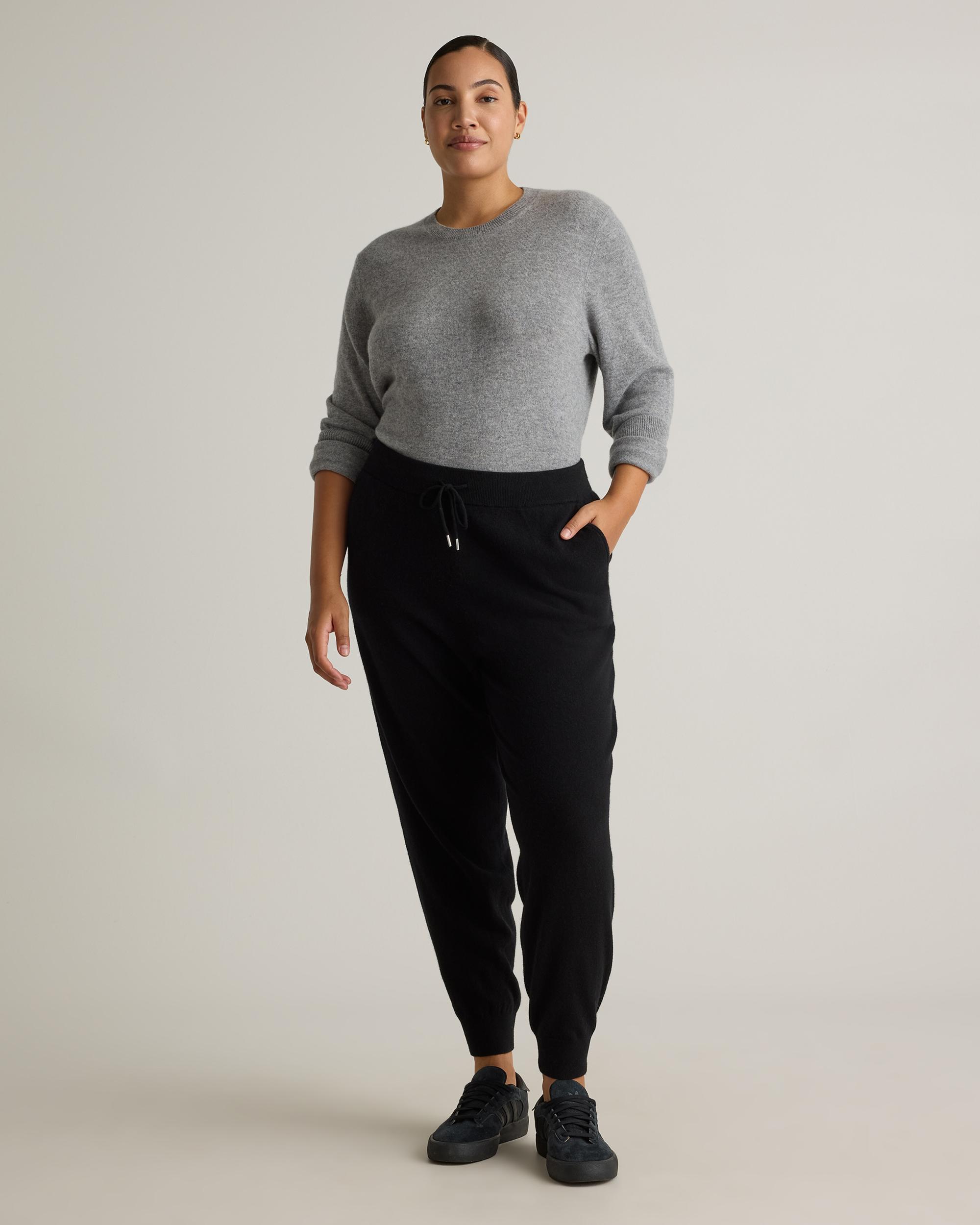 Oh, so you want to feel luxurious when you lounge? Us too. So we upgraded our sweatpants to cashmere. They have cuffed ankles for cute looks, and side pockets for stashing your goods. Pair them with our Cashmere Full-Zip Hoodie for the ultimate cashmere sweatsuit. We've upgraded it to be smoother, cozier, and more substantial than ever, with less pilling. Crafted with a denser, more substantial knit, our Signature cashmere offers unmatched warmth and softness for cooler weather. Designed to last and feels smoother and richer with every wear. Read more on what makes it special in our Cashmere 101. | Quince | Women's Mongolian Cashmere Sweatpants in Black, Size Medium