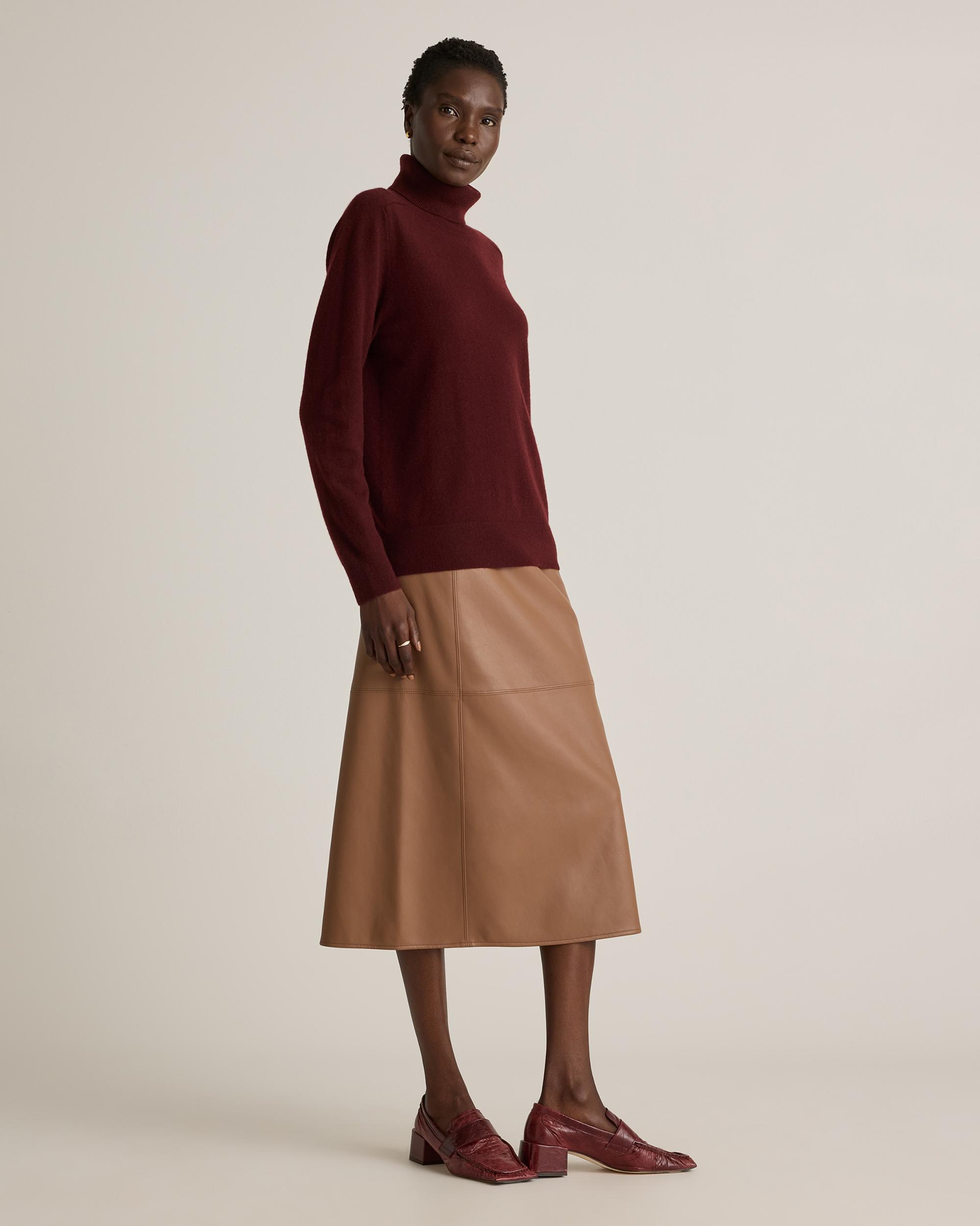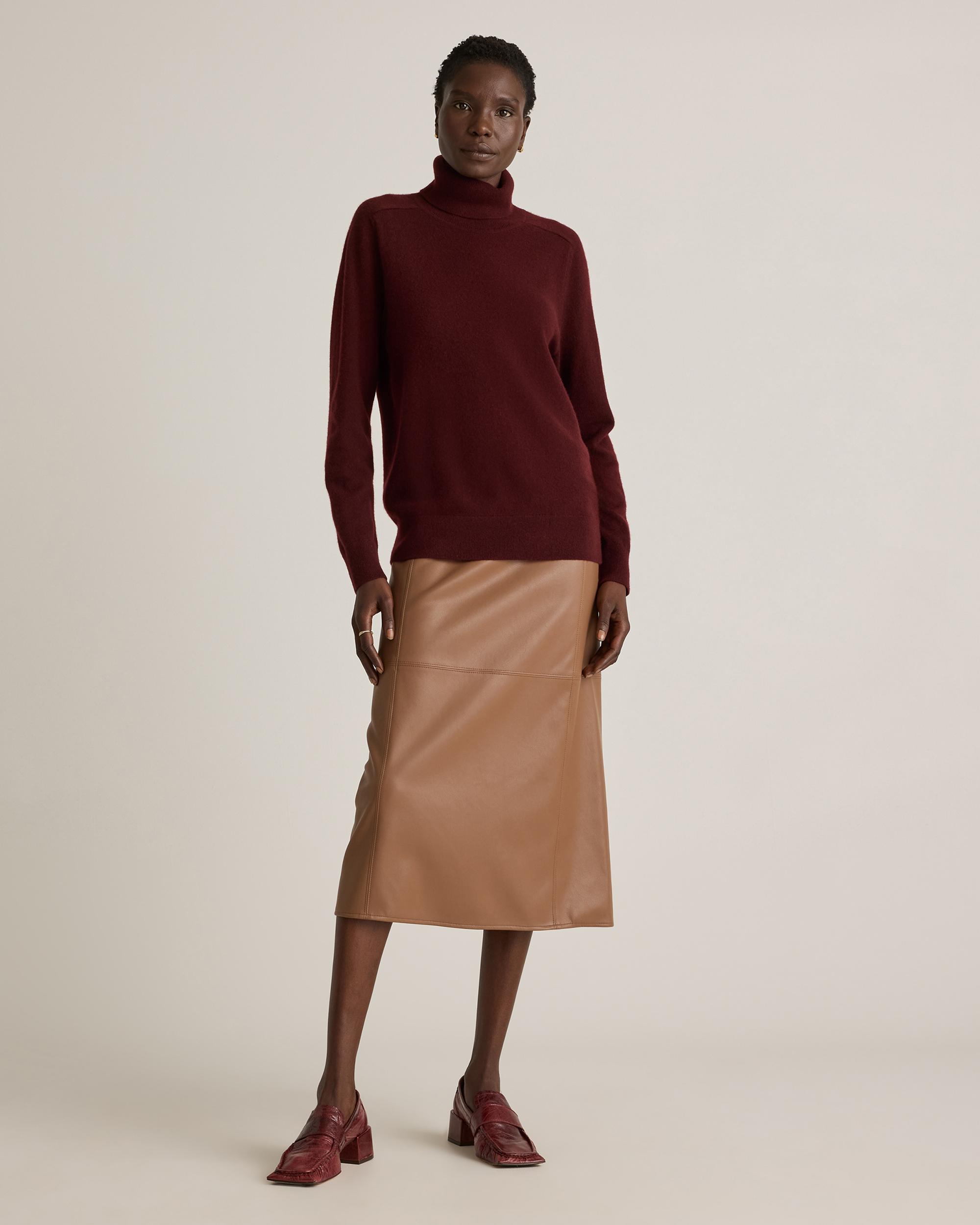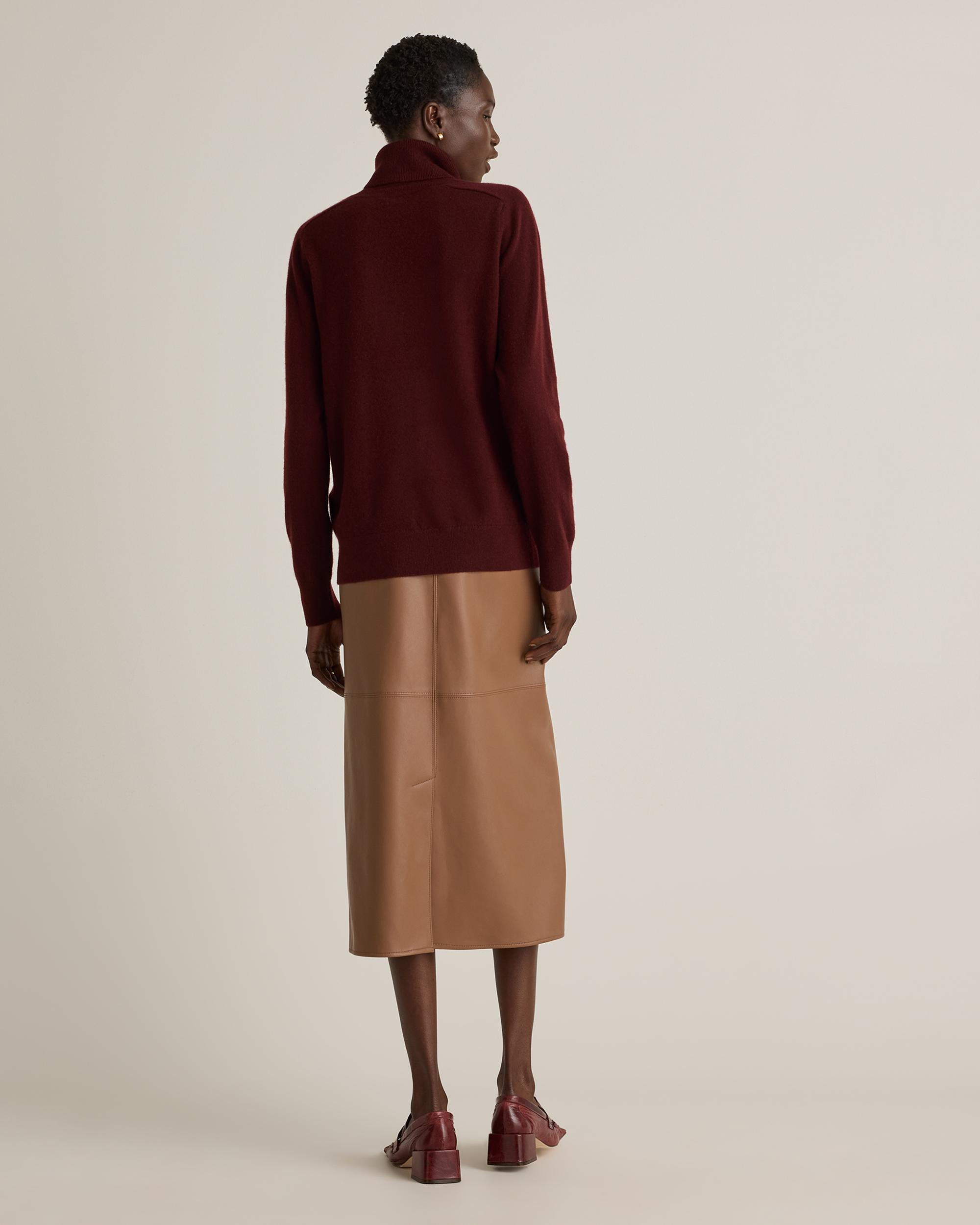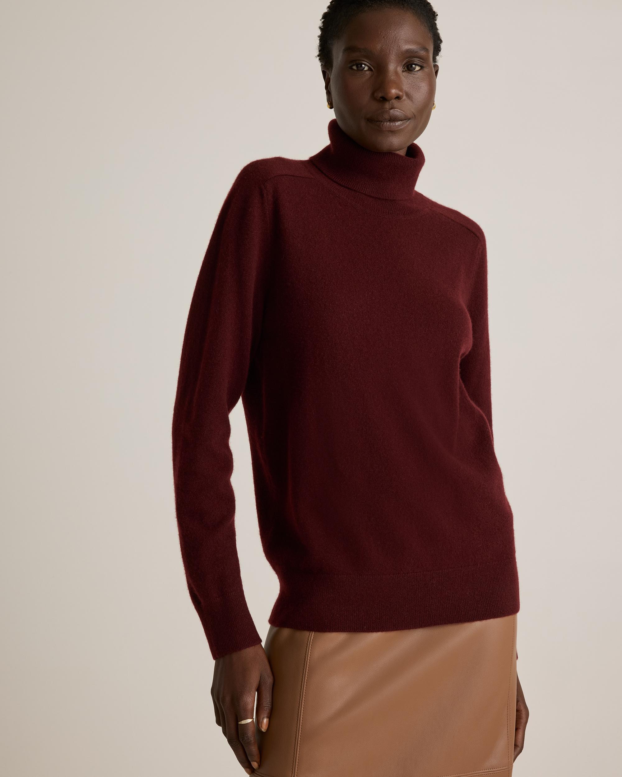 The classic cashmere turtleneck sweater. Our Mongolian cashmere turtleneck sweater has a relaxed fit but luxurious feel. It's timeless, and never goes out of style. We've upgraded it to be smoother, cozier, and more substantial than ever, with less pilling. Our quality cashmere is incredibly long-lasting and three times as warm as wool, sourced sustainably and ethically. Read more on what makes it special in our Cashmere 101. | Quince | Women's Mongolian Cashmere Turtleneck Sweater in Rich Burgundy, Size XL