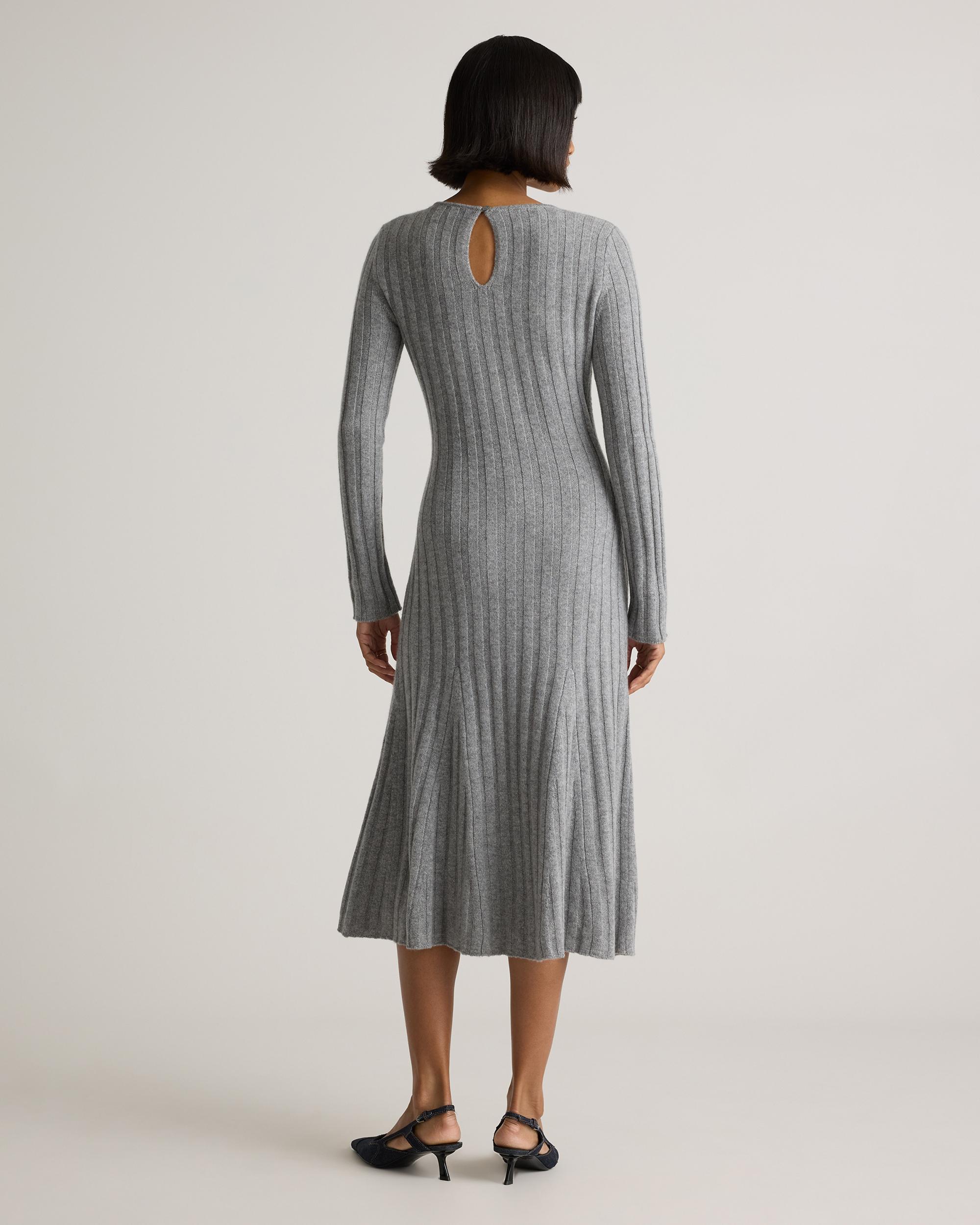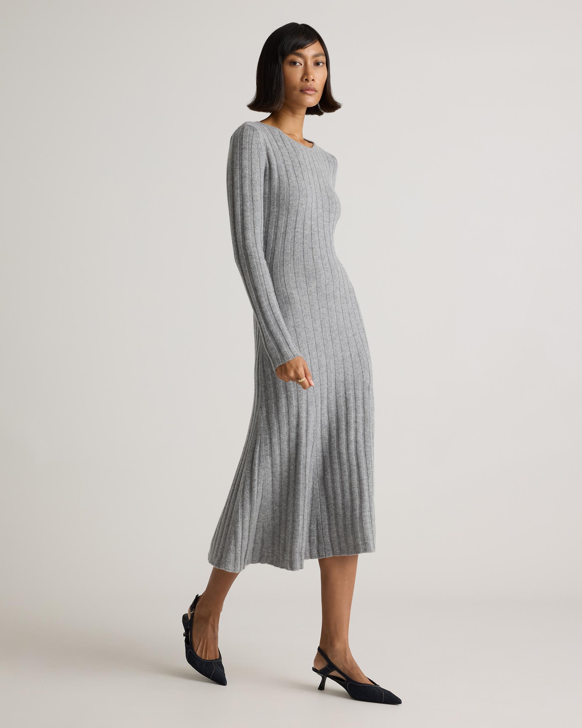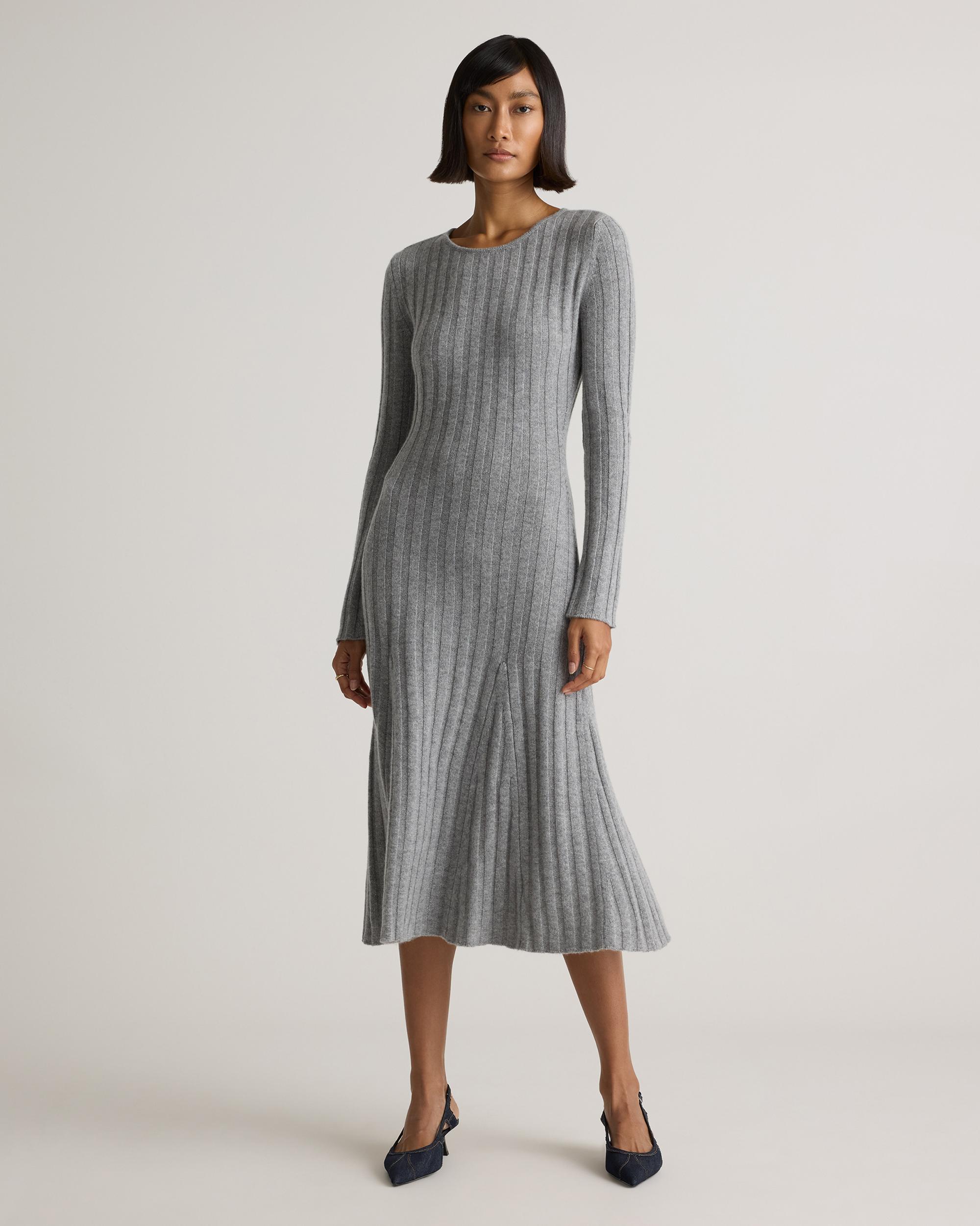 Our Mongolian Cashmere Wide-Rib Midi Dress feels as good as it looks. The wide-rib knit pattern adds depth and texture to the silhouette, while the fitted design flatters your figure in all the right places. Ideal for layering or wearing on its own, this cashmere dress pairs beautifully with boots, heels, or sneakers for a versatile look that can be styled up or down with ease. Read more on what makes it special in our Cashmere 101. | Quince | Women's Mongolian Cashmere Wide-Rib Midi Dress in Heather Grey, Size XL