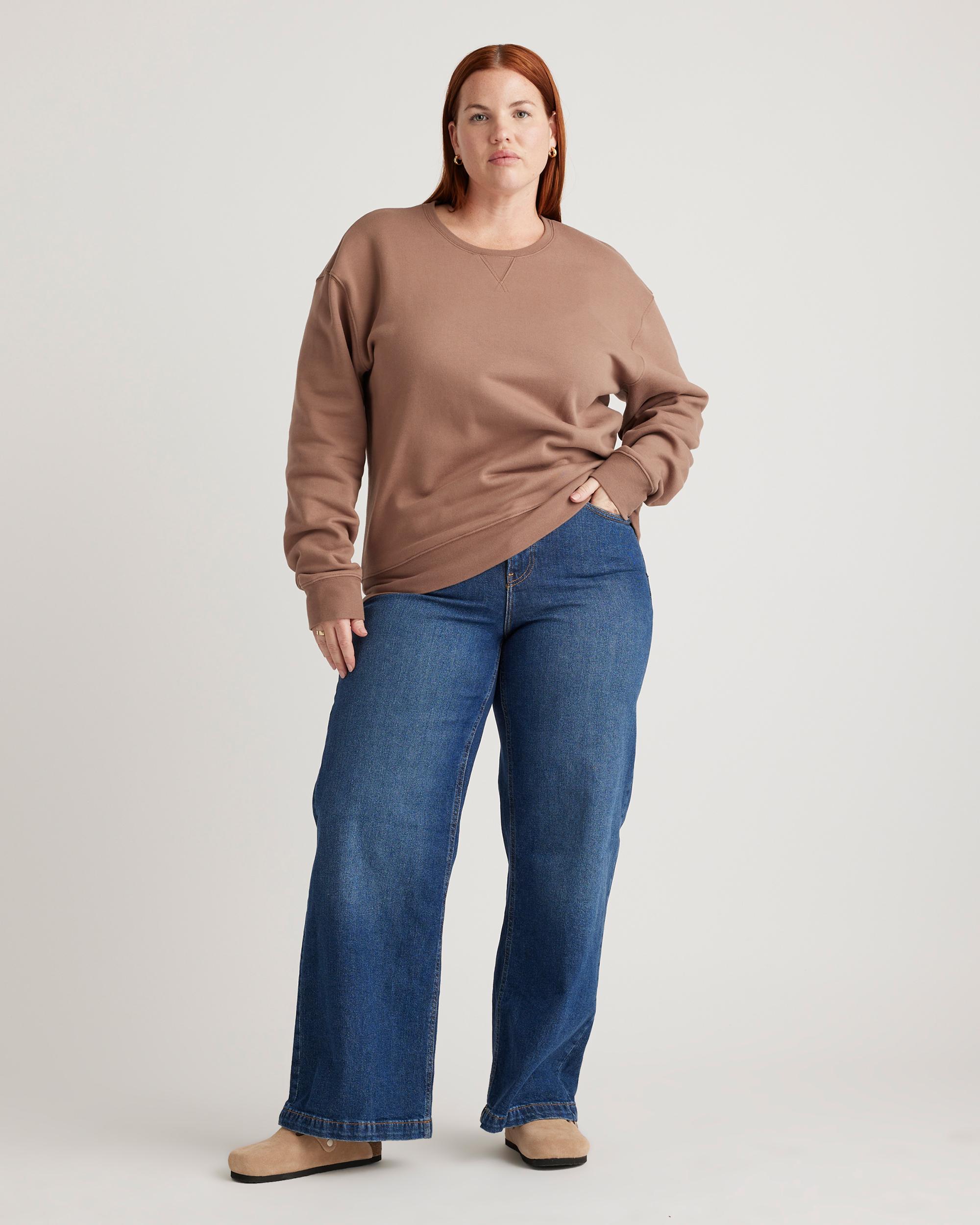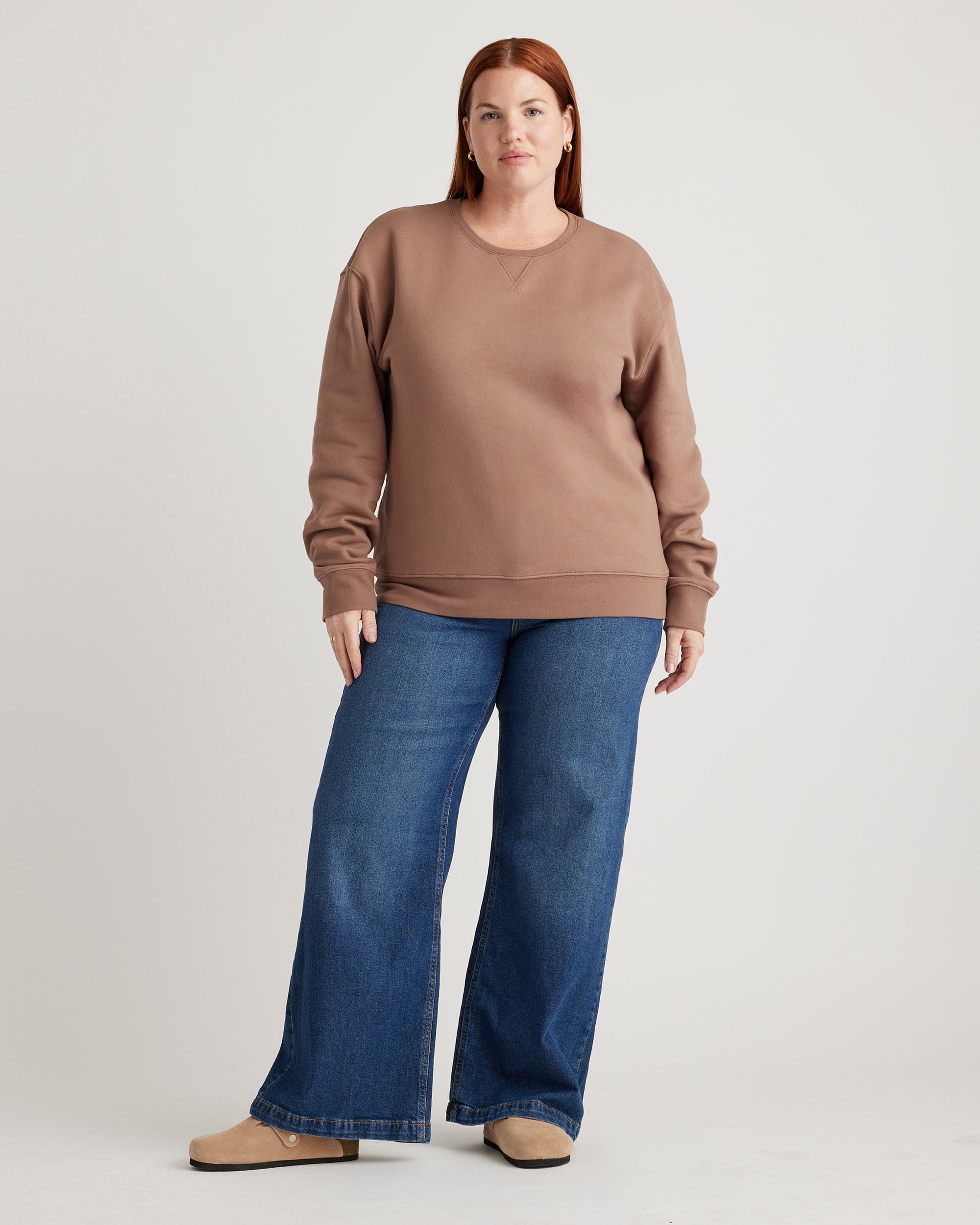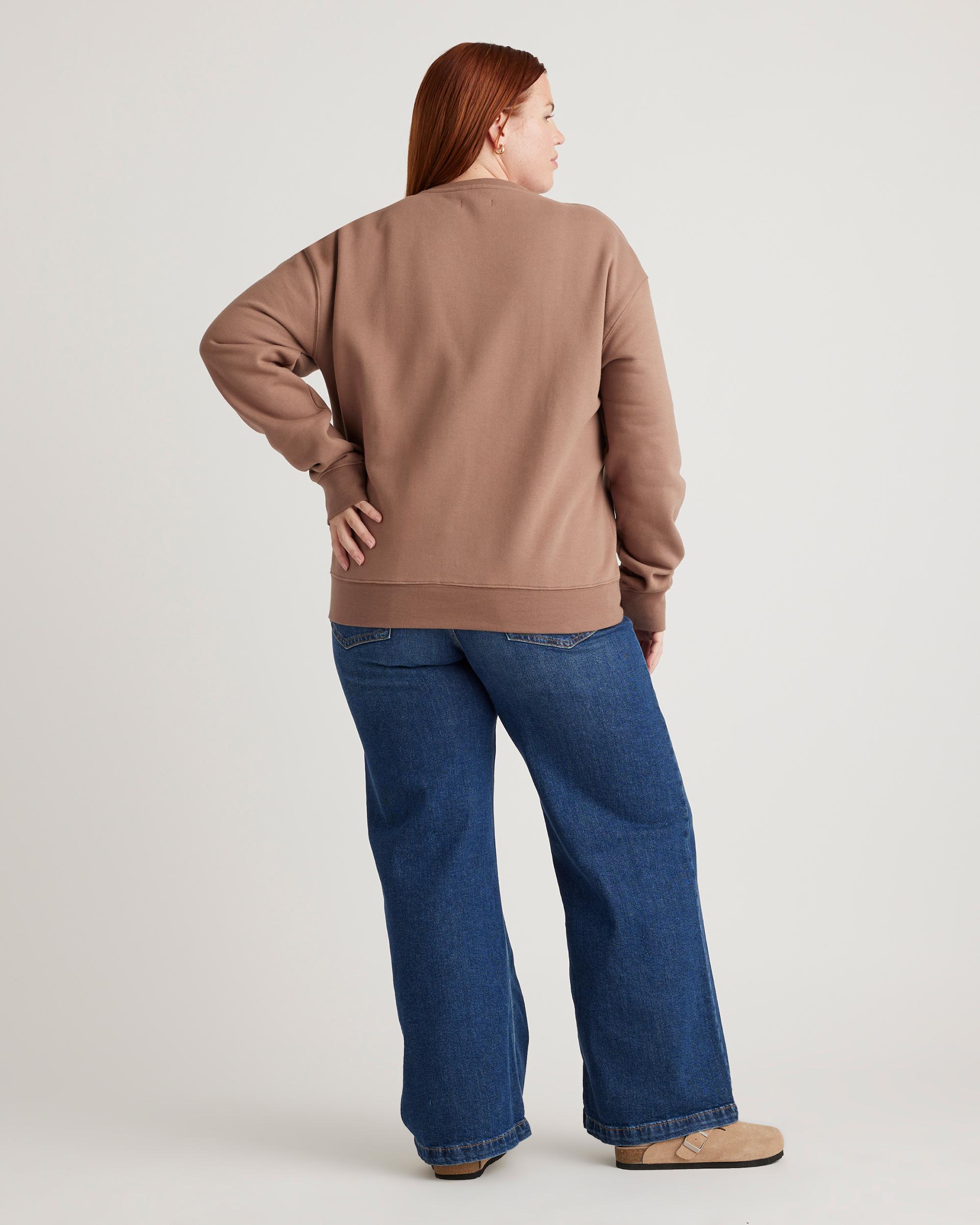 She's inviting, cozy, cute. She's the girlfriend crew now. But seriously, our boyfriend crew is made in a heavy weight to keep you comfy every day. No boyfriend necessary. We even used a custom fabric process for a butter-soft feel both inside and out. Pair it with our Organic Heavyweight Fleece Boyfriend Sweatpant to create your own custom matching set. | Quince | Women's Organic Heavyweight Fleece Boyfriend Crew Neck Alpaca Sweater in Taupe, Size XS, Organic Cotton