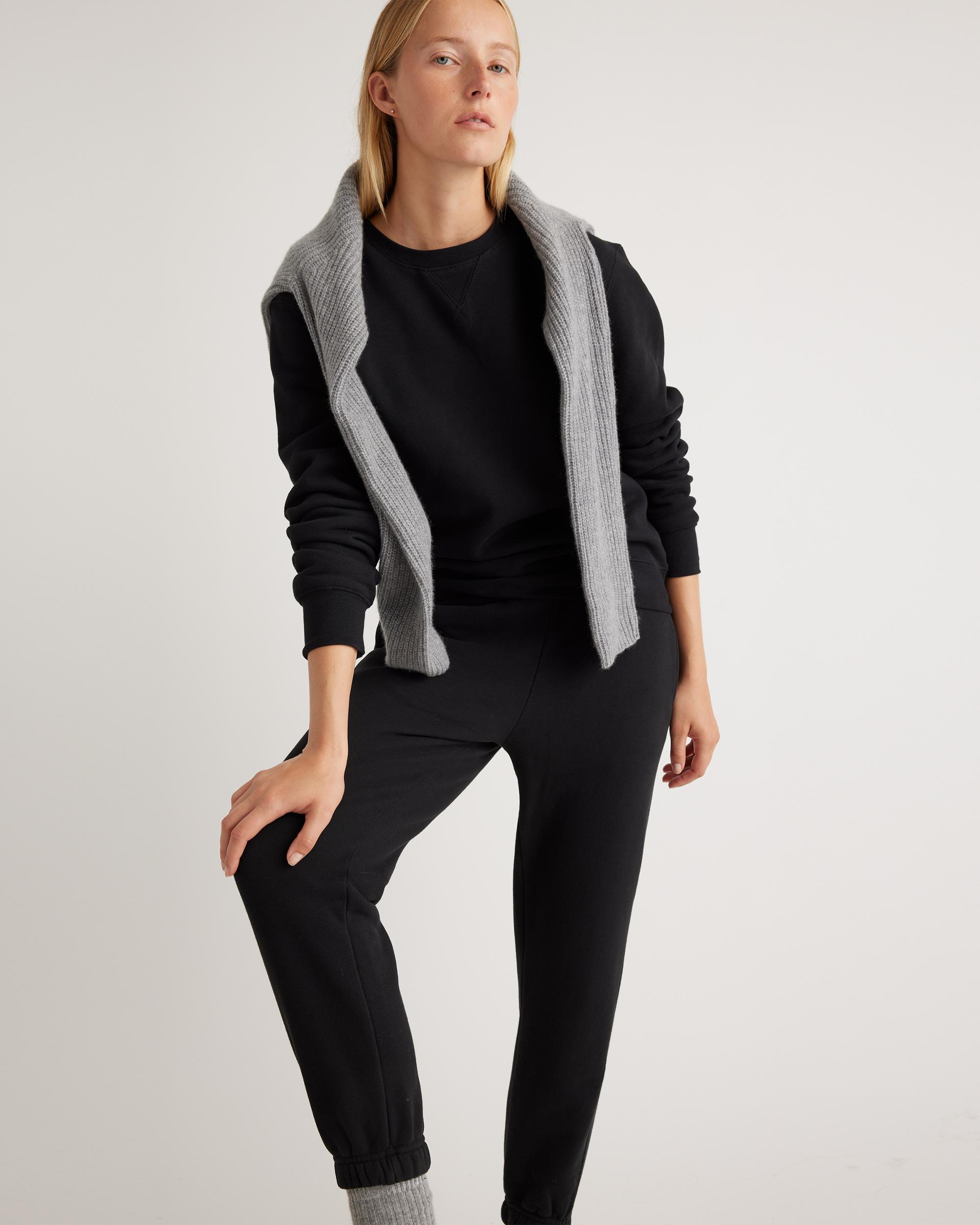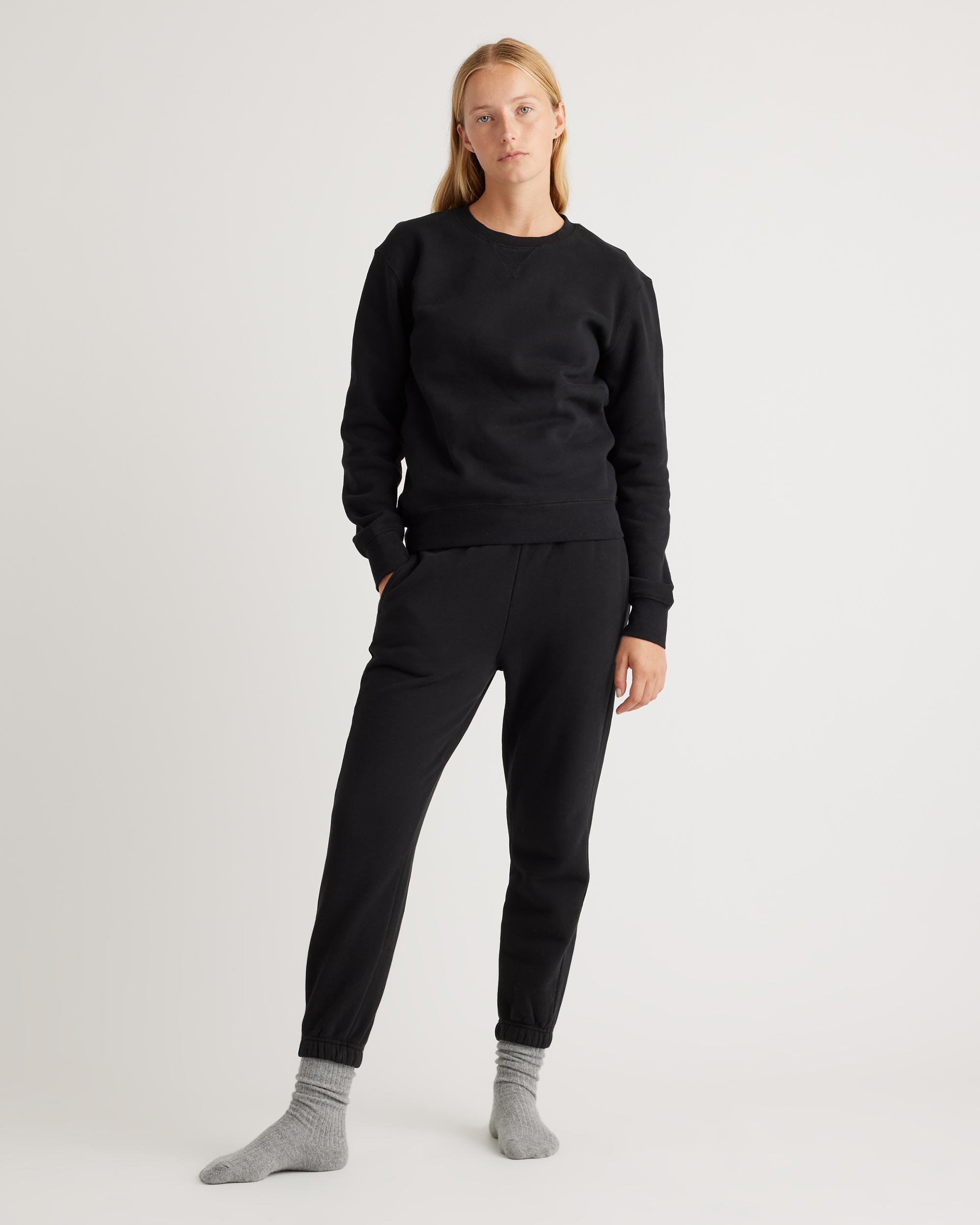 Upgrade your downtime with our new and improved 100% organic cotton fleece. Crafted from plush and luxurious 375gsm heavyweight fleece, our Organic Heavyweight Fleece Boyfriend Sweatpants will keep you warm and cozy all season long. We pre-shrunk the fabric so that you can wash and wear without concern. Pair with Organic Heavyweight Fleece Boyfriend Hoodie to create your own custom matching set. | Quince | Women's Organic Heavyweight Fleece Boyfriend Sweatpants in Black, Size Small, Organic Cotton