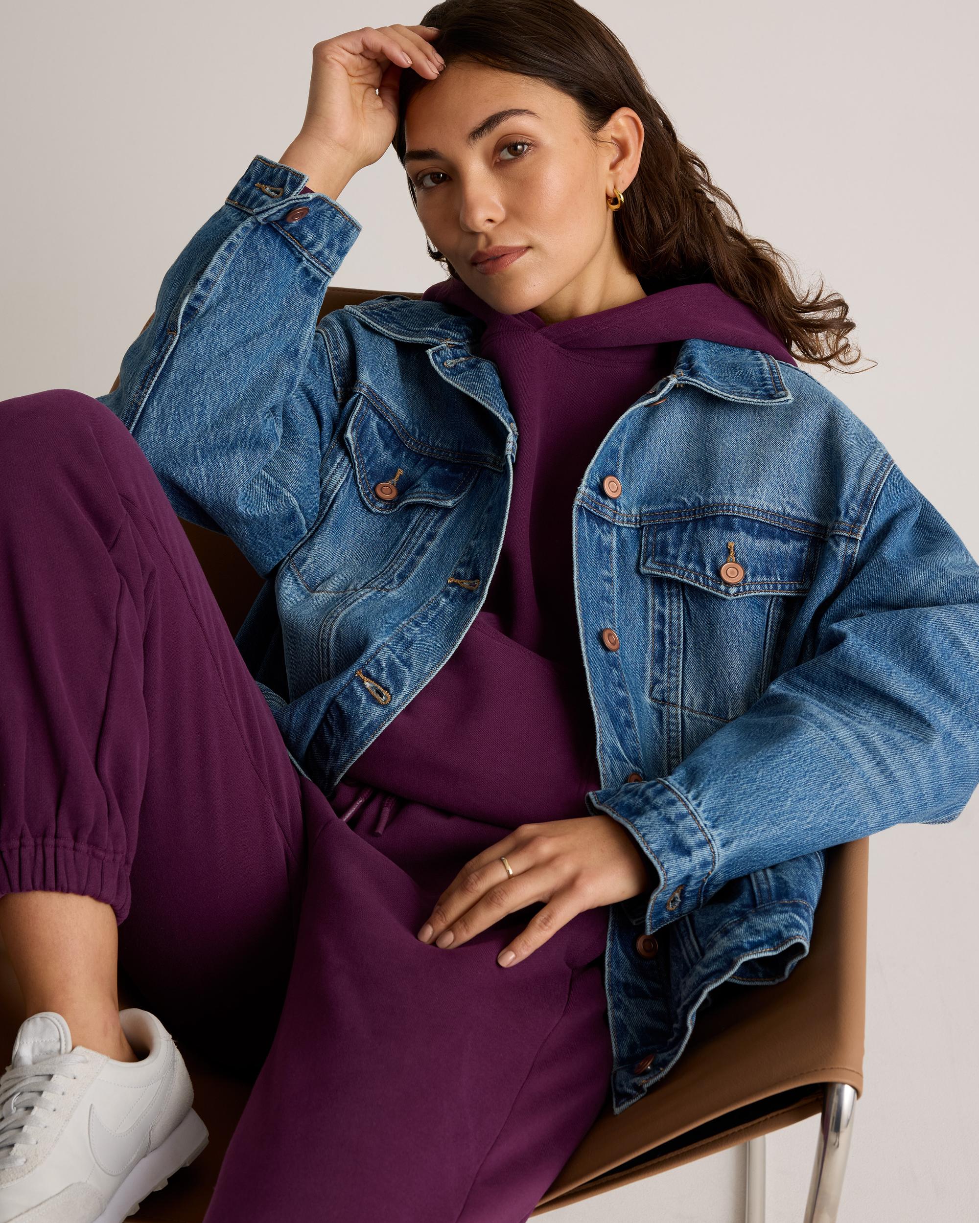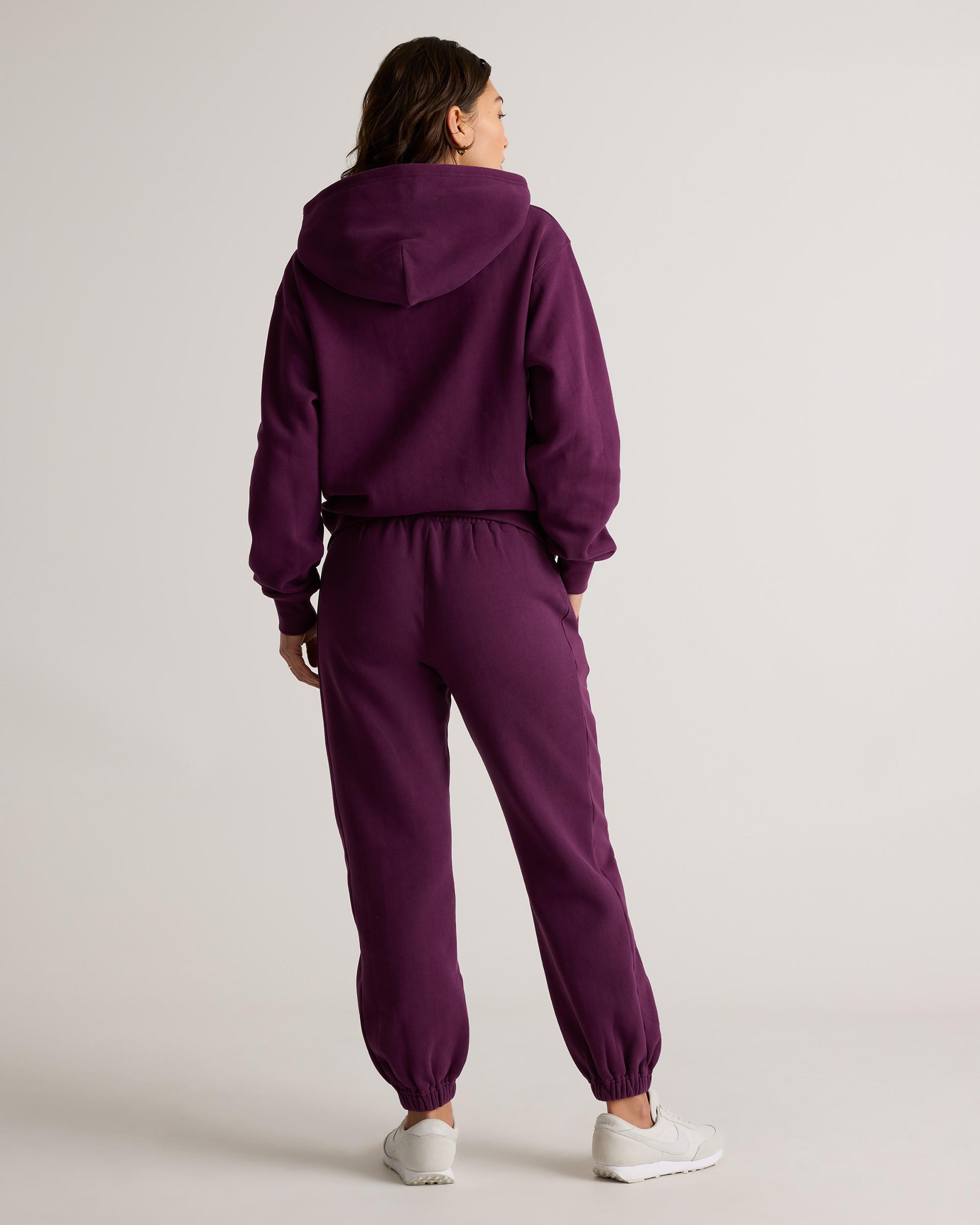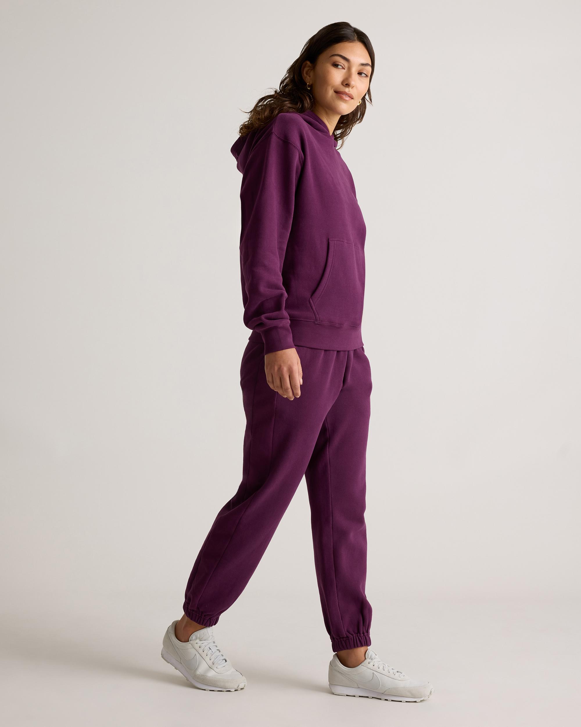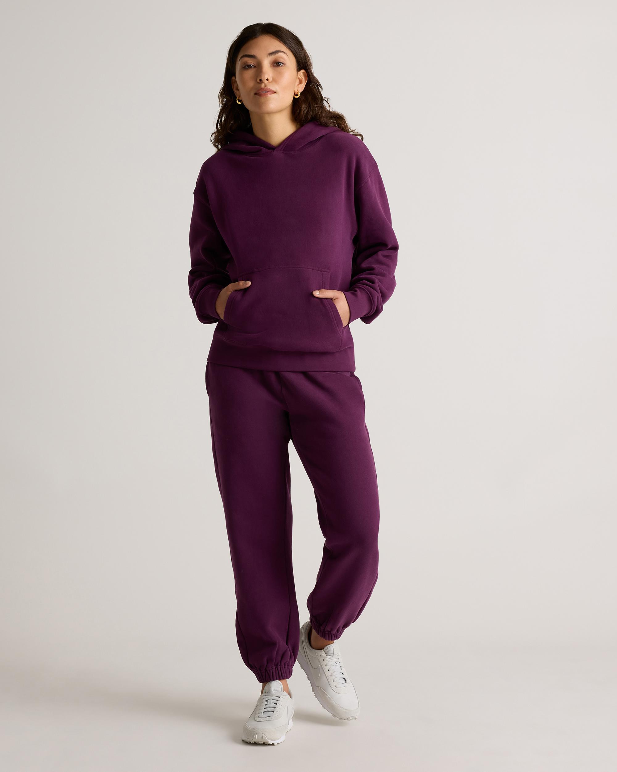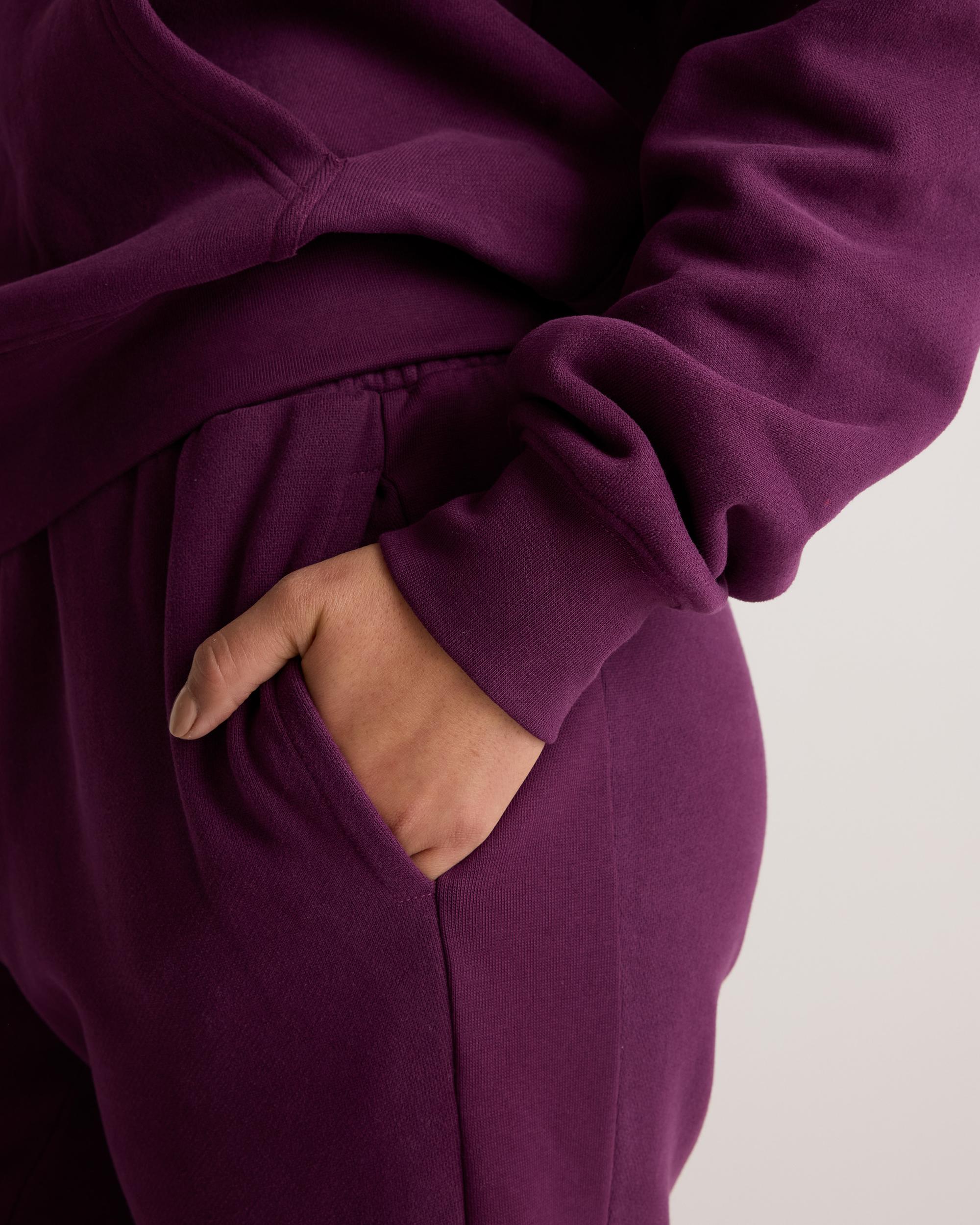 Upgrade your downtime with our new and improved 100% organic cotton fleece. Crafted from plush and luxurious heavyweight fleece, our Organic Heavyweight Fleece Boyfriend Sweatpants will keep you warm and cozy all season long. We pre-shrunk the fabric so that you can wash and wear without concern. Pair with the Organic Heavyweight Fleece Boyfriend Hoodie to create your own custom matching set. | Quince | Women's Organic Heavyweight Fleece Boyfriend Sweatpants in Plum, Size Large, Organic Cotton