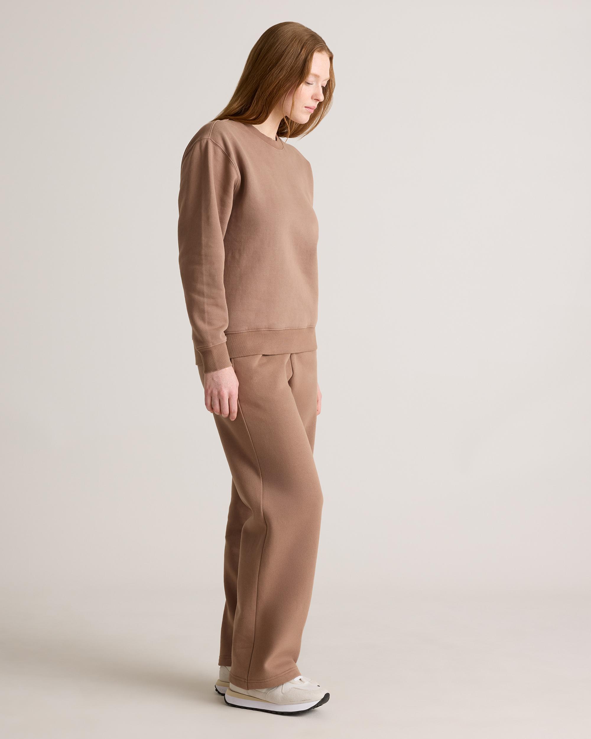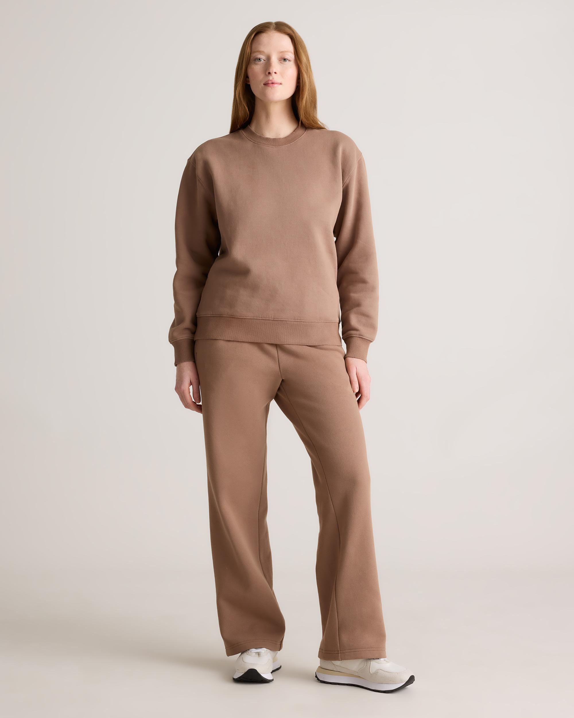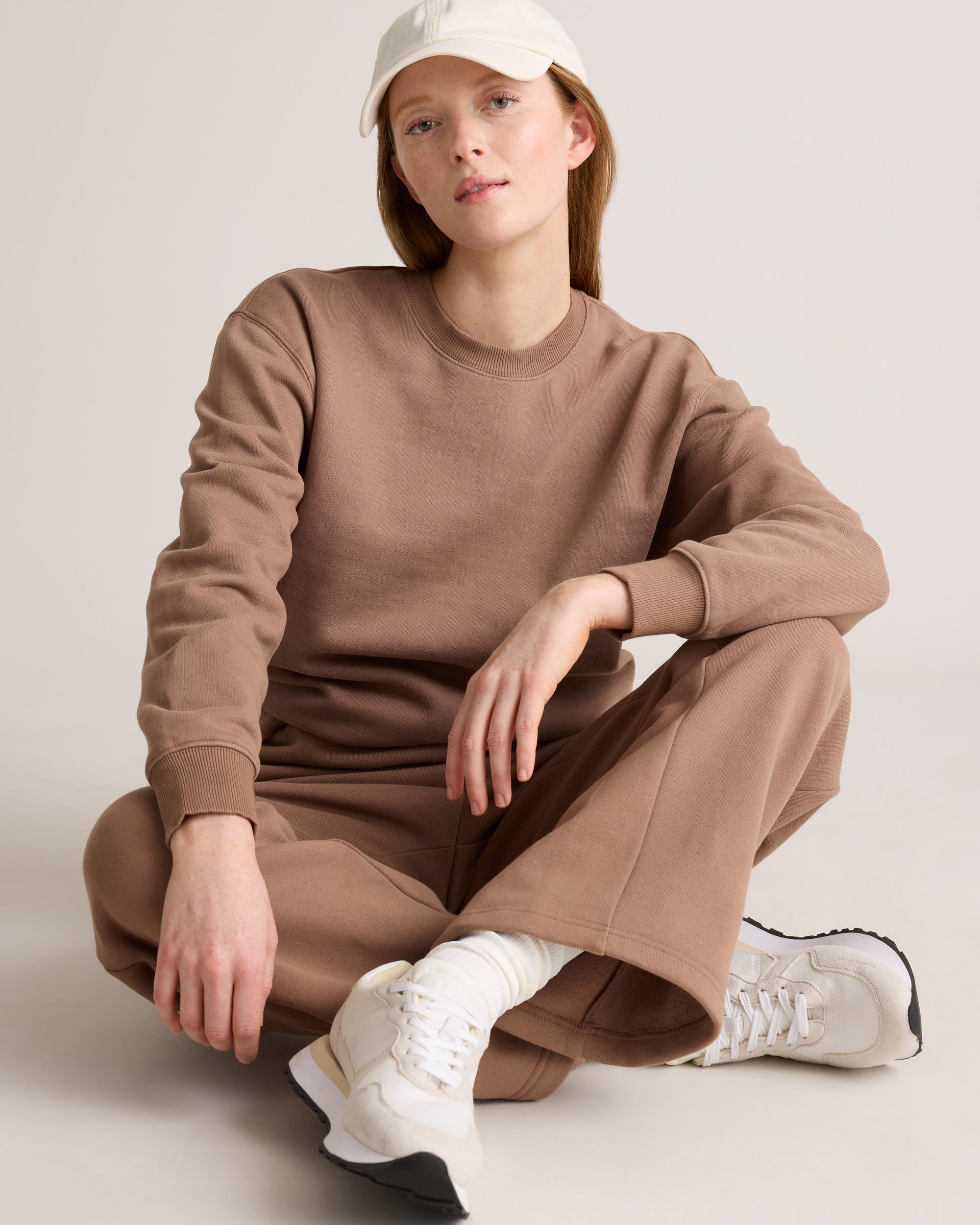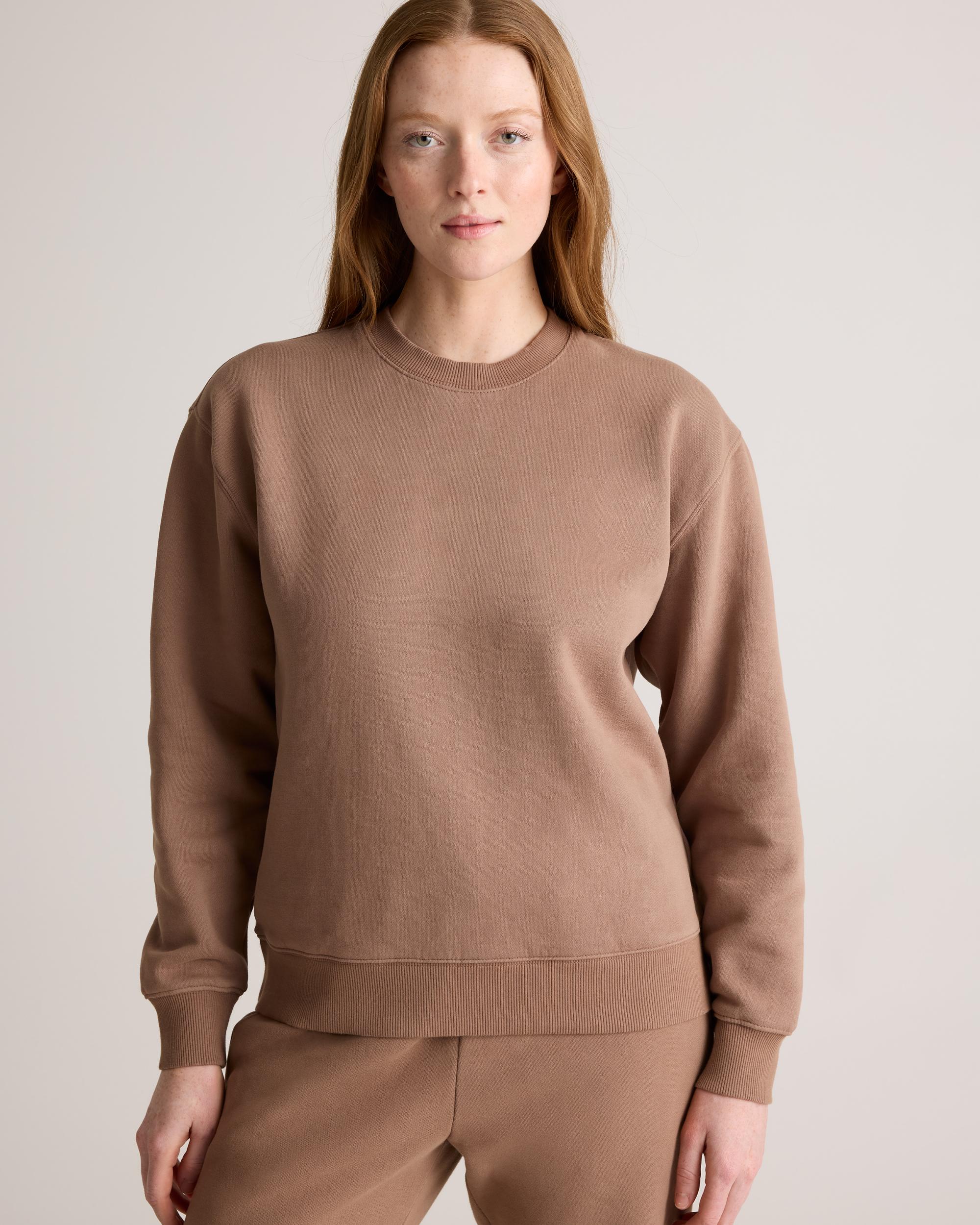 Upgrade your downtime with our new and improved 100% organic cotton fleece. Crafted from plush and luxurious 375gsm heavyweight fleece, our Organic Heavyweight Fleece Crew will keep you warm and cozy all season long. We pre-shrunk the fabric so that you can wash and wear without concern. Pair with the Organic Heavyweight Fleece Boyfriend Sweatpants to create your own custom matching set. | Quince | Women's Organic Heavyweight Fleece Crew Neck Alpaca Sweater in Taupe, Size Medium, Organic Cotton