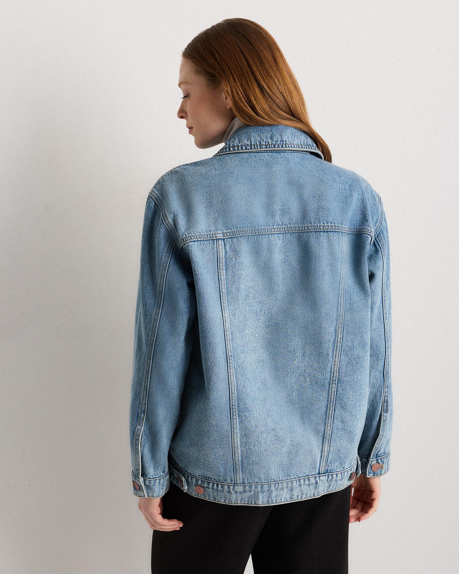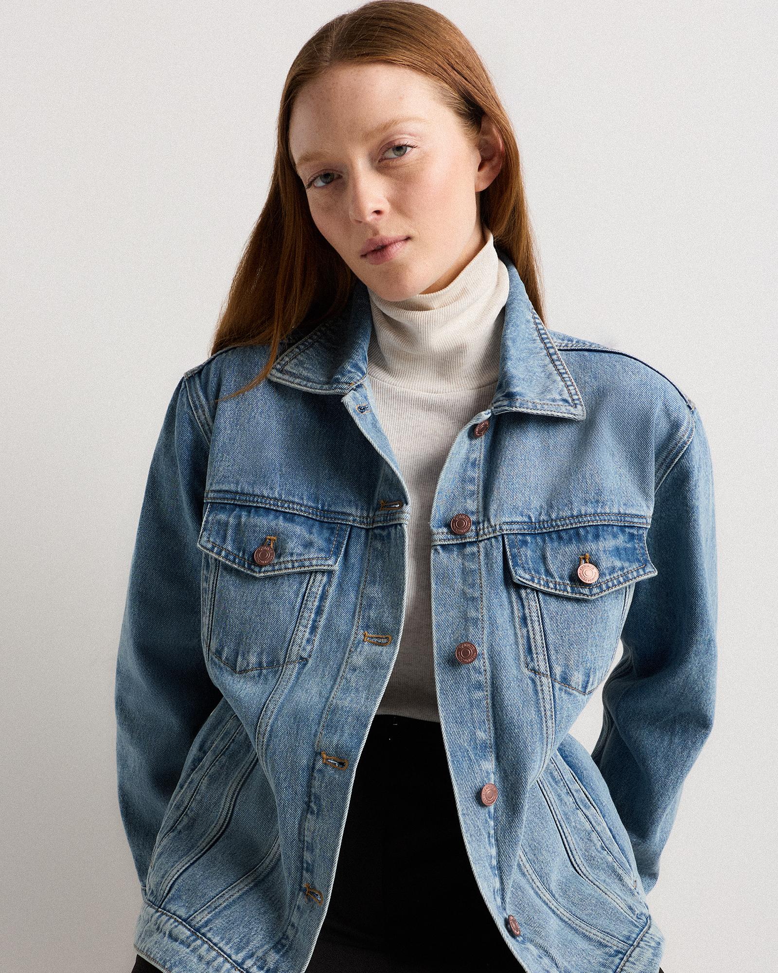 To add to your denim rotation: this cool, oversized jean jacket. Made with 100% OCS-certified organic cotton for a soft, thick, and durable feel, we see tons of layering potential ahead. | Quince | Women's Oversized Denim Jacket in Indigo Blue, Size XS, Organic Cotton