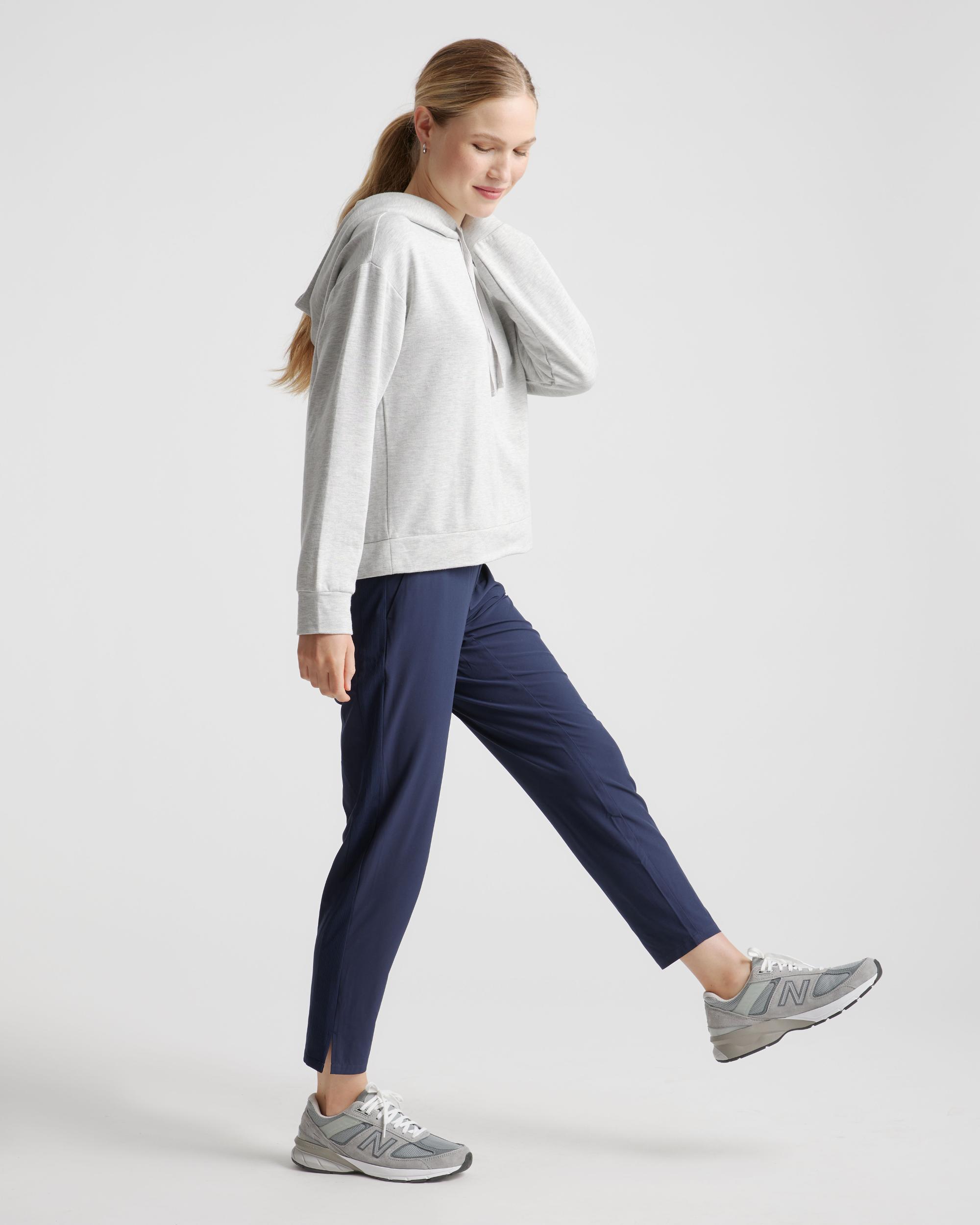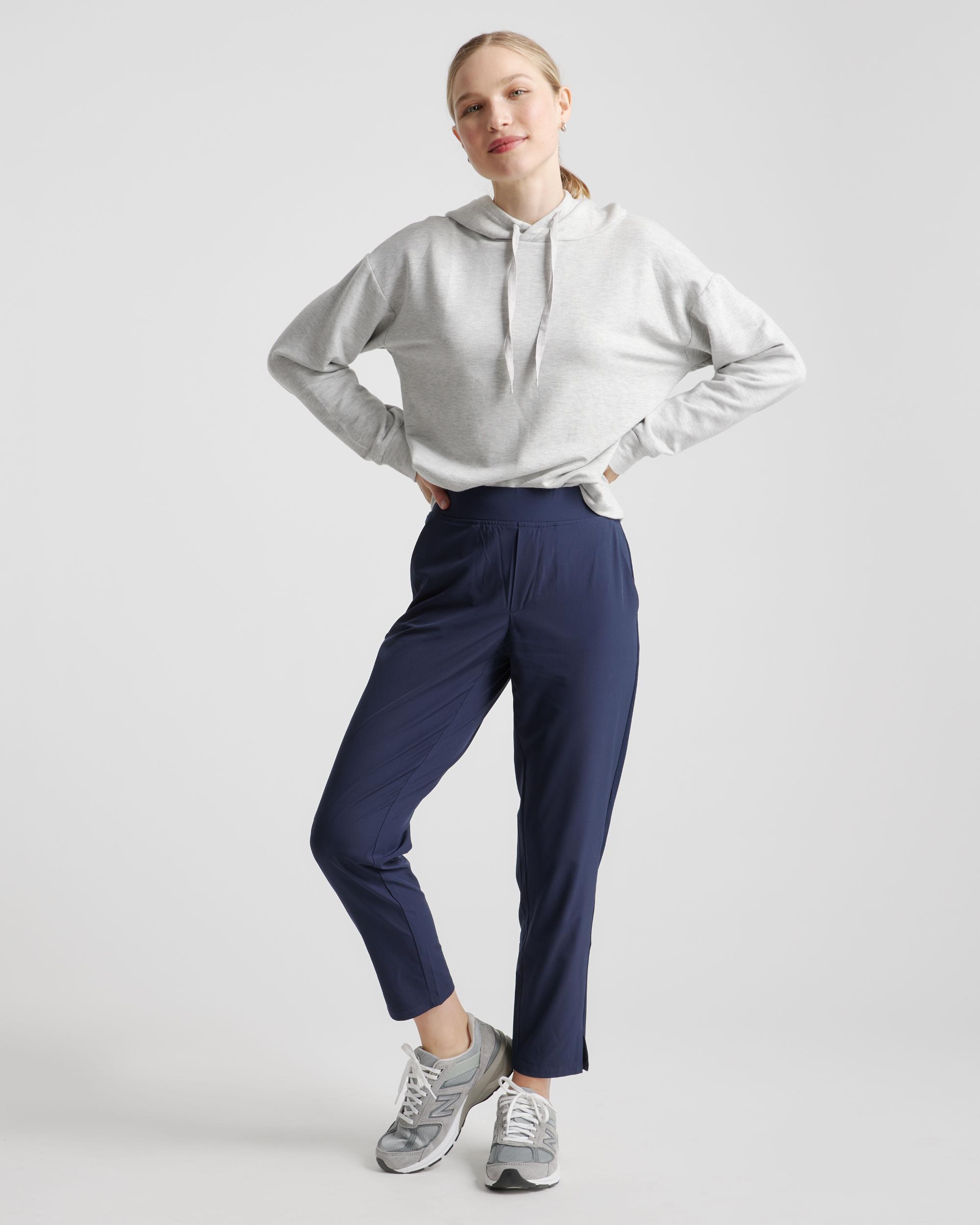 These look like classic work pants, but move like your favorite activewear. Our lightweight, breathable Performance Tech Commuter Pants have just the right amount of stretch for days when you’re on the go, plus the sun protection and quick-dry properties of top-notch performance wear. | Quince | Women's Performance Tech Ankle Pants in Navy, Size Small, Recycled Polyester