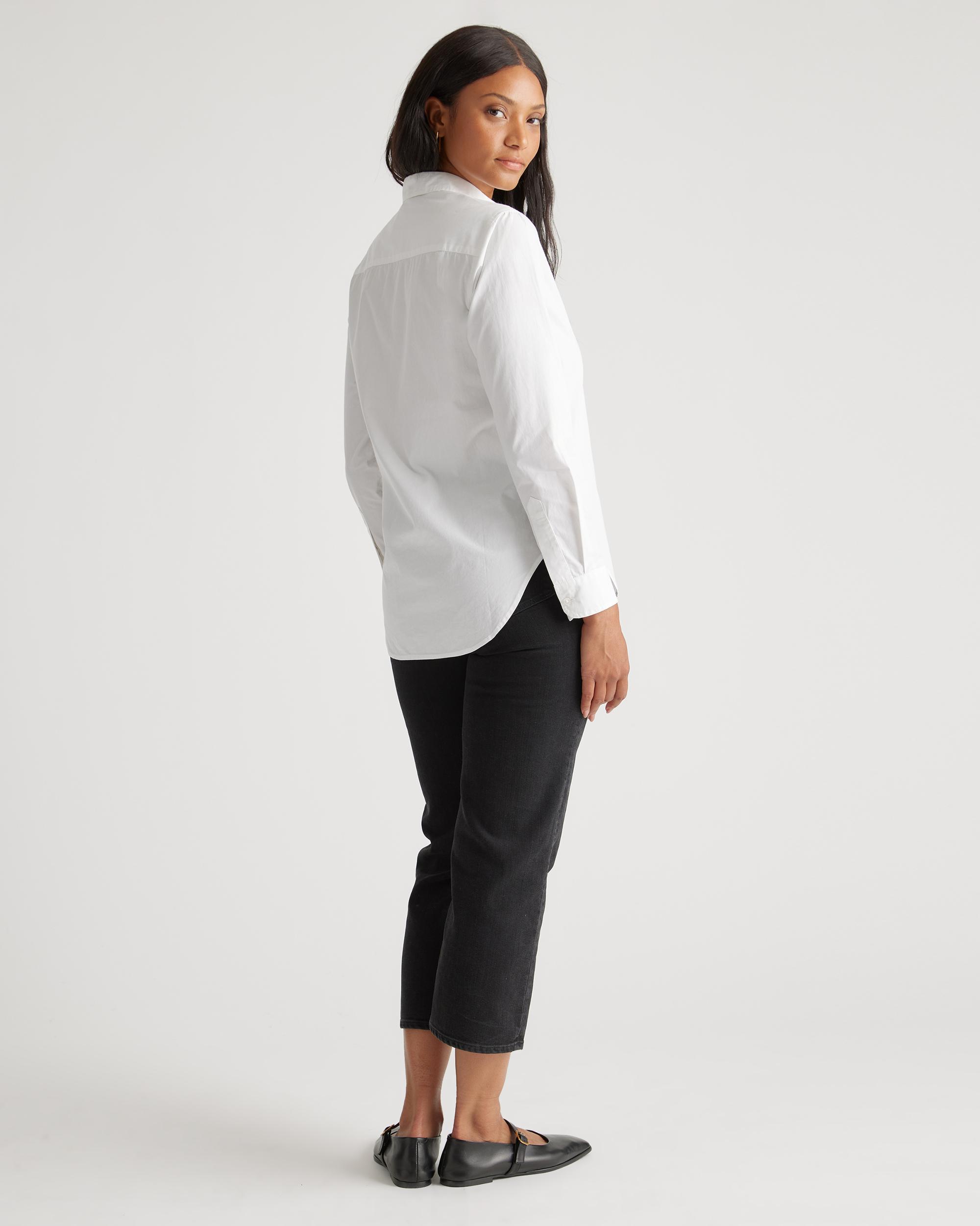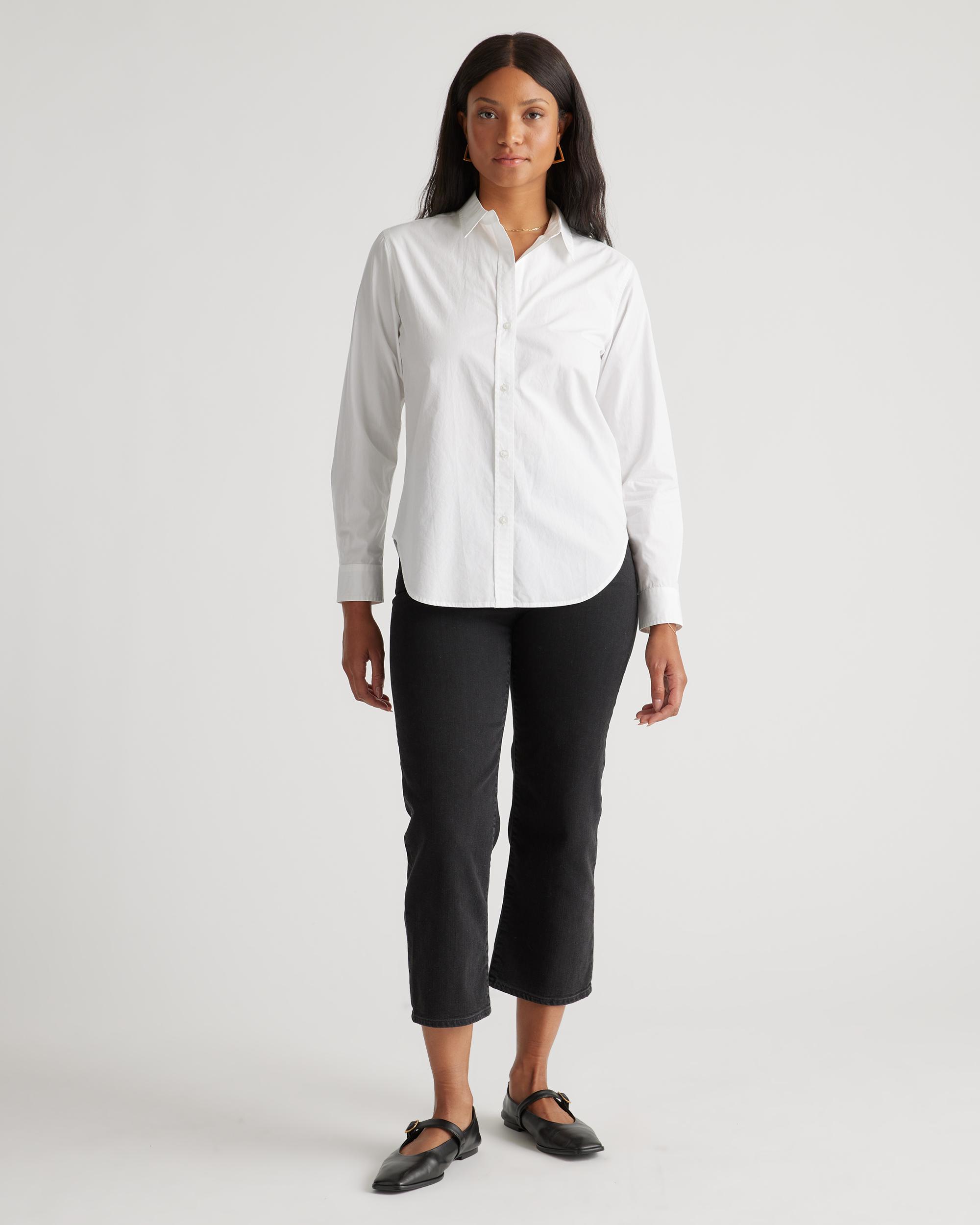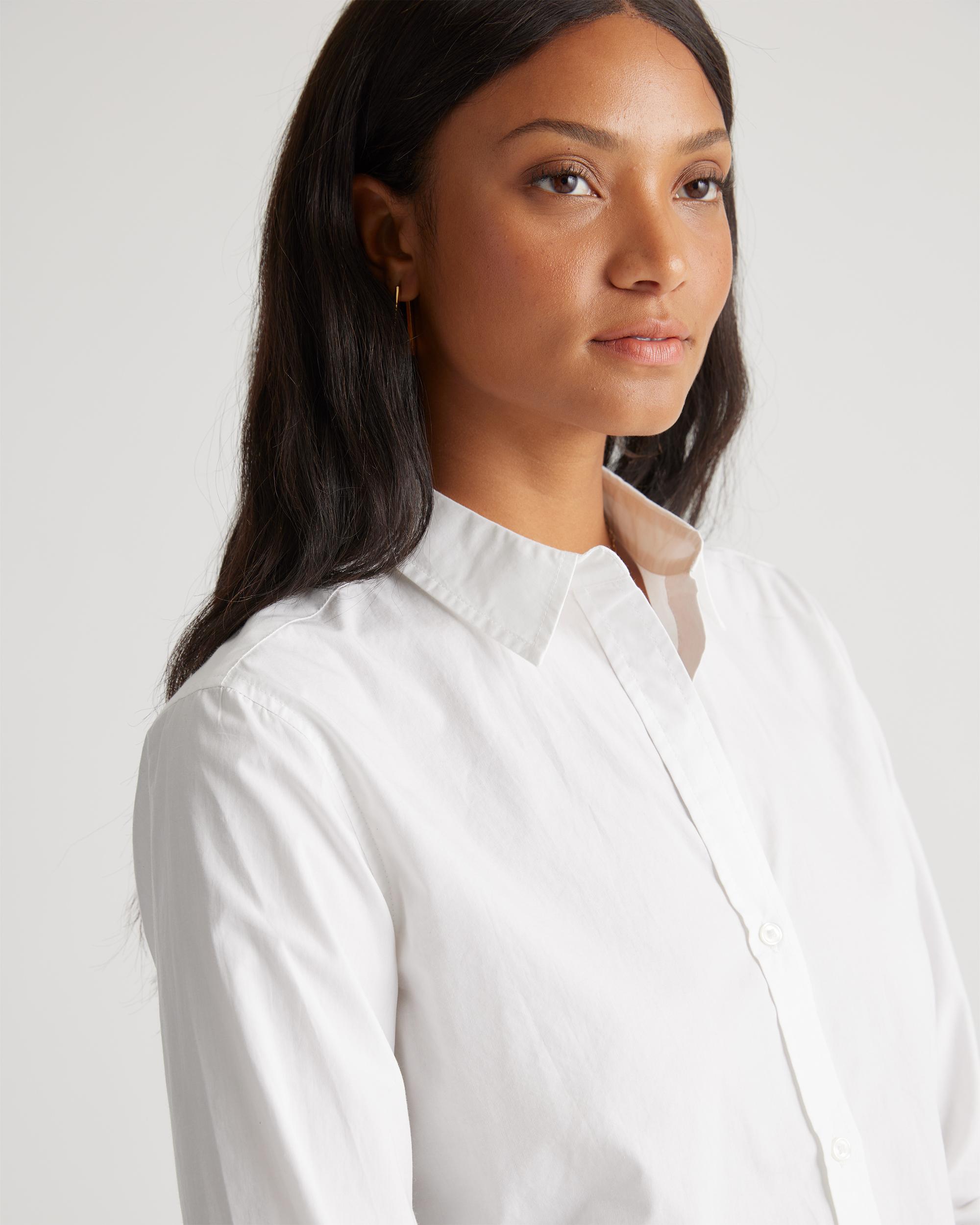 A forever essential, our 100% Organic Cotton Poplin Long Sleeve Shirt combines timeless styling with everyday comfort. Crafted from premium organic cotton poplin, this lightweight yet crisp shirt feels soft and gentle against your skin. Its classic look can flex for work or the weekend, making it a must-have for any wardrobe. Also offered in maternity. | Quince | Women's Poplin Long Sleeve Shirt in White, Size Small, Organic Cotton