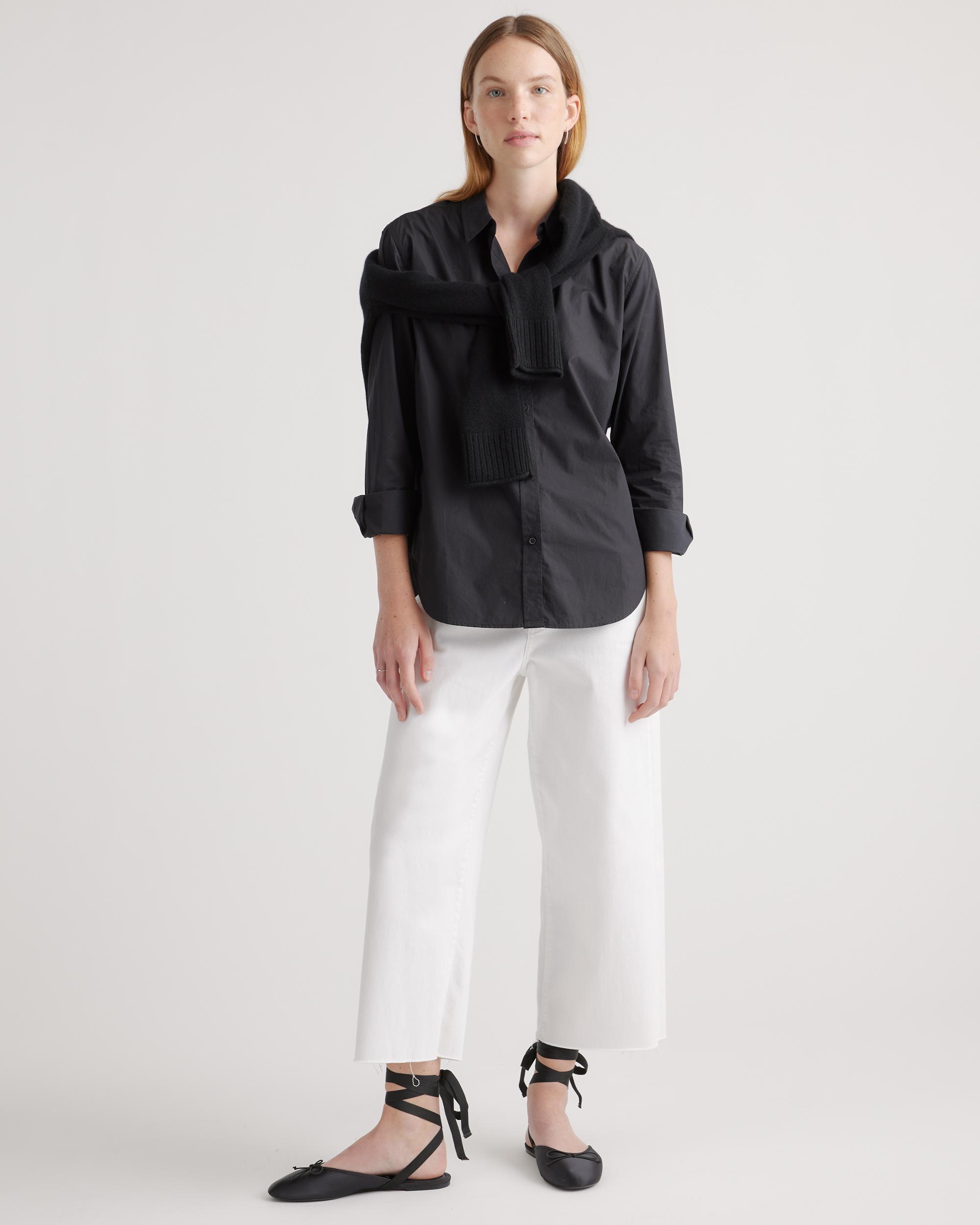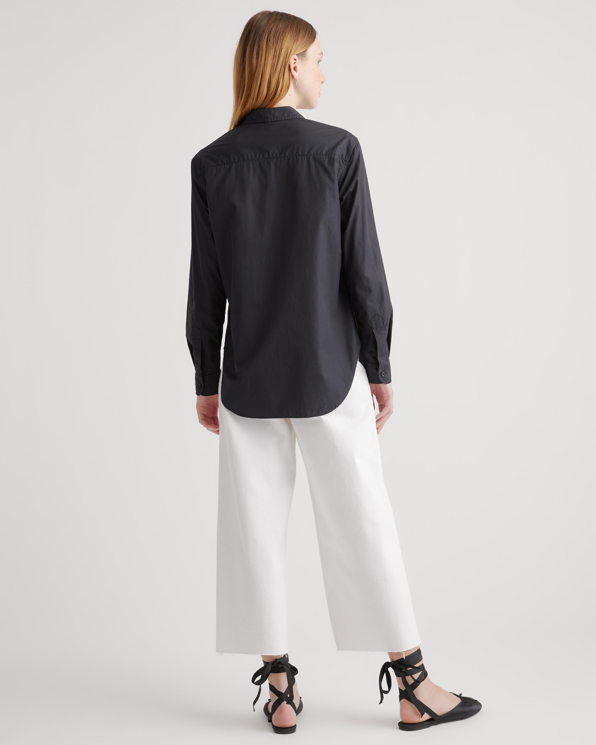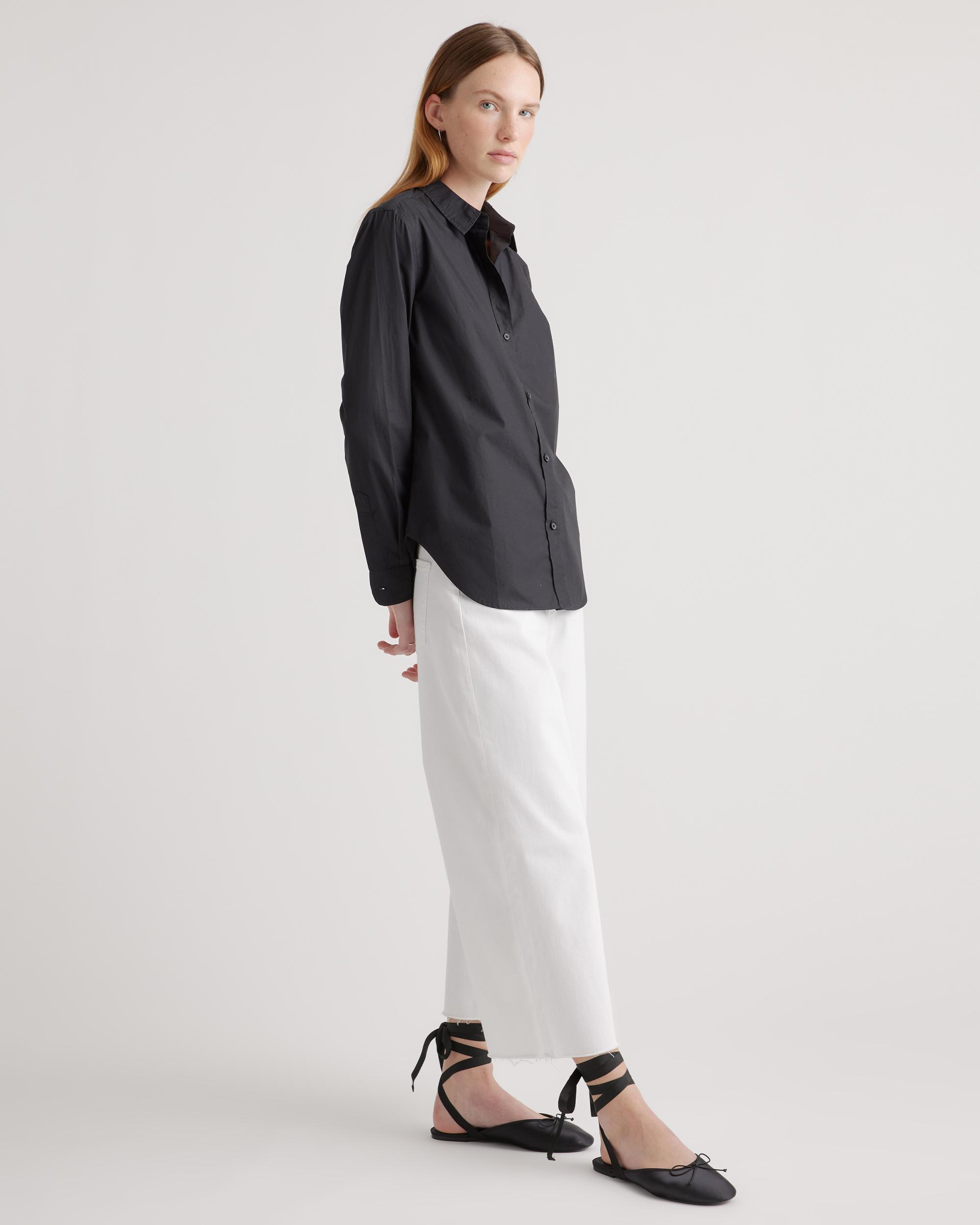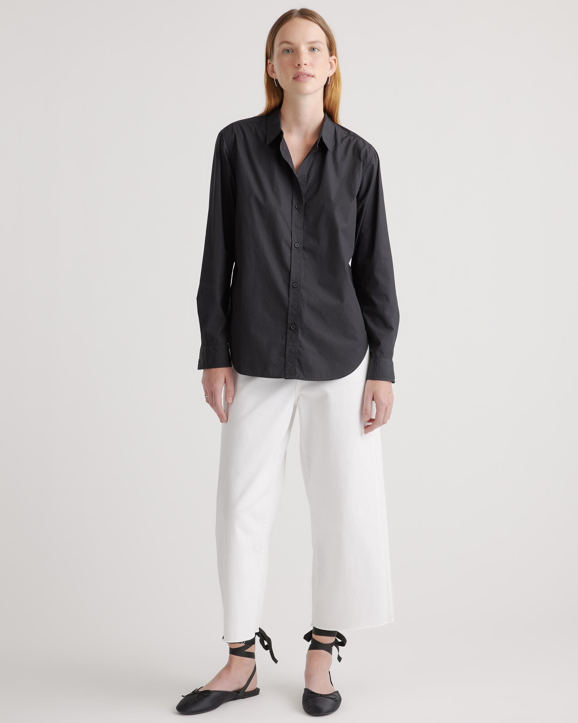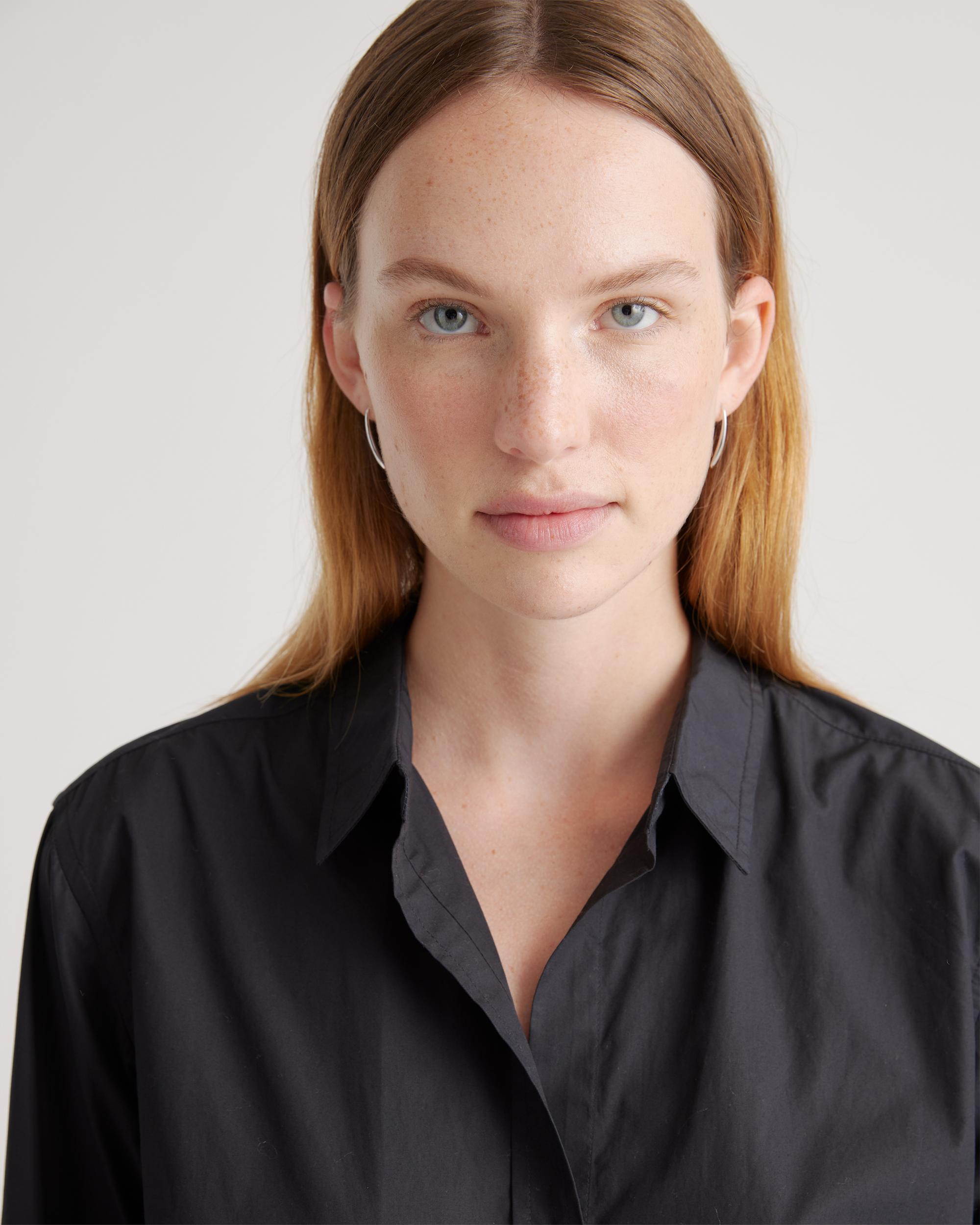 A forever essential, our 100% Organic Cotton Poplin Long Sleeve Shirt combines timeless styling with everyday comfort. Crafted from premium organic cotton poplin, this lightweight yet crisp shirt feels soft and gentle against your skin. Its classic look can flex for work or the weekend, making it a must-have for any wardrobe. Also offered in maternity. | Quince | Women's Poplin Long Sleeve Shirt in Black, Size Small, Organic Cotton