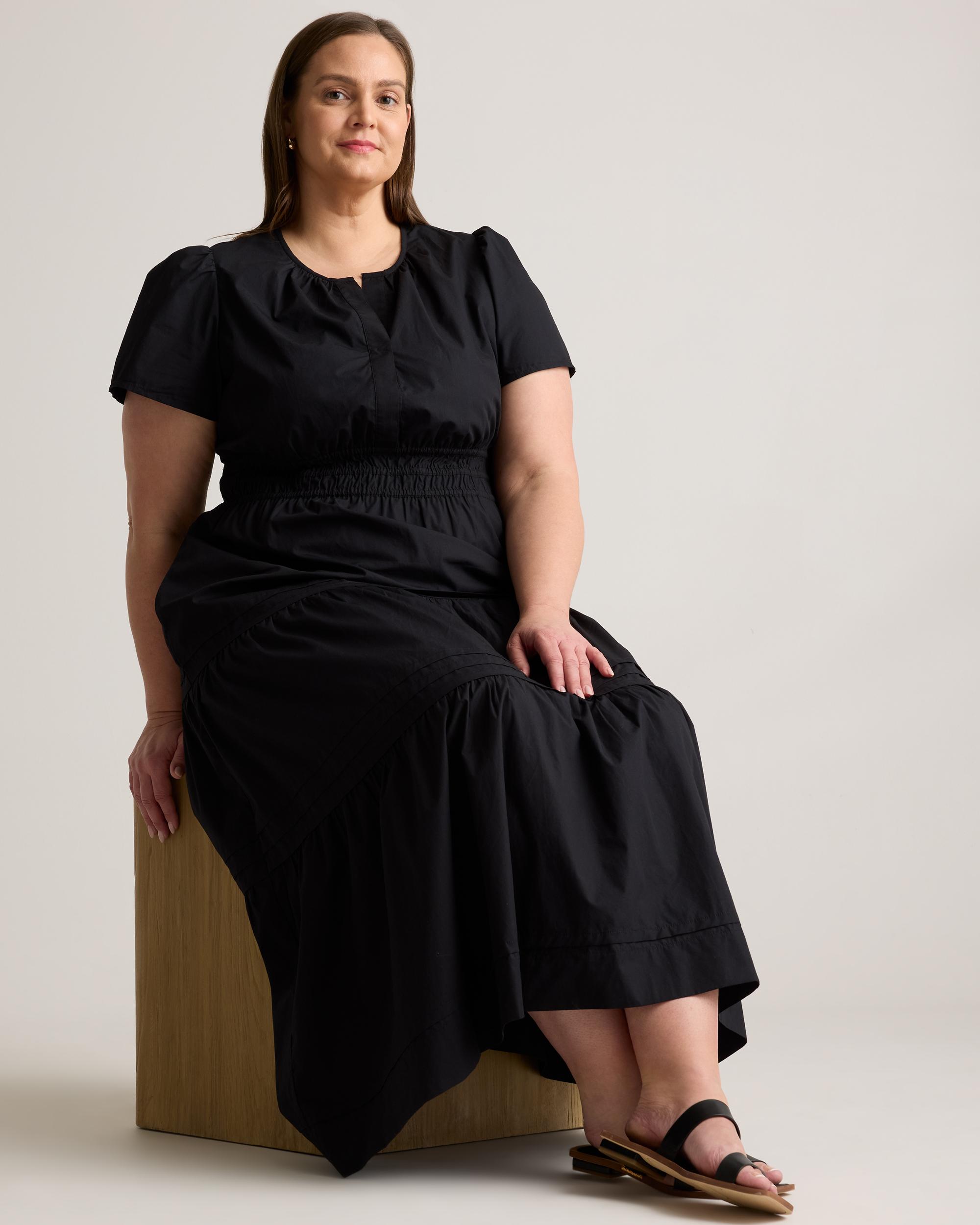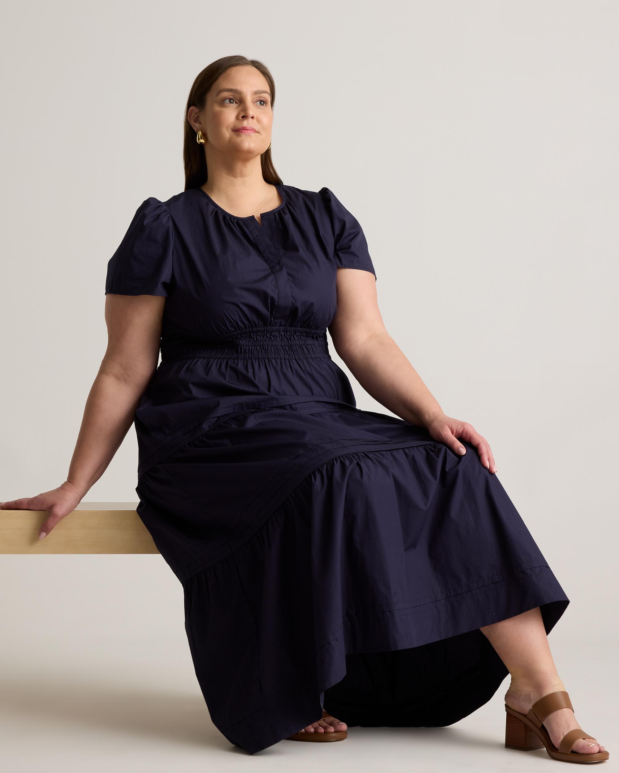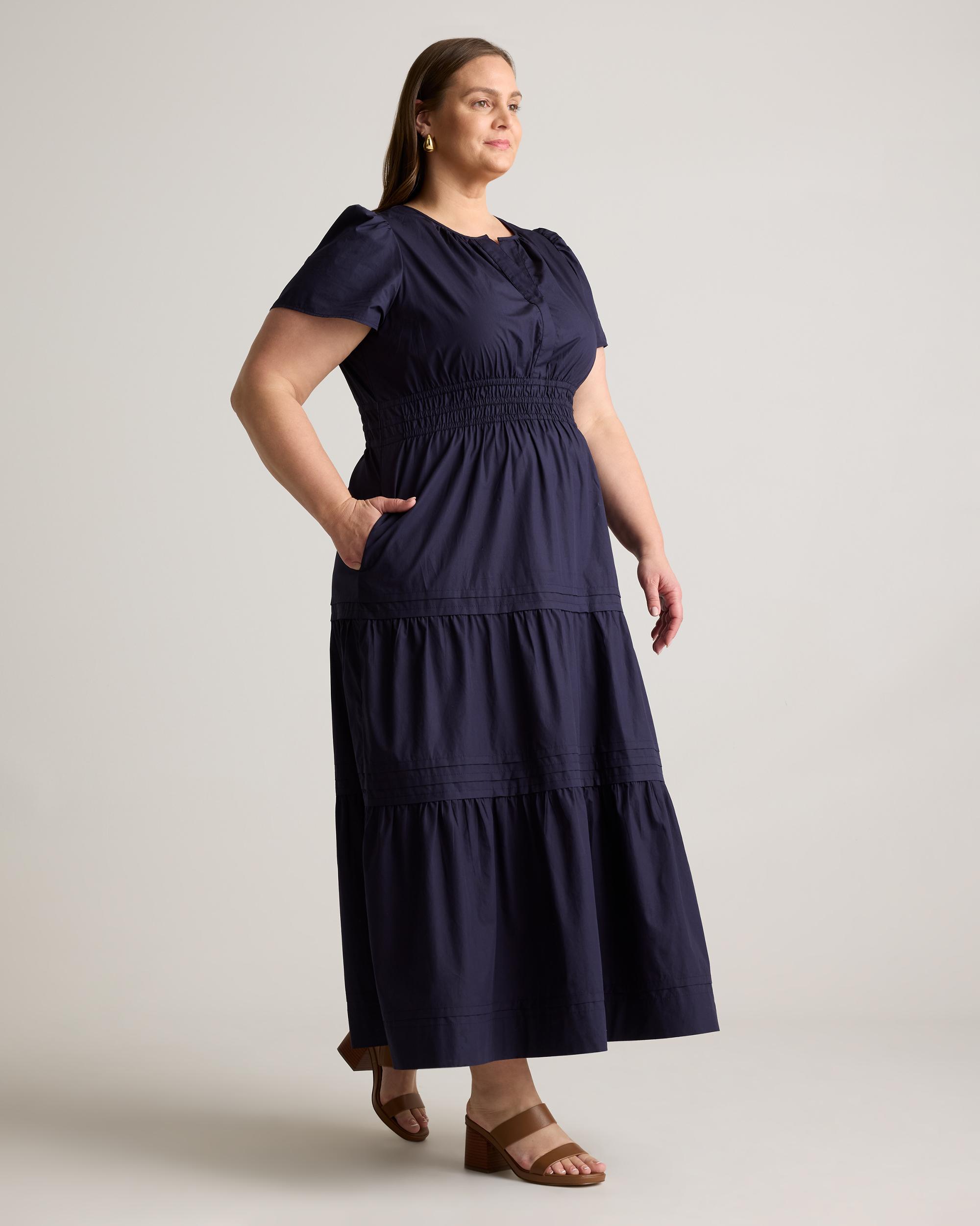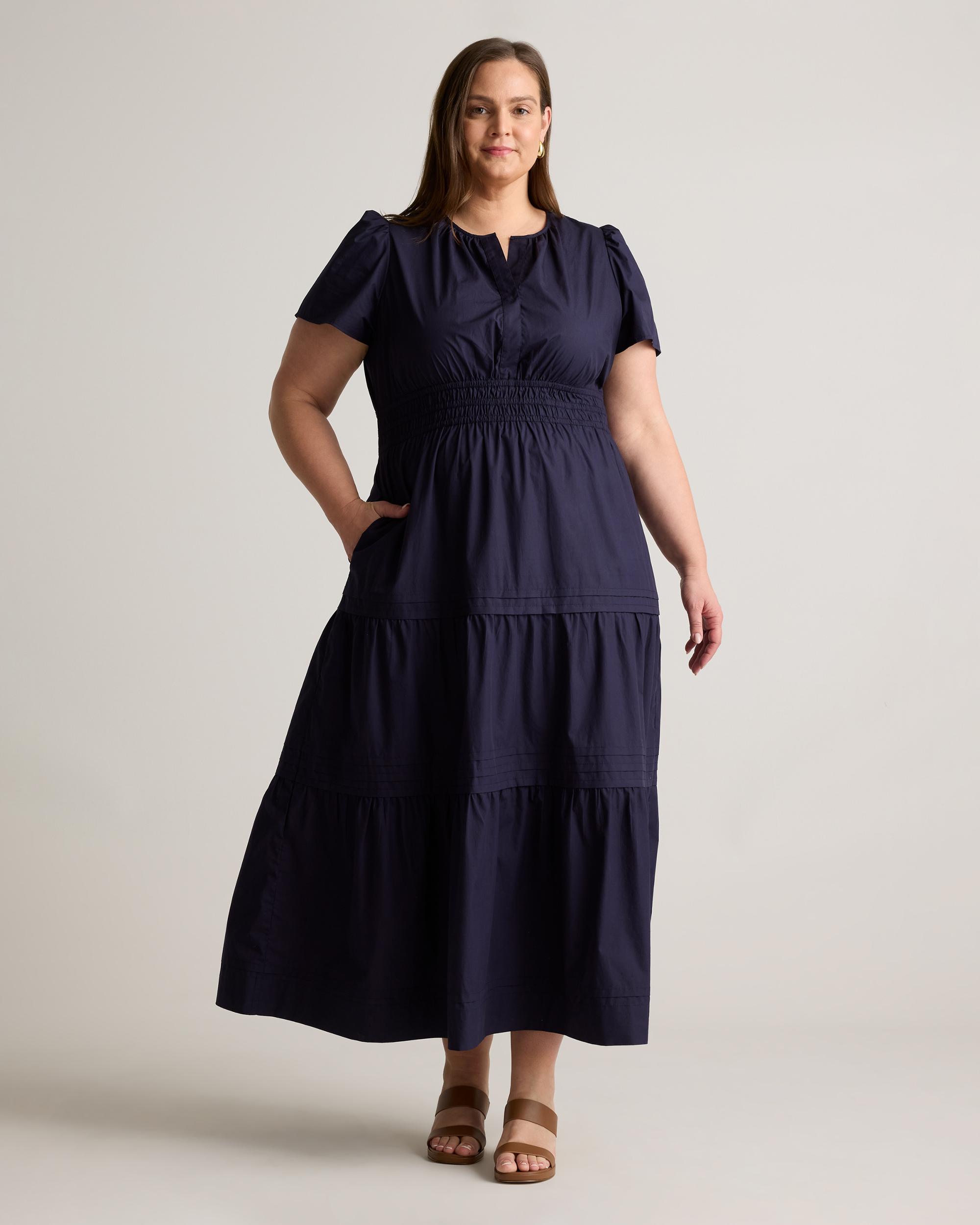 Maxi length and maximal function because we're bringing you another pocketed wonder, now available in extended sizes! This chic maxi gathers at the waist for a lightly cinched look. Made from 100% organic cotton for lightweight breathability. With a v-nec